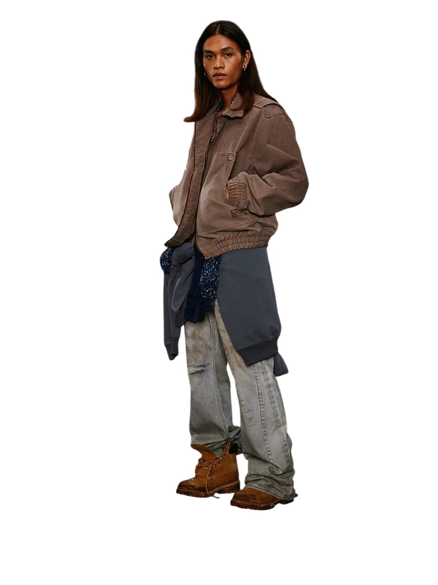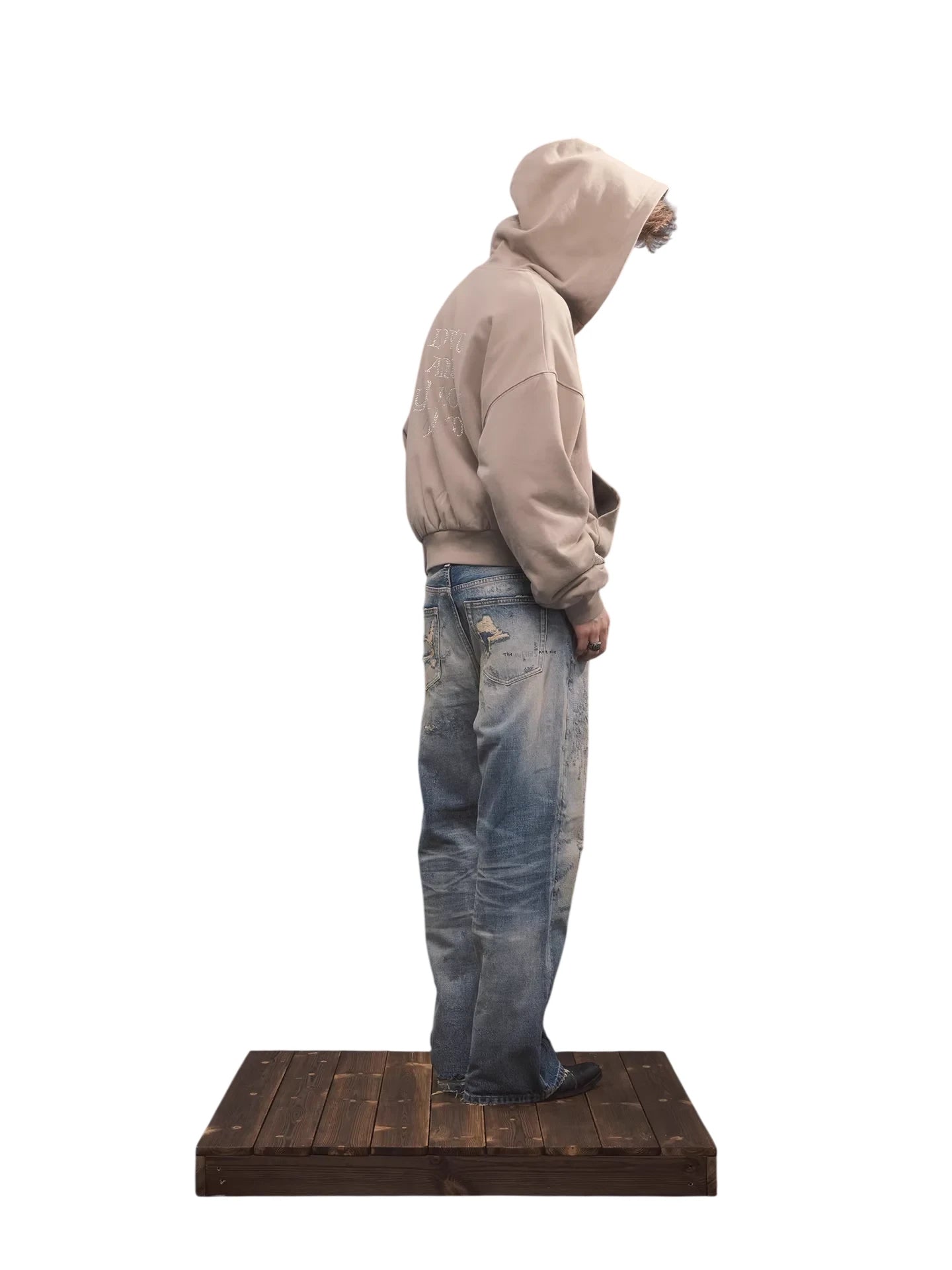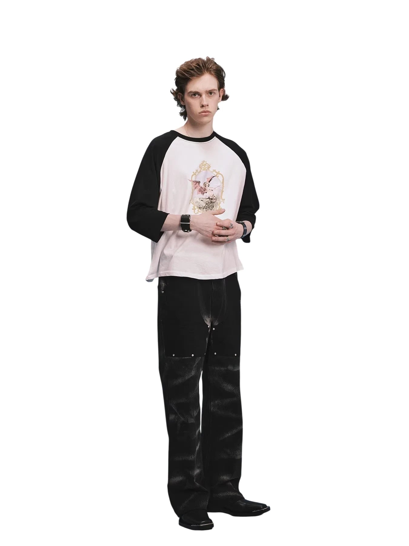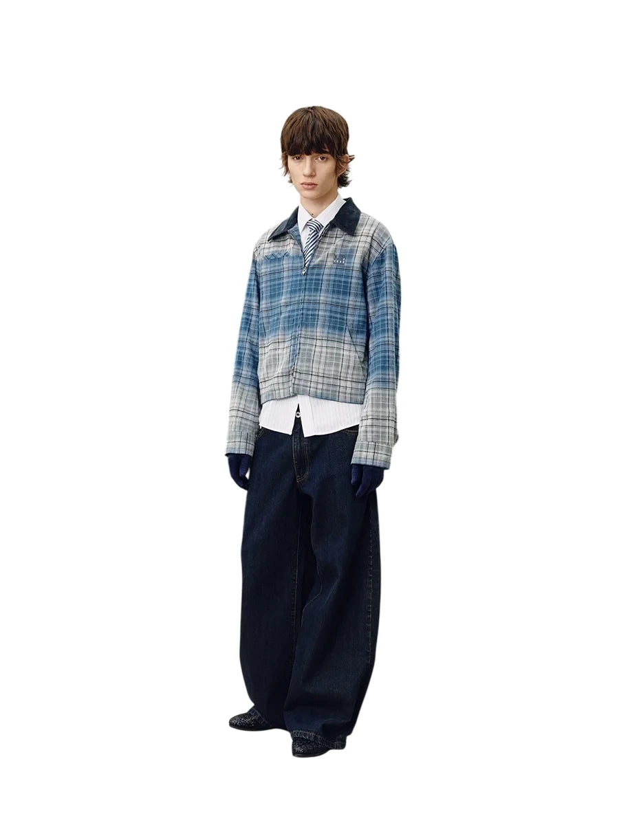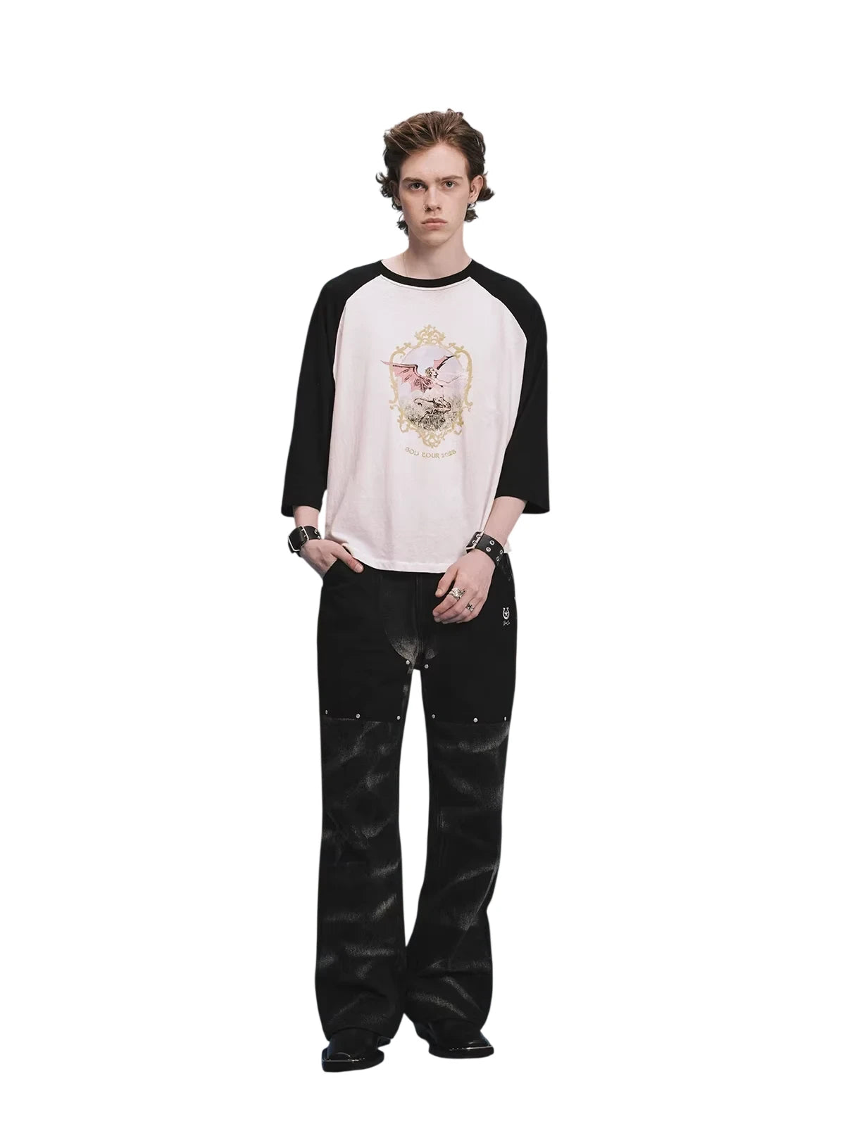 Simple Project Men's Wide-Leg Lightning Wash Distressed Jeans