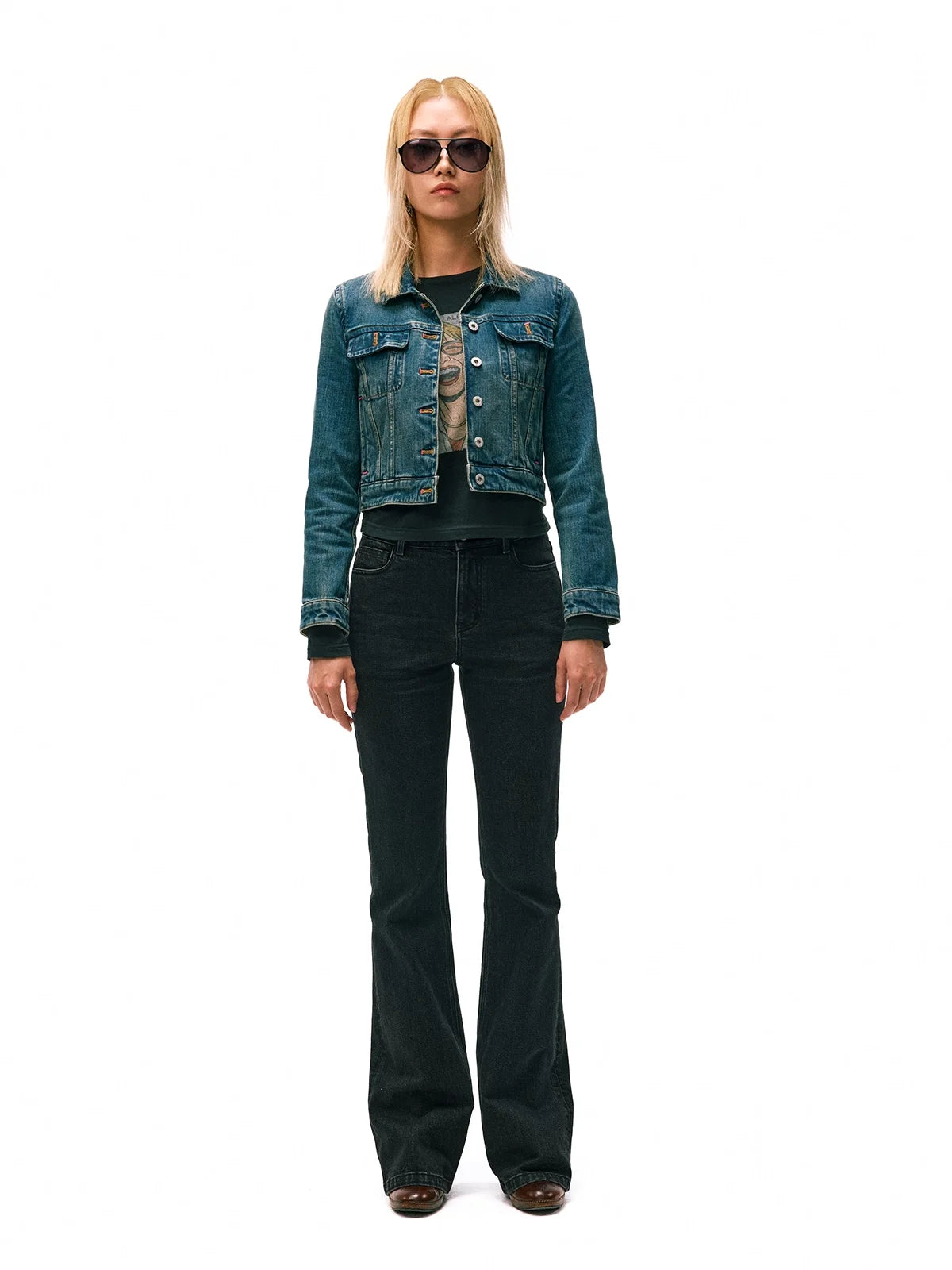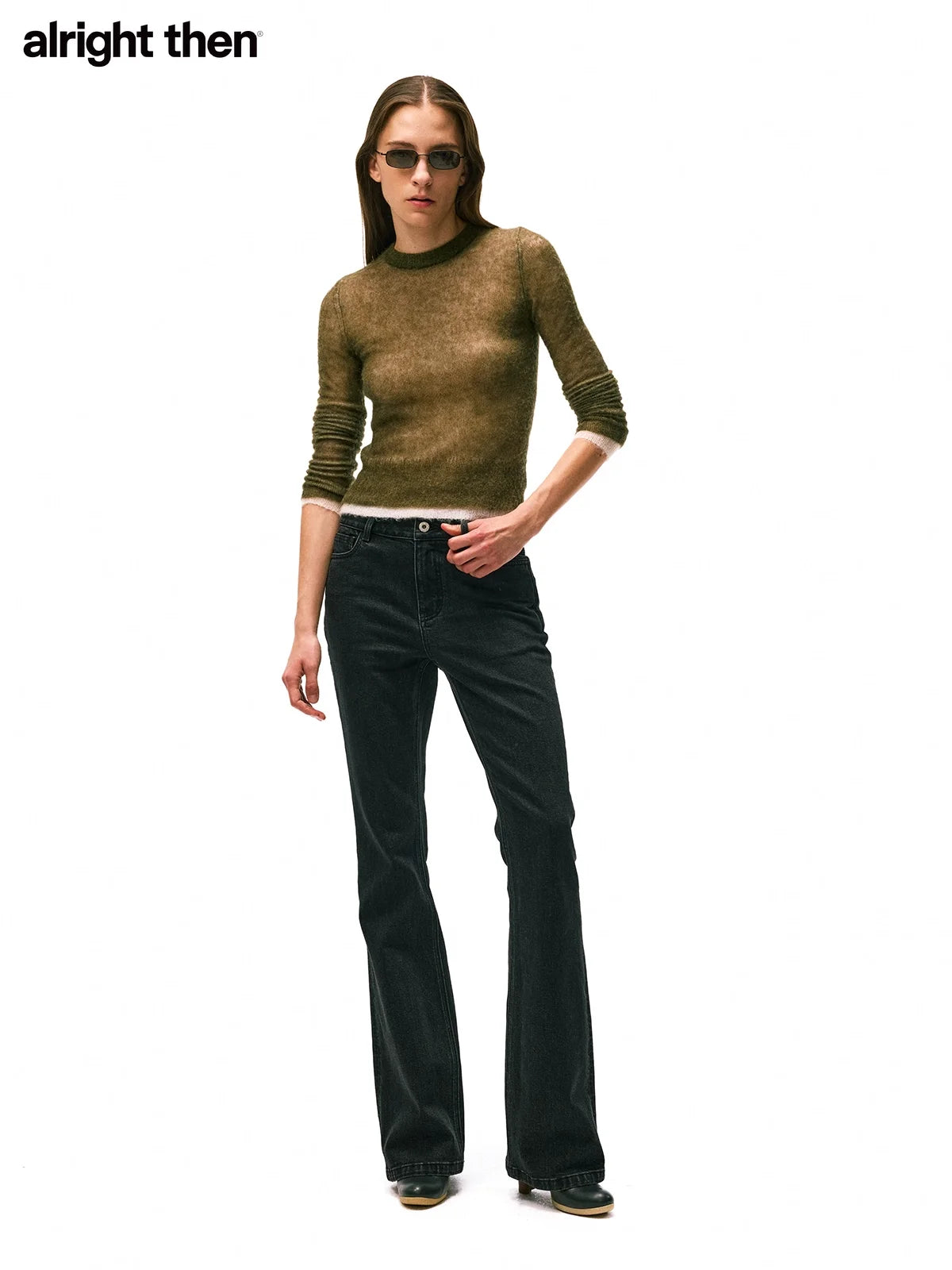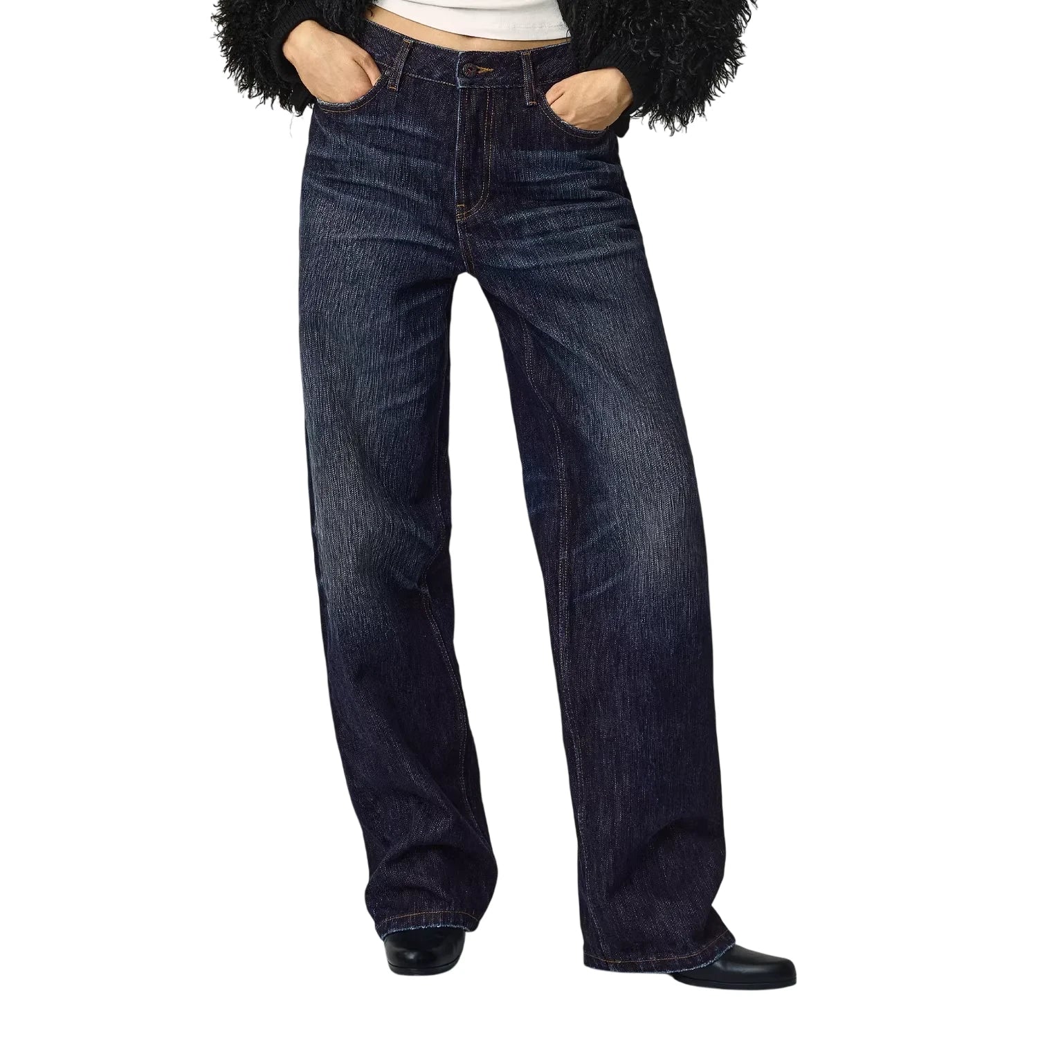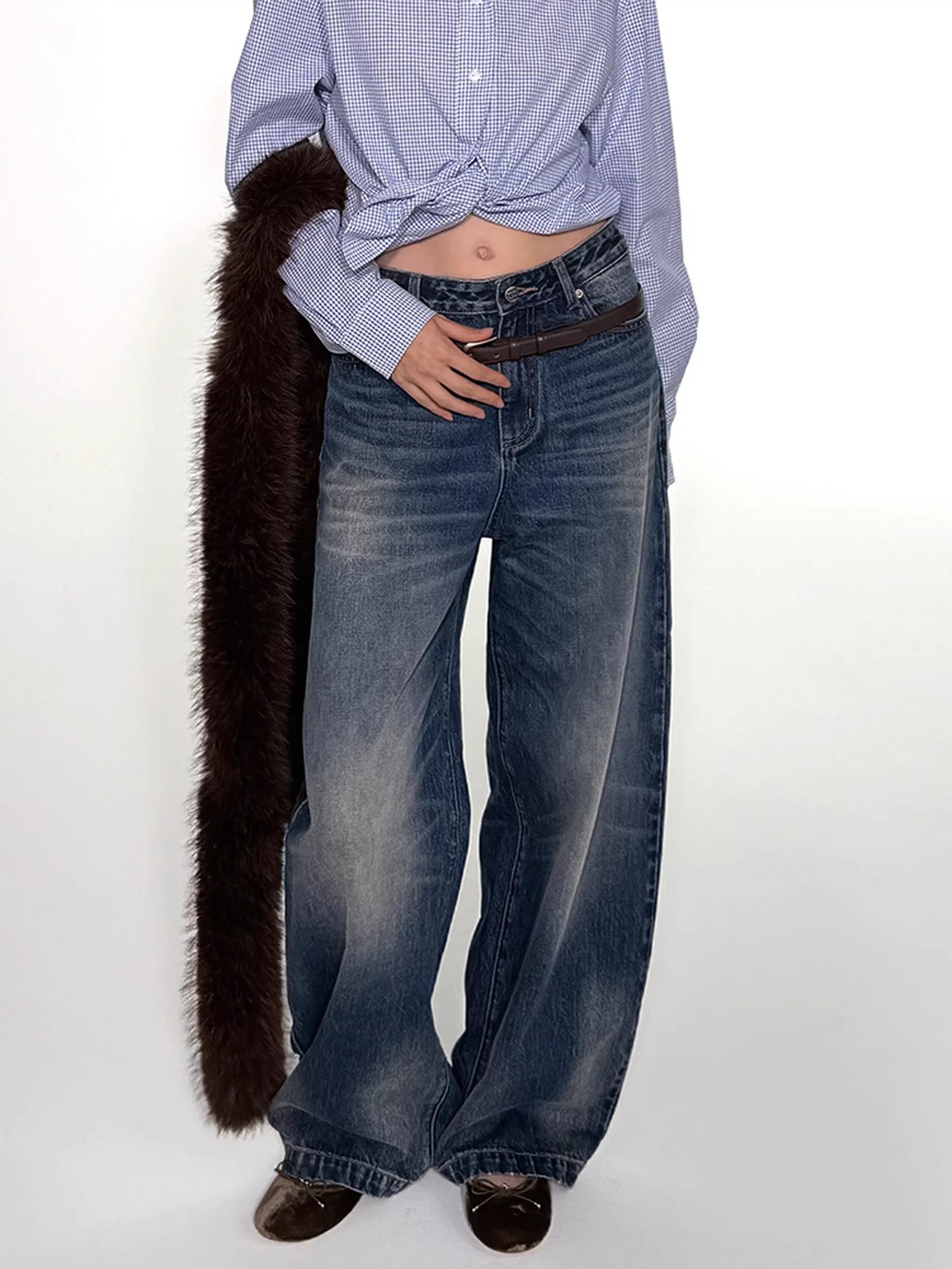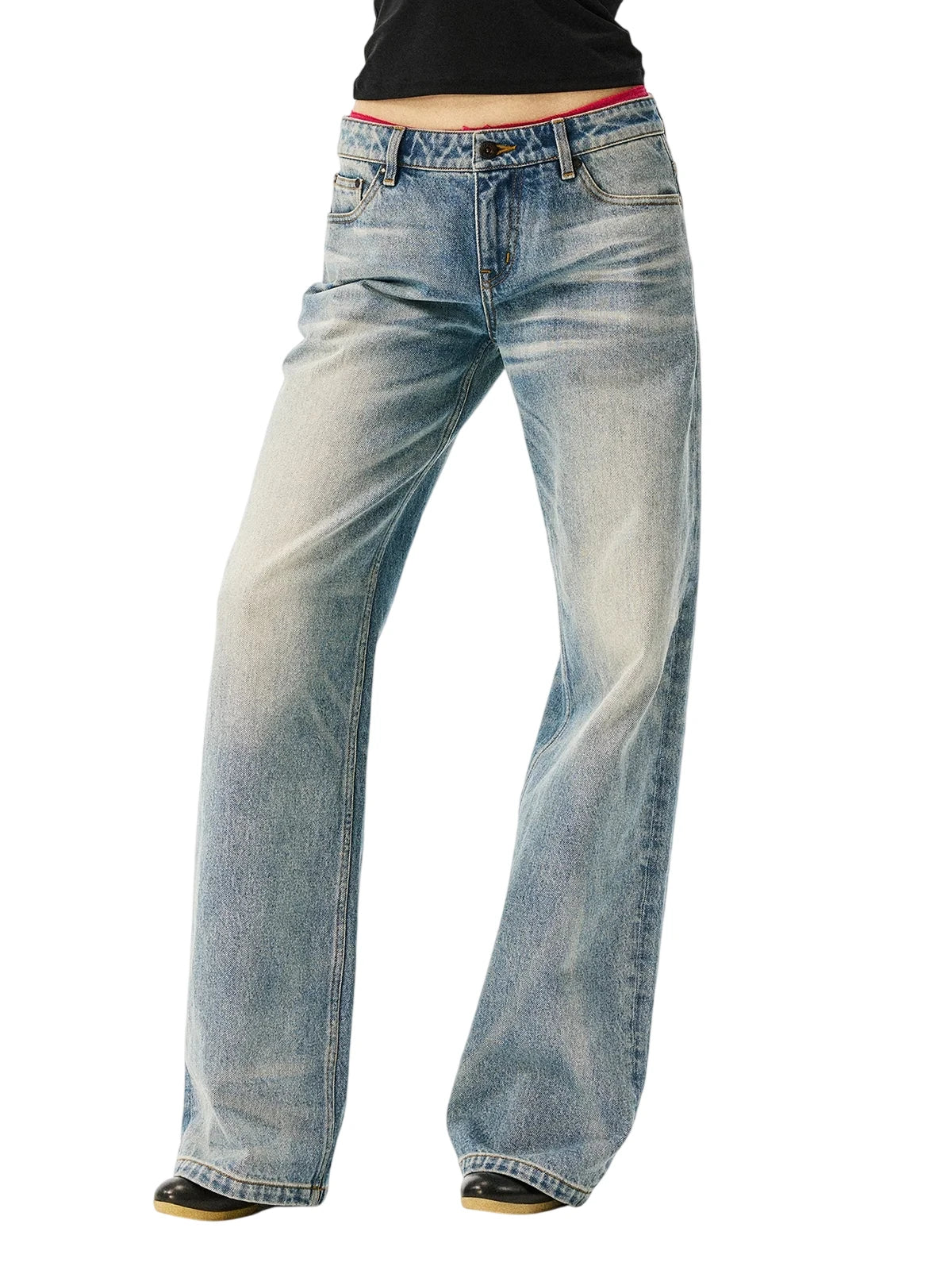 alright then Mid to Low Waist Vintage Washed Straight Leg Jeans