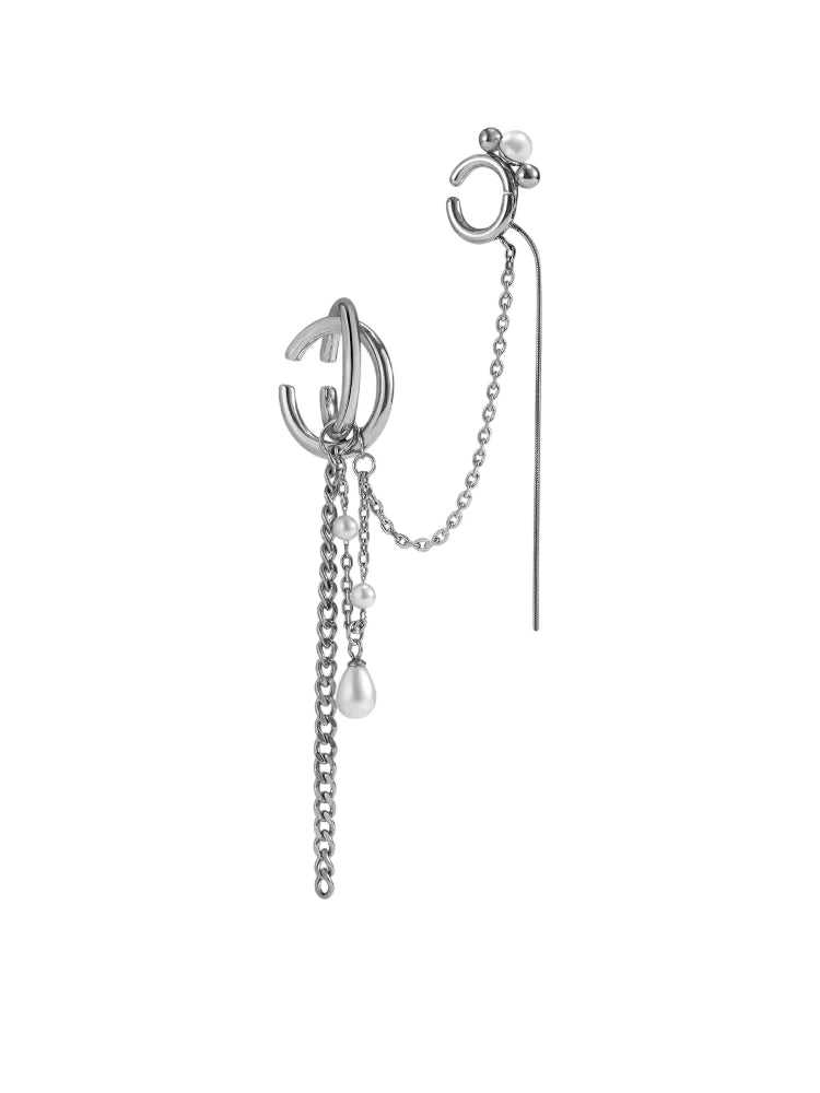 BLACKHEAD Asymmetrical Pearl Chain Ear Cuff Earrings for Women