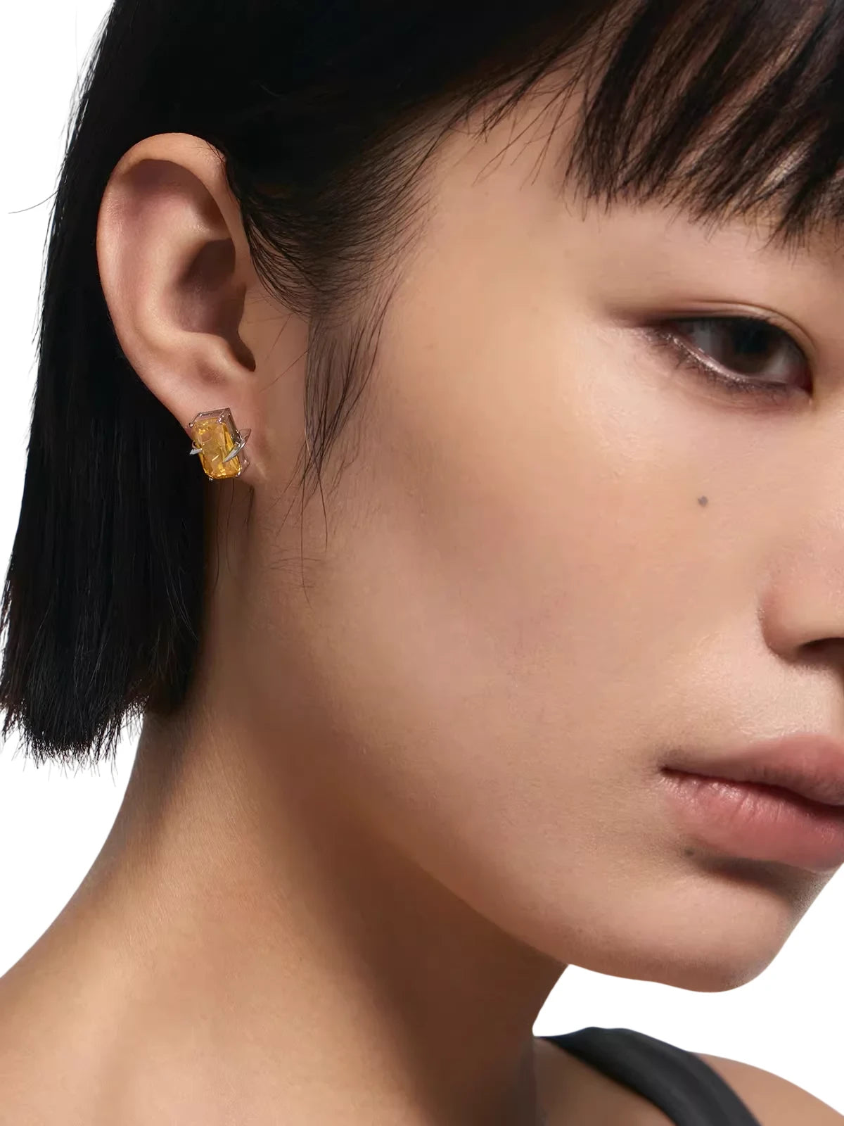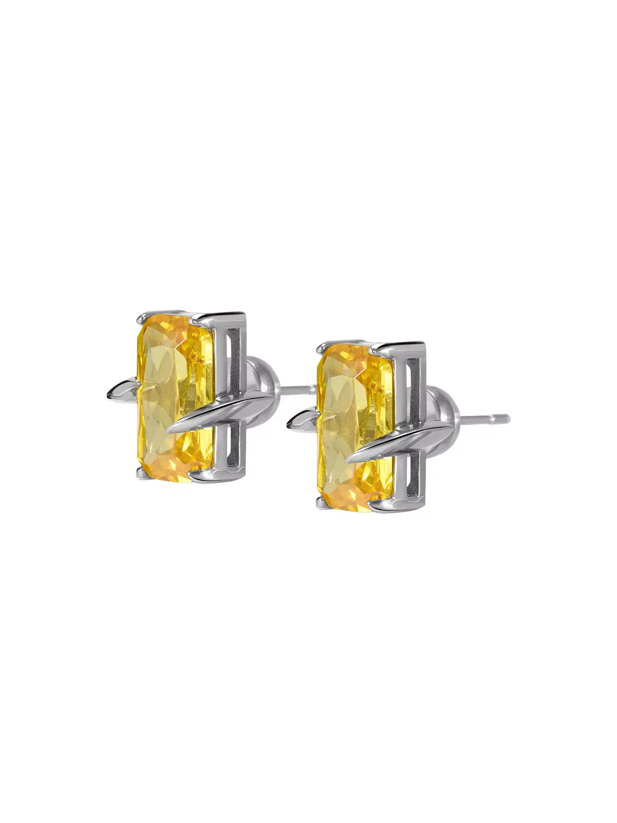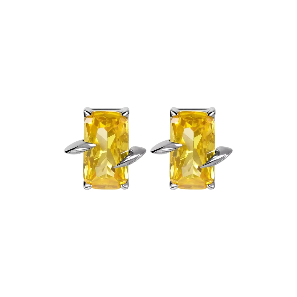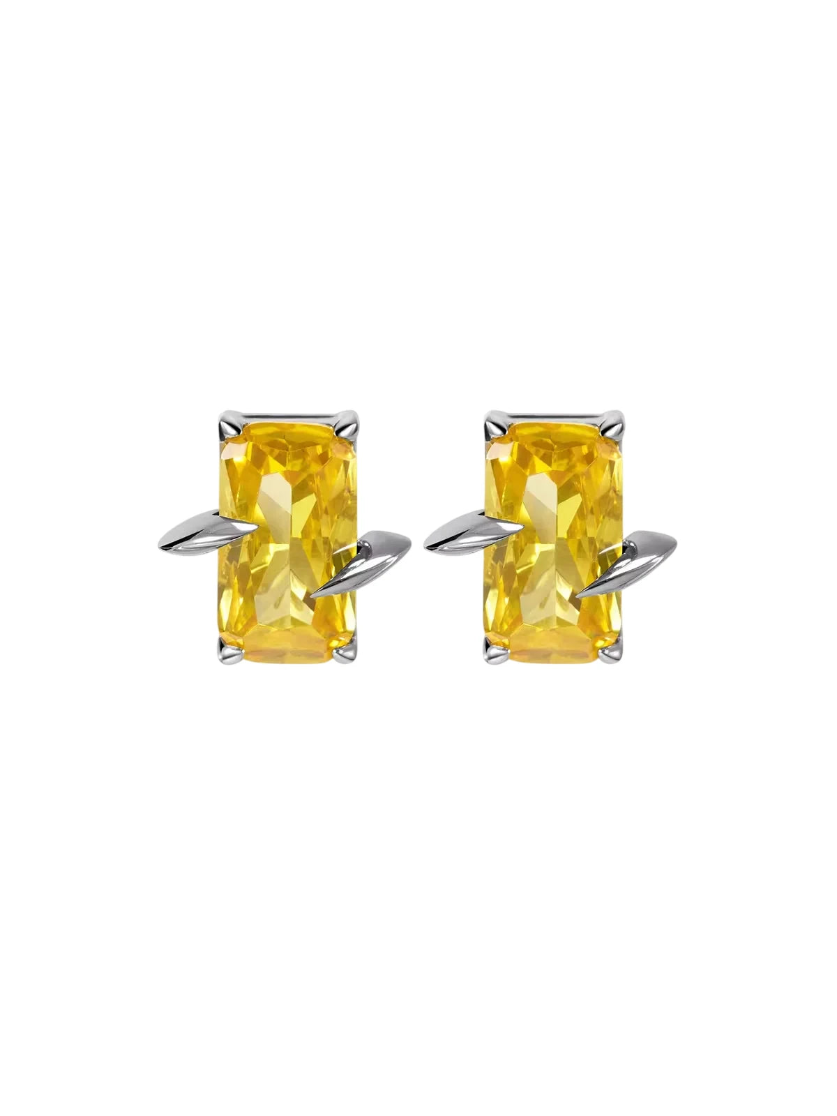 Make a bold statement with these spiked yellow rectangular stud earrings. Featuring faceted yellow gemstones set in silver-tone claw-style settings, these earrings offer a modern and edgy design. Their clean, geometric shape and symmetrical style provide a versatile accessory suitable for everyday wear or special occasions. Designed with simplicity and originality, they are ideal for women seeking a distinctive jewelry piece with contemporary flair.