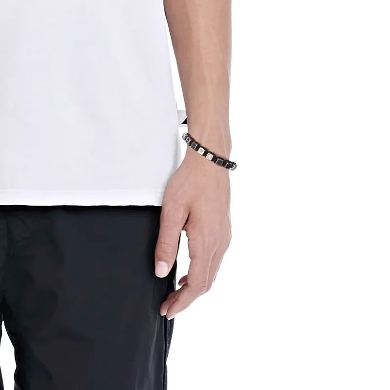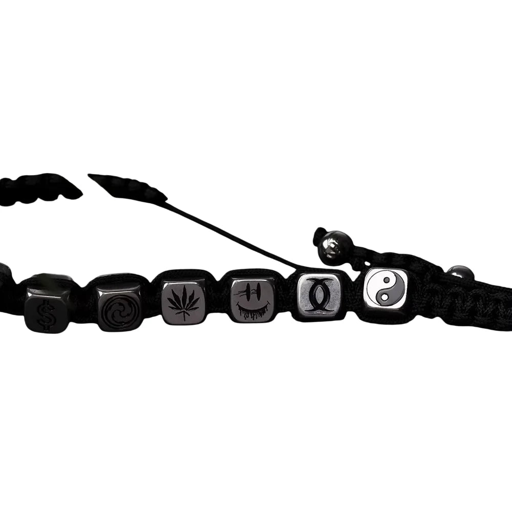BLACKHEAD Unisex Adjustable Dice Beaded Bracelet with Engraved Metallic Beads