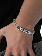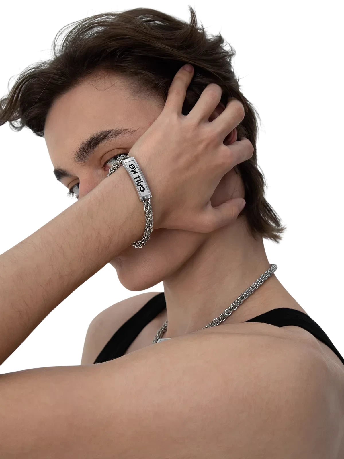 Elevate your everyday style with this unisex Cuban chain bracelet, crafted from durable titanium steel for a sleek and modern look. Featuring a bold rectangular metal plate engraved with the phrase “CALL ME,” this chunky silver-toned accessory is a standout piece for both men and women. A secure lobster clasp ensures it stays in place, making it perfect for daily wear or as a meaningful couple's accessory.
