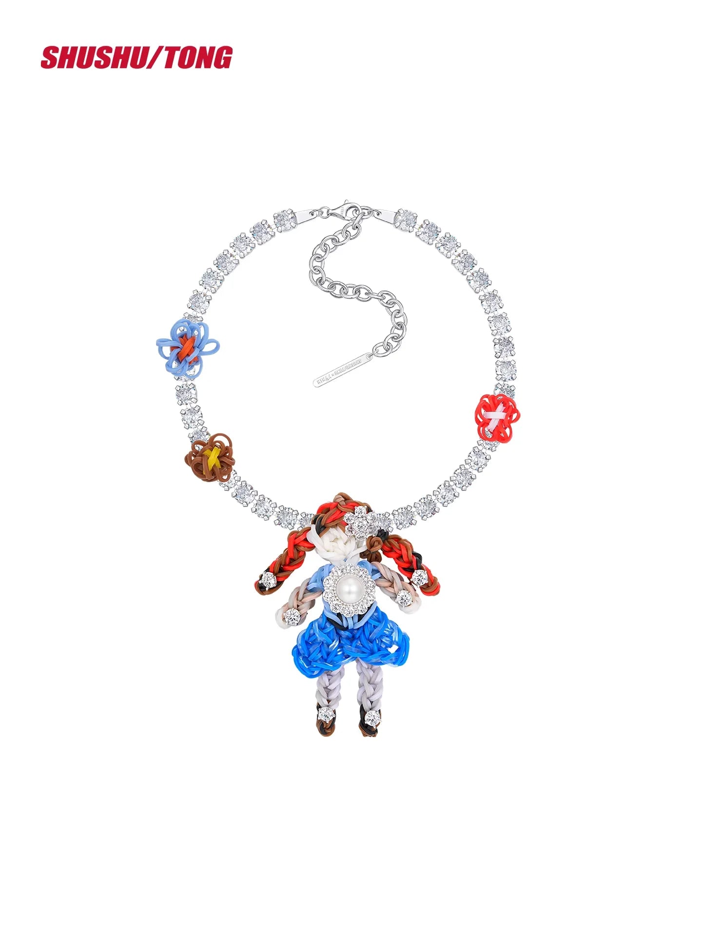 shushutong Whimsical Zircon Doll Pendant Necklace