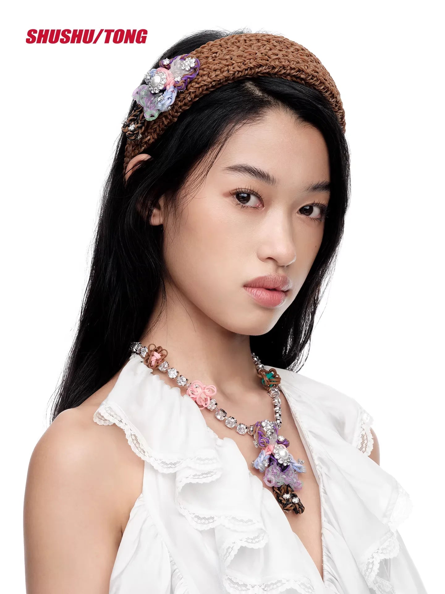 This elegant necklace showcases a series of sparkling zircon crystal links set in silver-tone metal. The focal point is a charming doll-shaped pendant adorned in a bright yellow dress with intricate crystal embellishments. The doll features braided brown hair, expressive gray and yellow limbs, and stylish black shoes. Accented with delicate pastel flower motifs, this playful and artistic accessory is perfect for adding a touch of whimsy to your winter wardrobe. Designed for girls, the necklace embodies creative flair and seasonal sophistication.