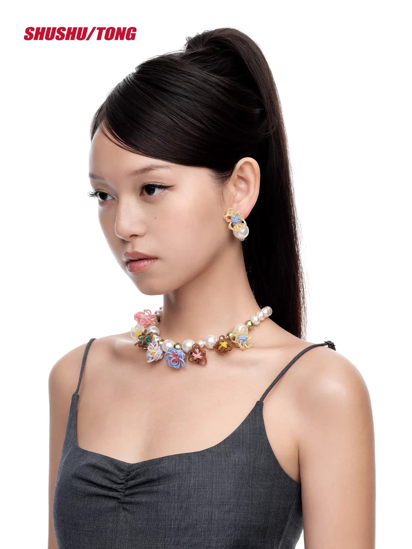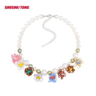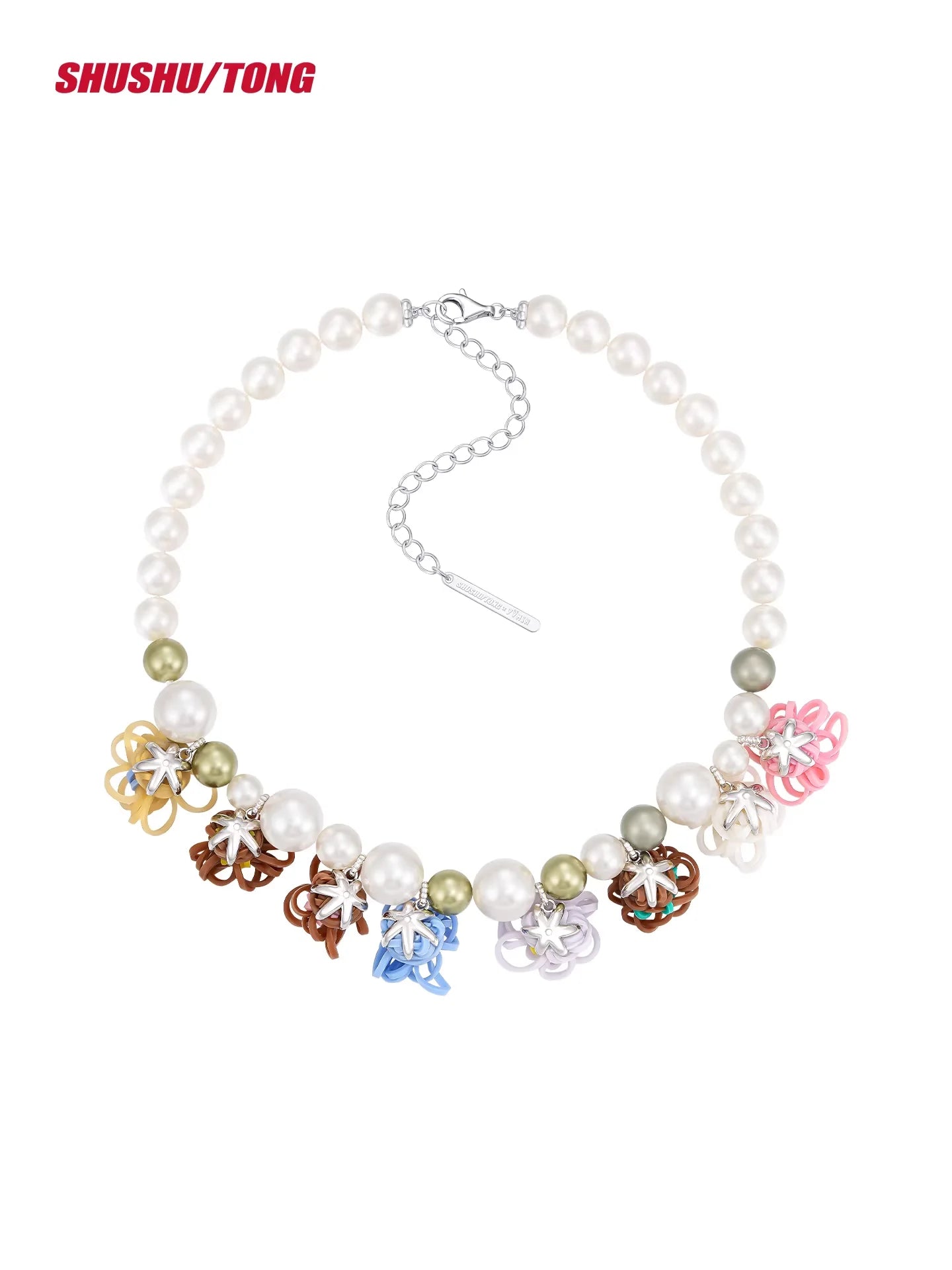 shushutong Women's Floral Beaded Faux Pearl Necklace