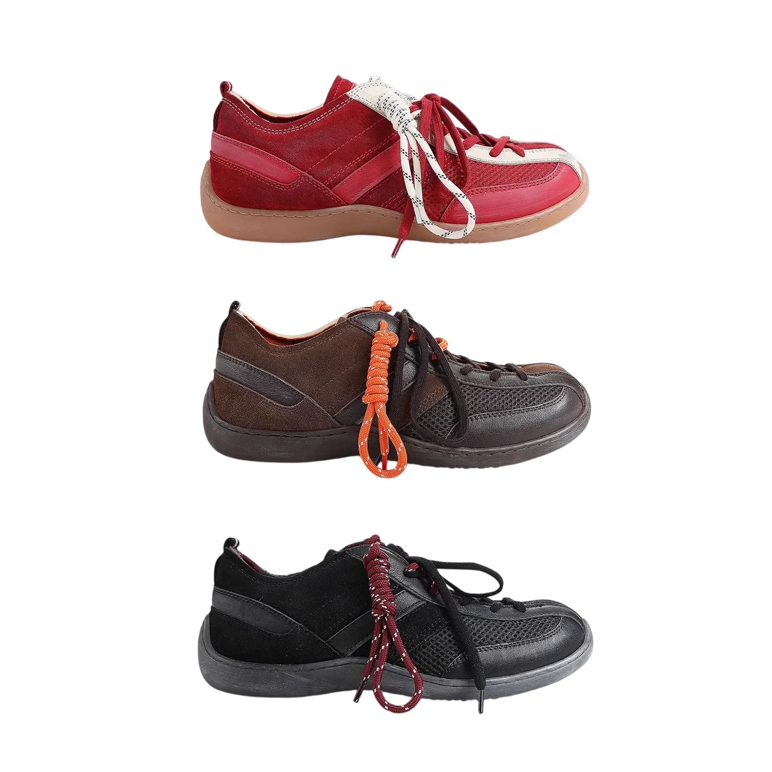 Step up your casual footwear game with these men's retro colorblock low-top sneakers. Designed with a blend of suede, leather, and mesh materials, these shoes offer a stylish yet functional appeal. Each pair features a unique color combination—red and beige, brown and orange, or black and deep red—making them versatile choices for everyday wear.