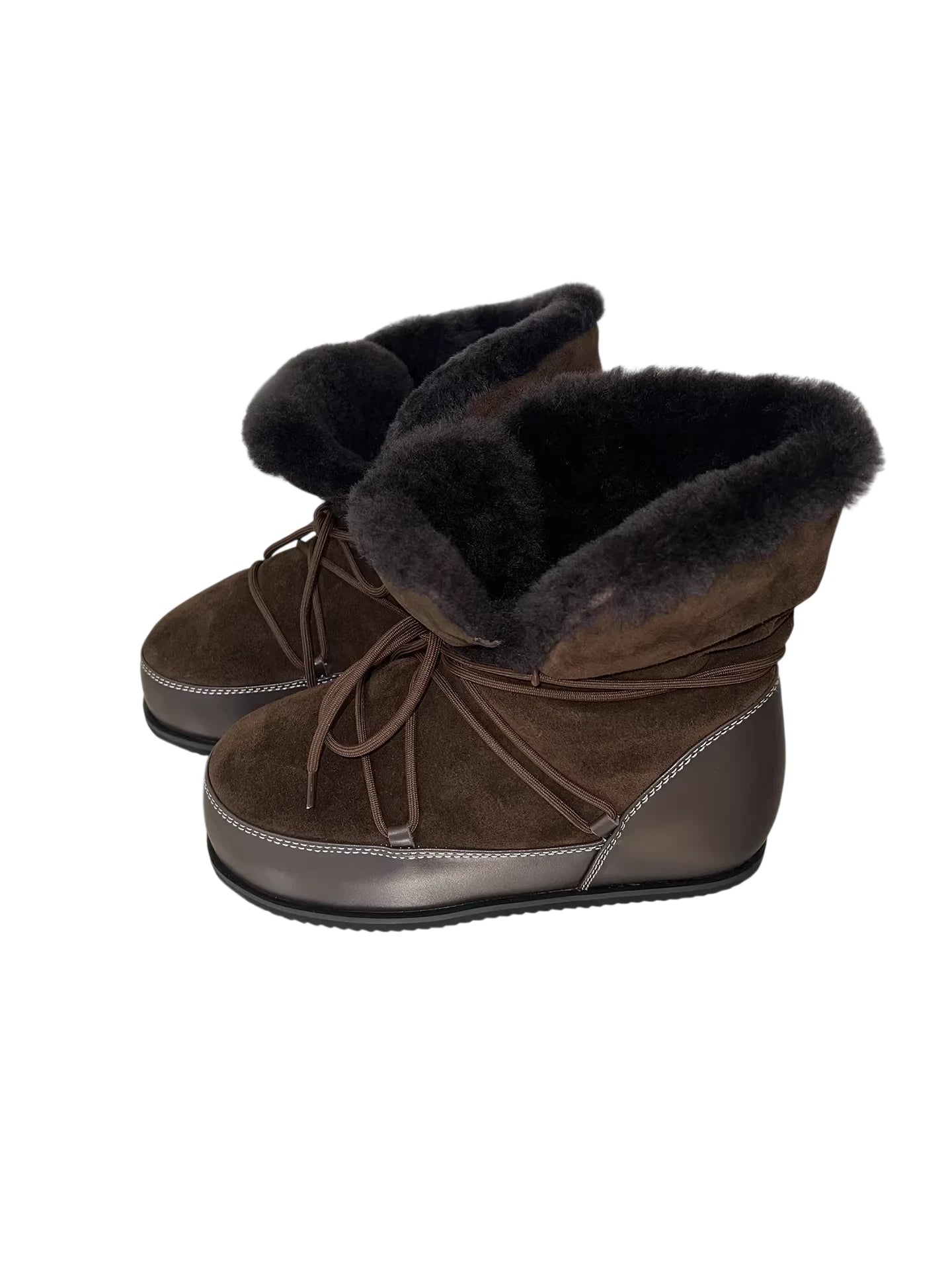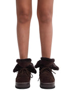 RARELY ALIKE Women's Hidden Wedge Lace-Up Furry Snow Boots - Brown/White Coffee