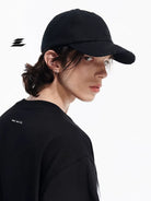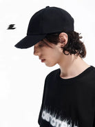 Elevate your casual style with this classic black baseball cap, featuring subtle distressed detailing along the brim for a worn-in look. Constructed with a structured six-panel design, it offers both durability and comfort. The slightly embossed front logo adds a refined touch, while the unisex fit is modeled here by a young male for styling reference. Perfect for everyday wear and seasonal promotions.