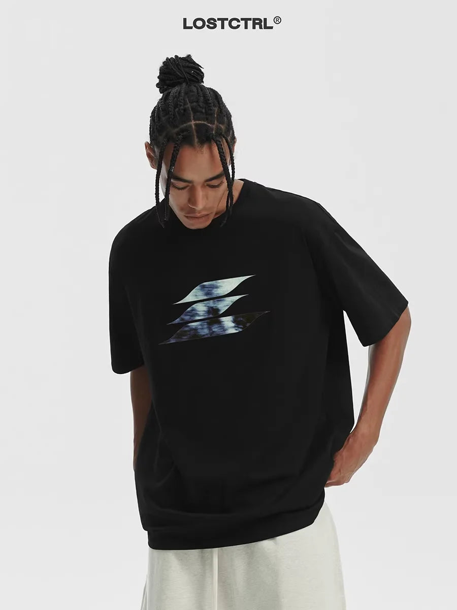 LOSTCTRL Men's Loose Fit Cotton T-Shirt with Abstract Graphic Print