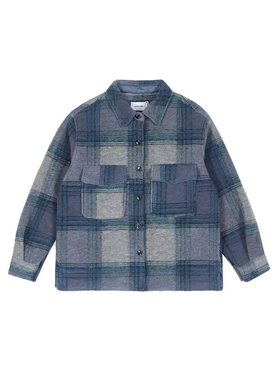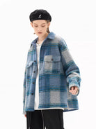 LOSTCTRL Plaid Woolen Overshirt with Suede Finish - Unisex Winter Retro Style