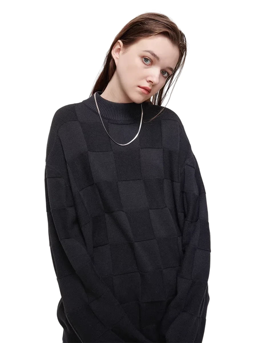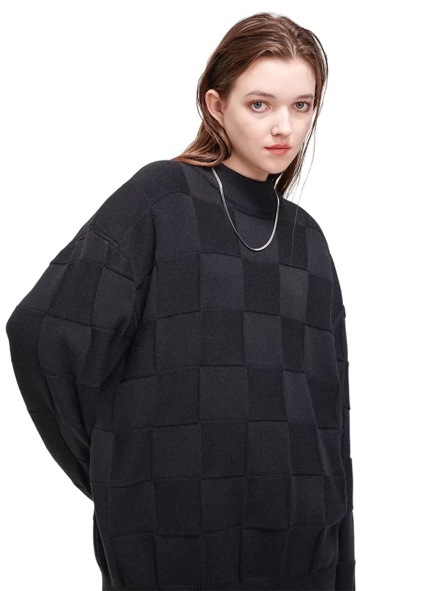 LOSTCTRL Unisex Checkered Knit Crew Neck Sweater