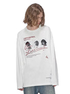 Designed for comfort and seasonal style, this unisex long-sleeve T-shirt features a relaxed, loose fit perfect for early autumn wear. The shirt showcases bold graphic prints, including monochrome portrait visuals and stylized text, adding a unique streetwear flair. Available in contrasting black and white options, it pairs effortlessly with casual bottoms for a laid-back yet impactful look.