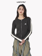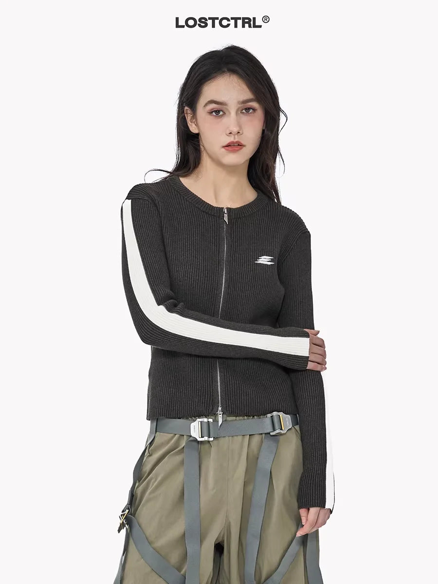 Stay cozy and stylish in this women's colorblock knit hoodie sweater, perfect for autumn and winter wear. Designed with a slim fit and full-length sleeves, it features a modern double zipper front and contrasting white stripes along the arms. A subtle embroidered logo adds a touch of sporty elegance. Ideal for layering, this warm outerwear is a versatile addition to your seasonal wardrobe.