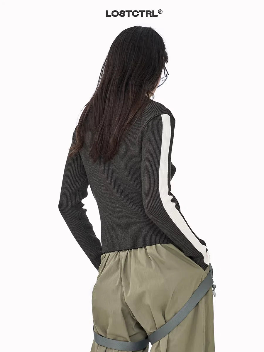 LOSTCTRL Women's Colorblock Double Zipper Knit Hoodie Sweater
