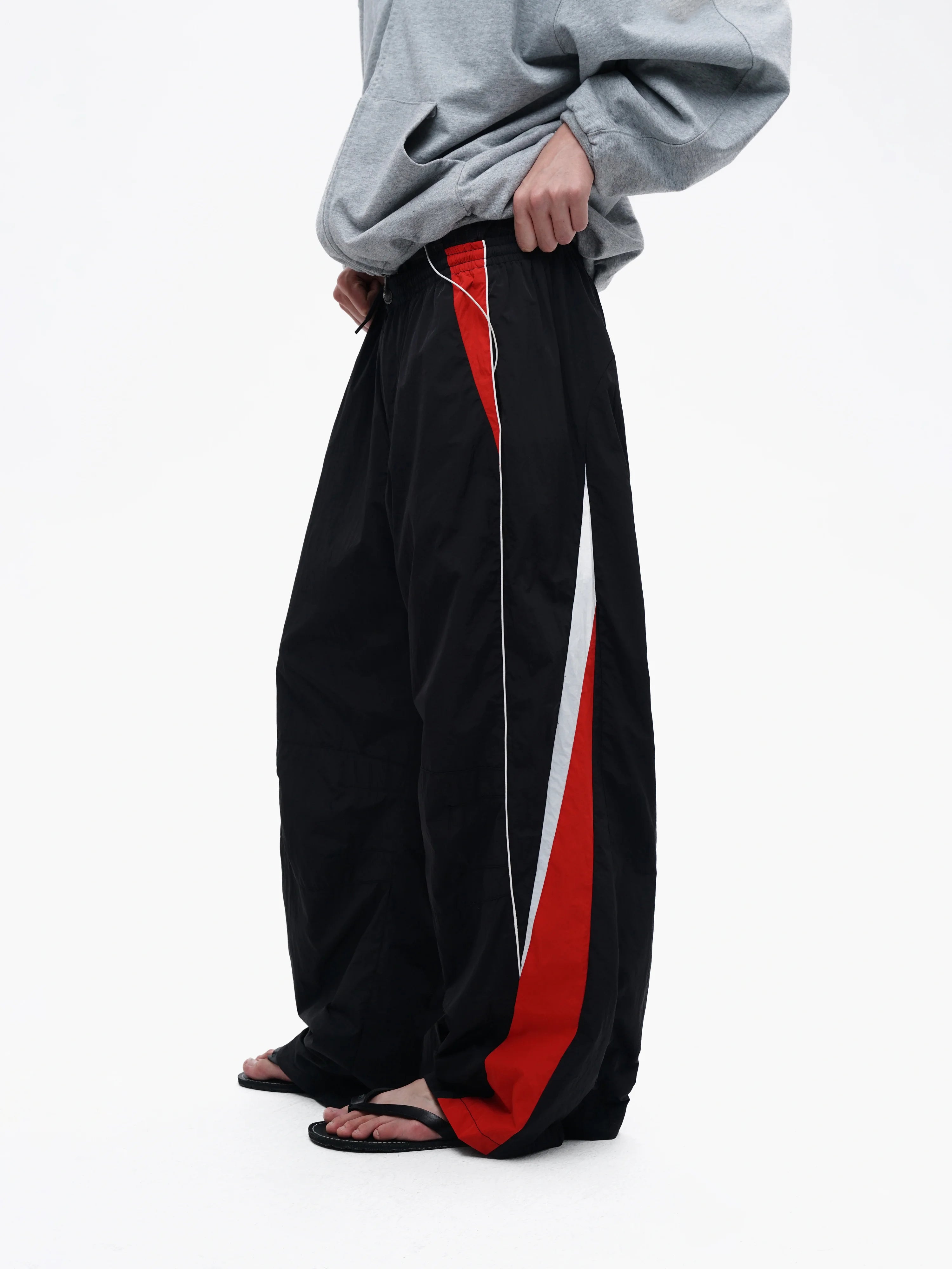 This 10th Anniversary Racing Club Coach Jacket Set offers a bold and sporty streetwear style. Featuring a racing-inspired design, the set includes a jacket adorned with logo patches and graphic elements in black, red, and white. The sleek contrast colors and detailing on the front, sleeves, and shoulders amplify its edgy urban appeal.