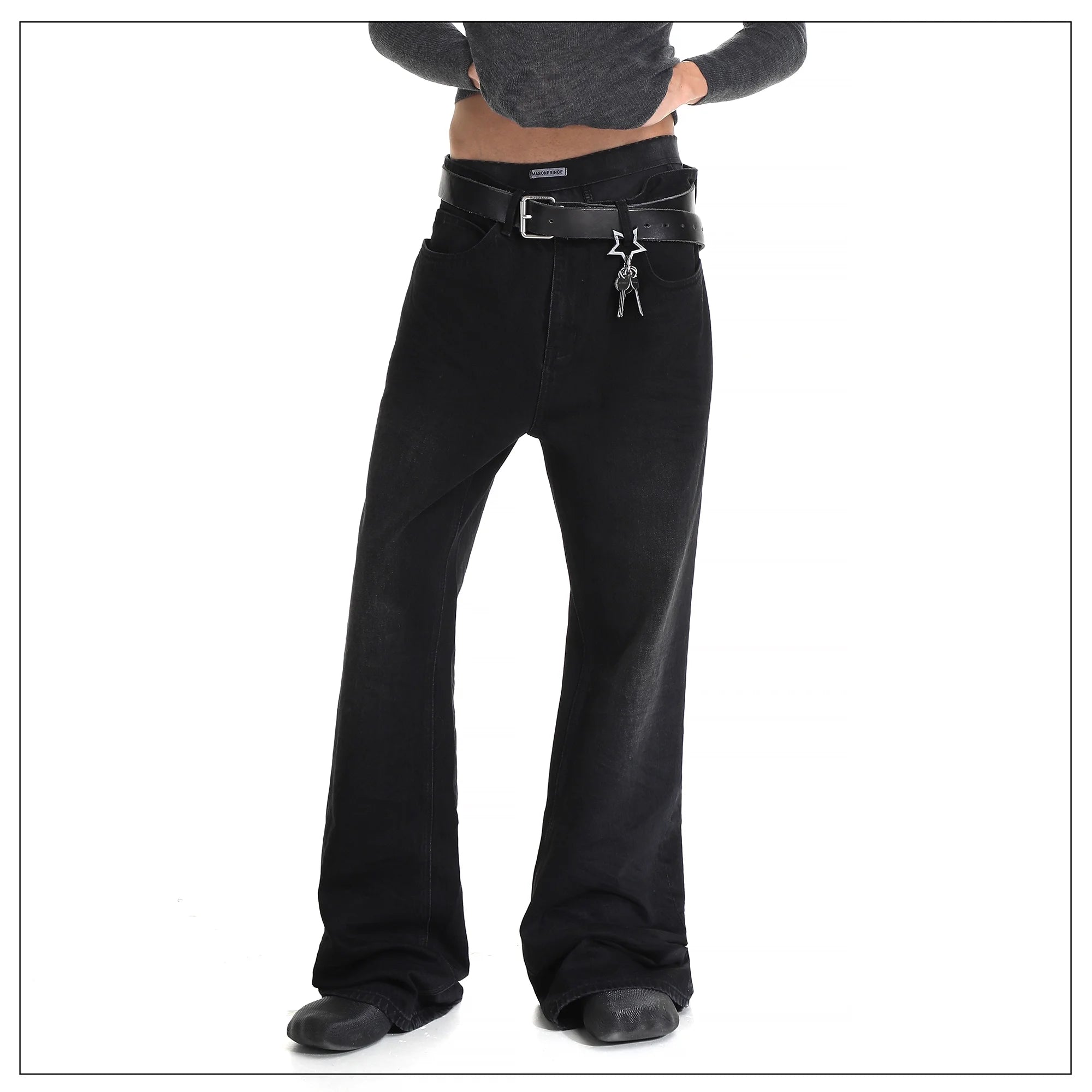 MASONPRINCE 3D Crinkled High-Waisted Wide-Leg Jeans - Vintage Black Gray