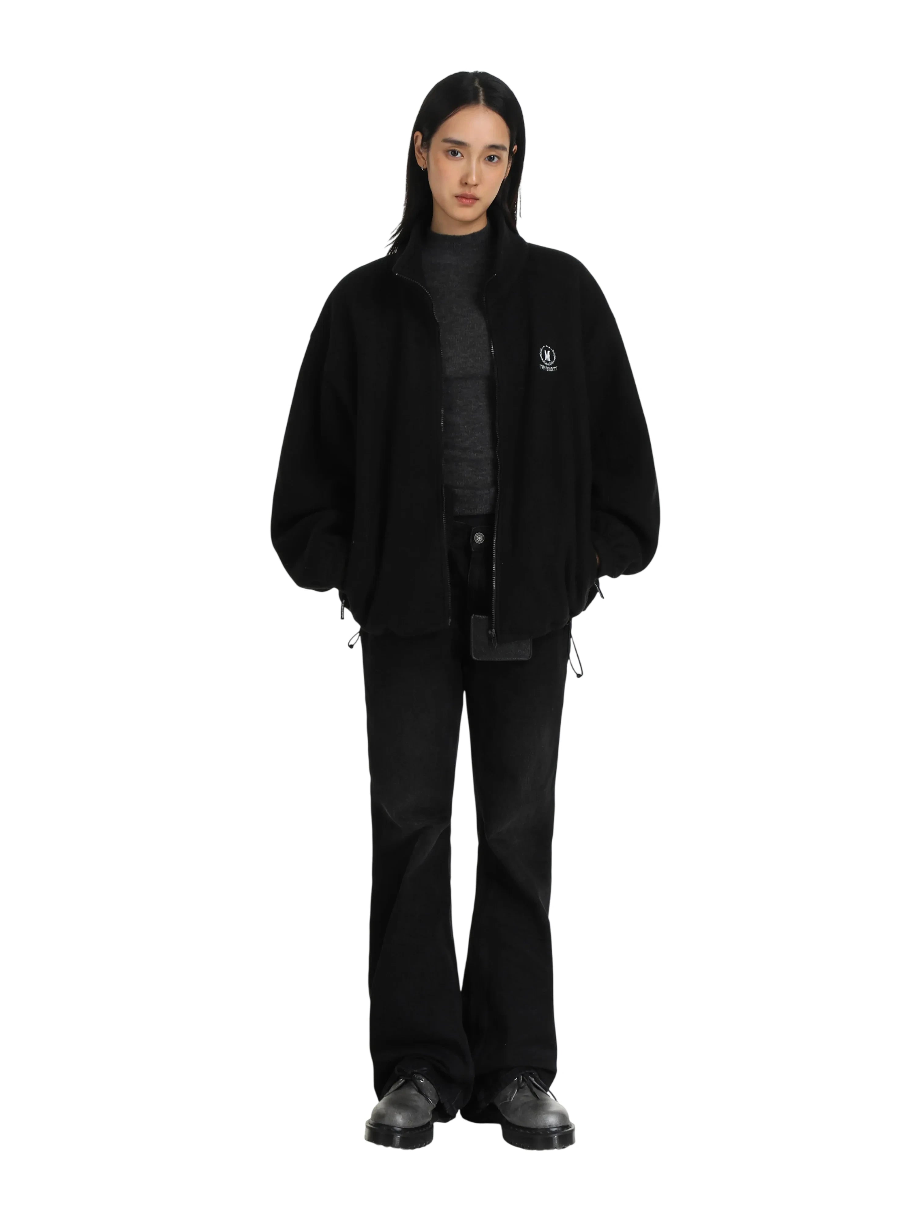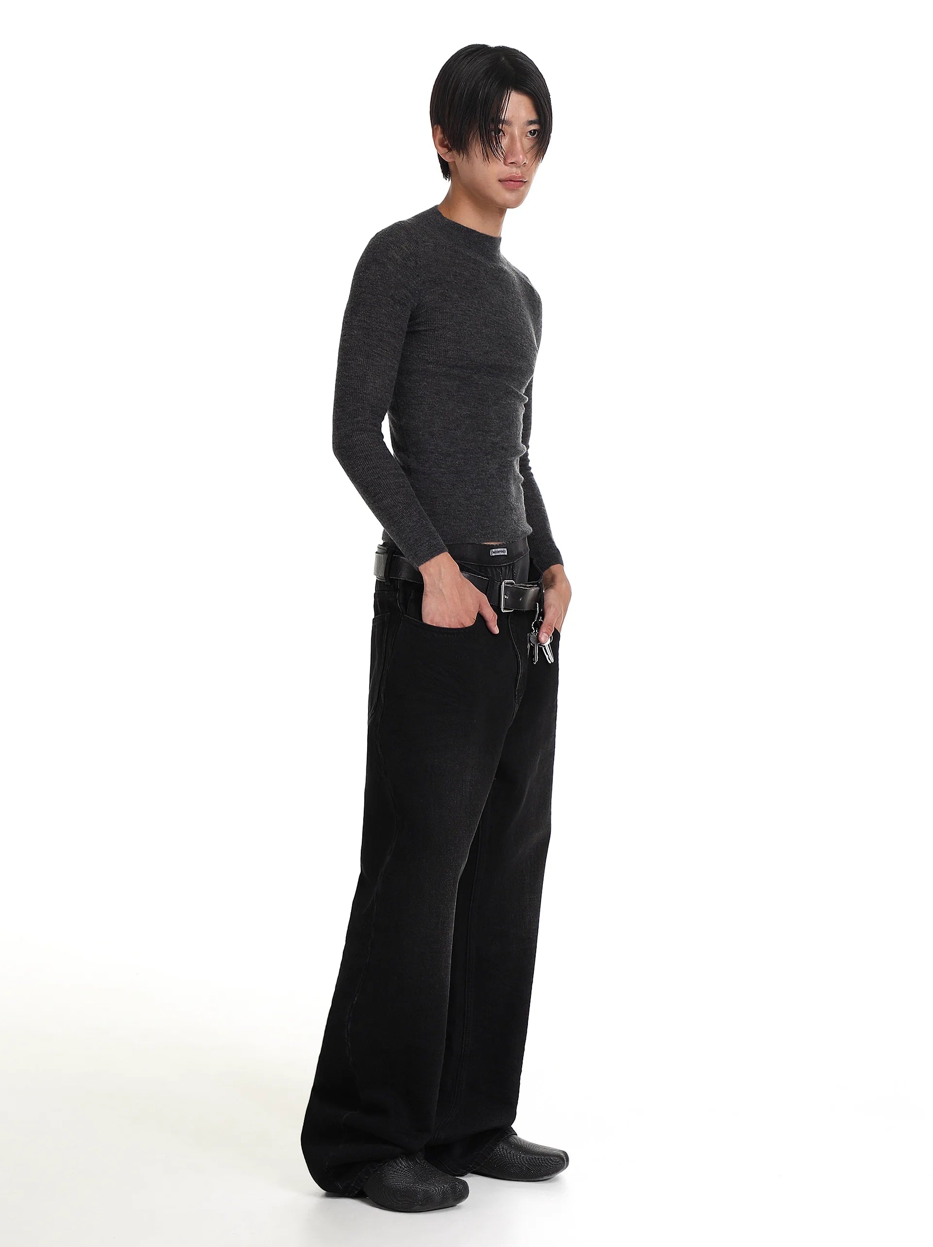 Elevate your everyday style with these 3D crinkled high-waisted wide-leg jeans in a low-saturation vintage black gray wash. Designed for a bold, contemporary look, these jeans feature a subtle faded finish along the front and seams, creating a worn-in aesthetic that exudes effortless cool.