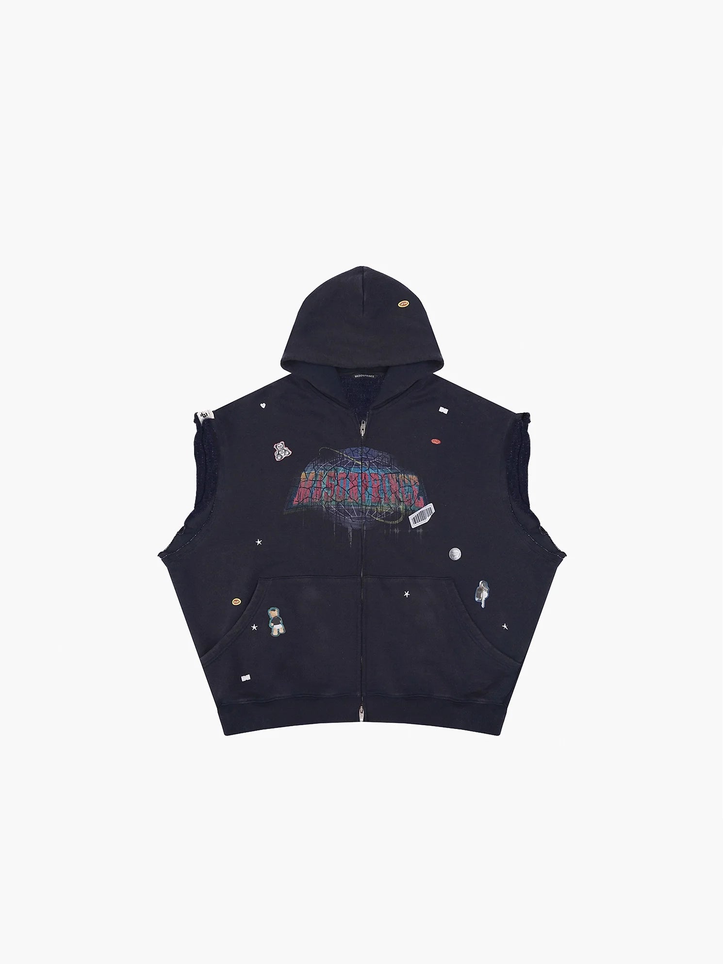 MASONPRINCE 4-Piece Space Patch Knit Set - Short Sleeve, Vest, Hoodie, Pants