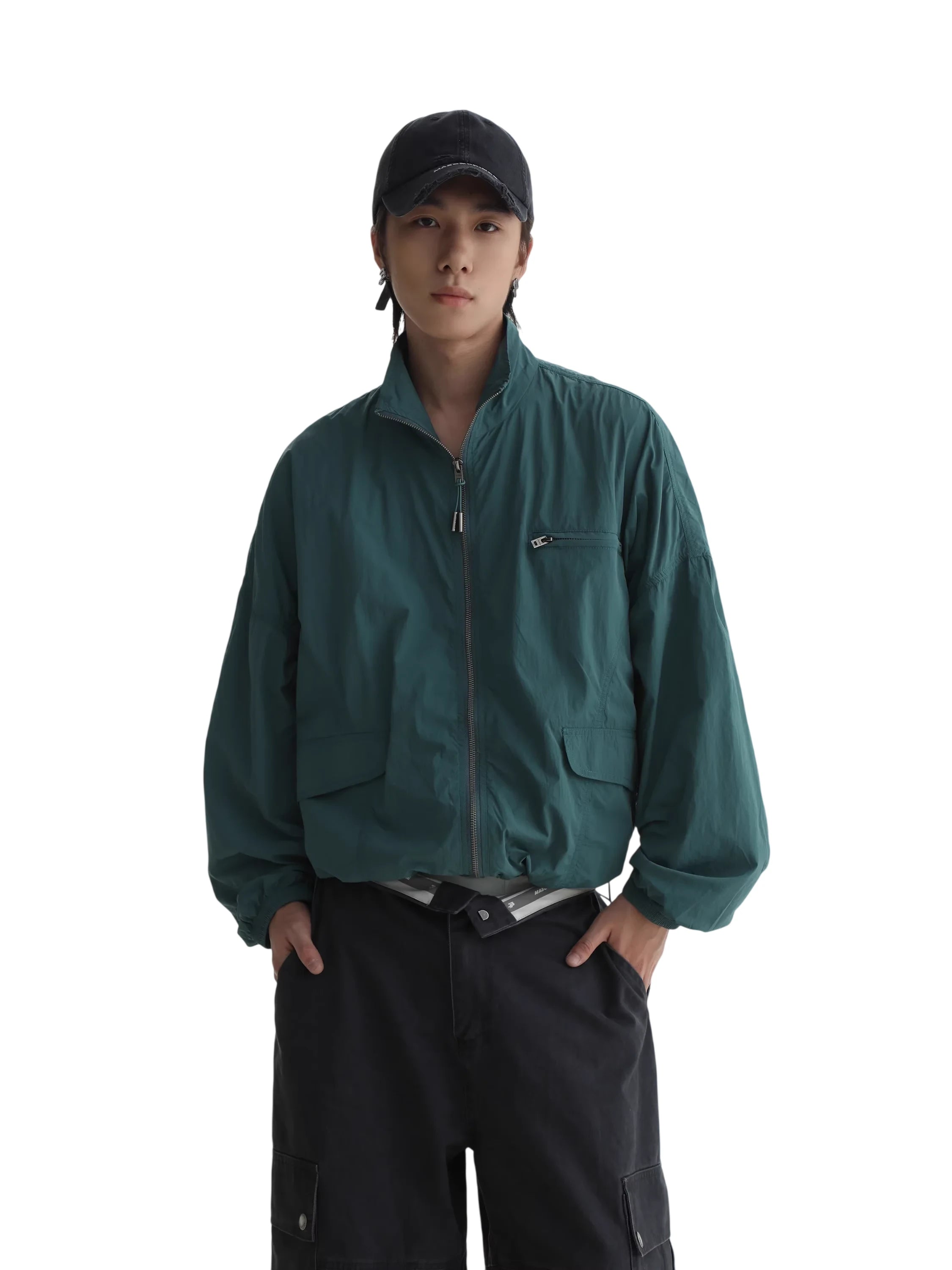 Capture vintage vibes with this 90s-inspired relaxed fit windbreaker jacket for men. Featuring a stylish oversized silhouette, this zip-up bomber-style jacket adds an effortless, urban edge to any look. The design includes distinctive white stitching, a front chest zipper pocket, and a versatile black color that suits any outfit. Ideal for cooler weather, this piece brings together retro flair and modern streetwear seamlessly.