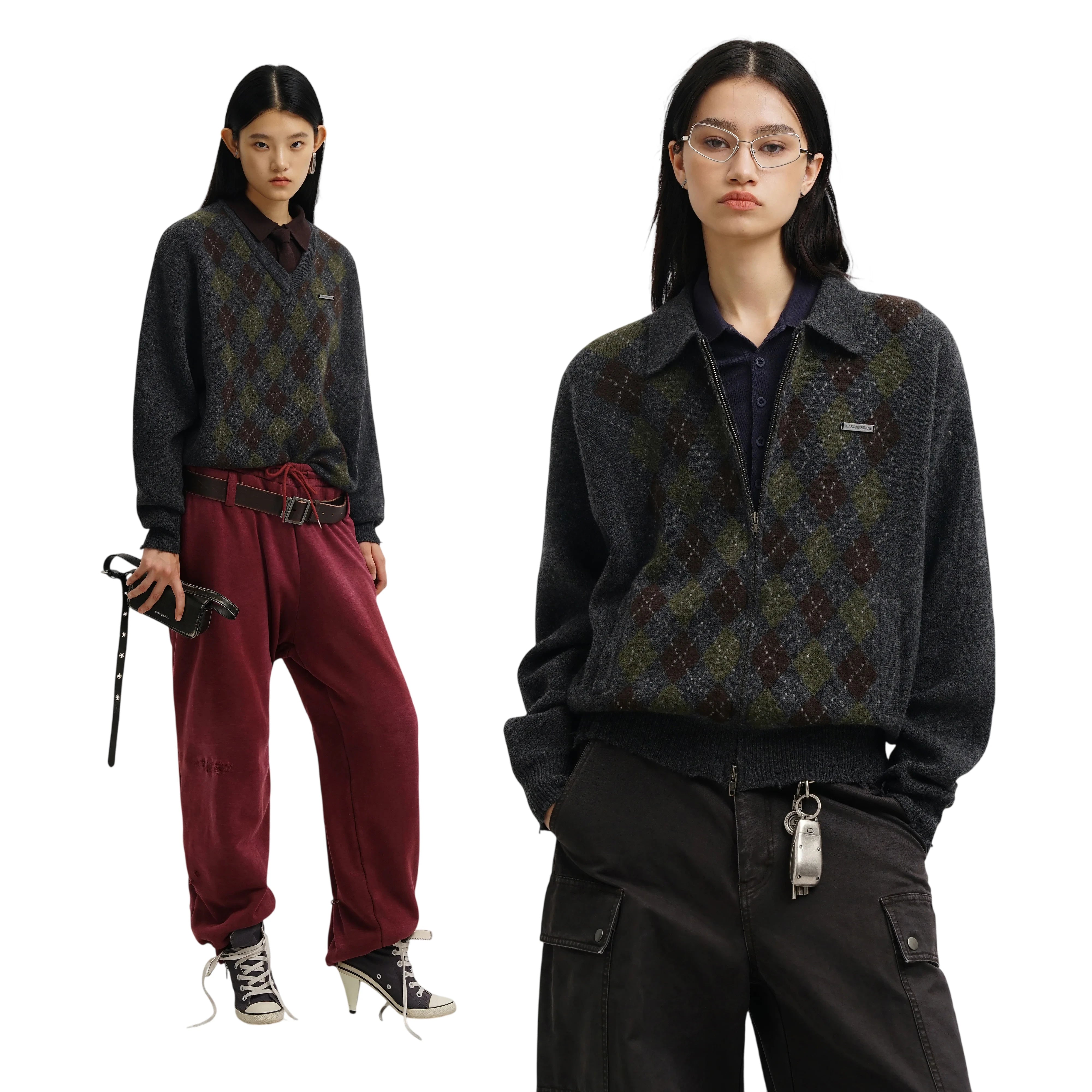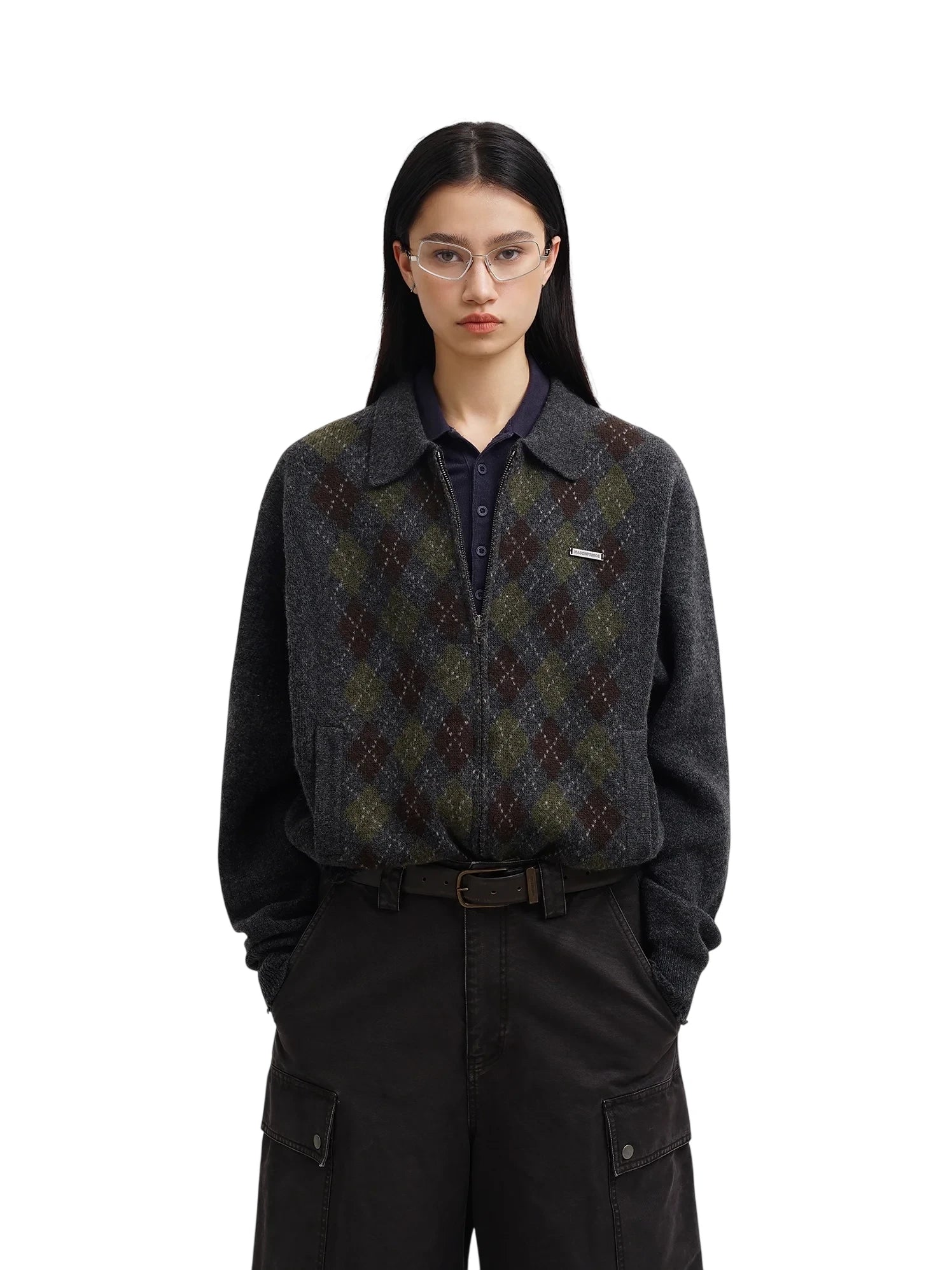 MASONPRINCE Argyle Knit Zip-Up Cardigan