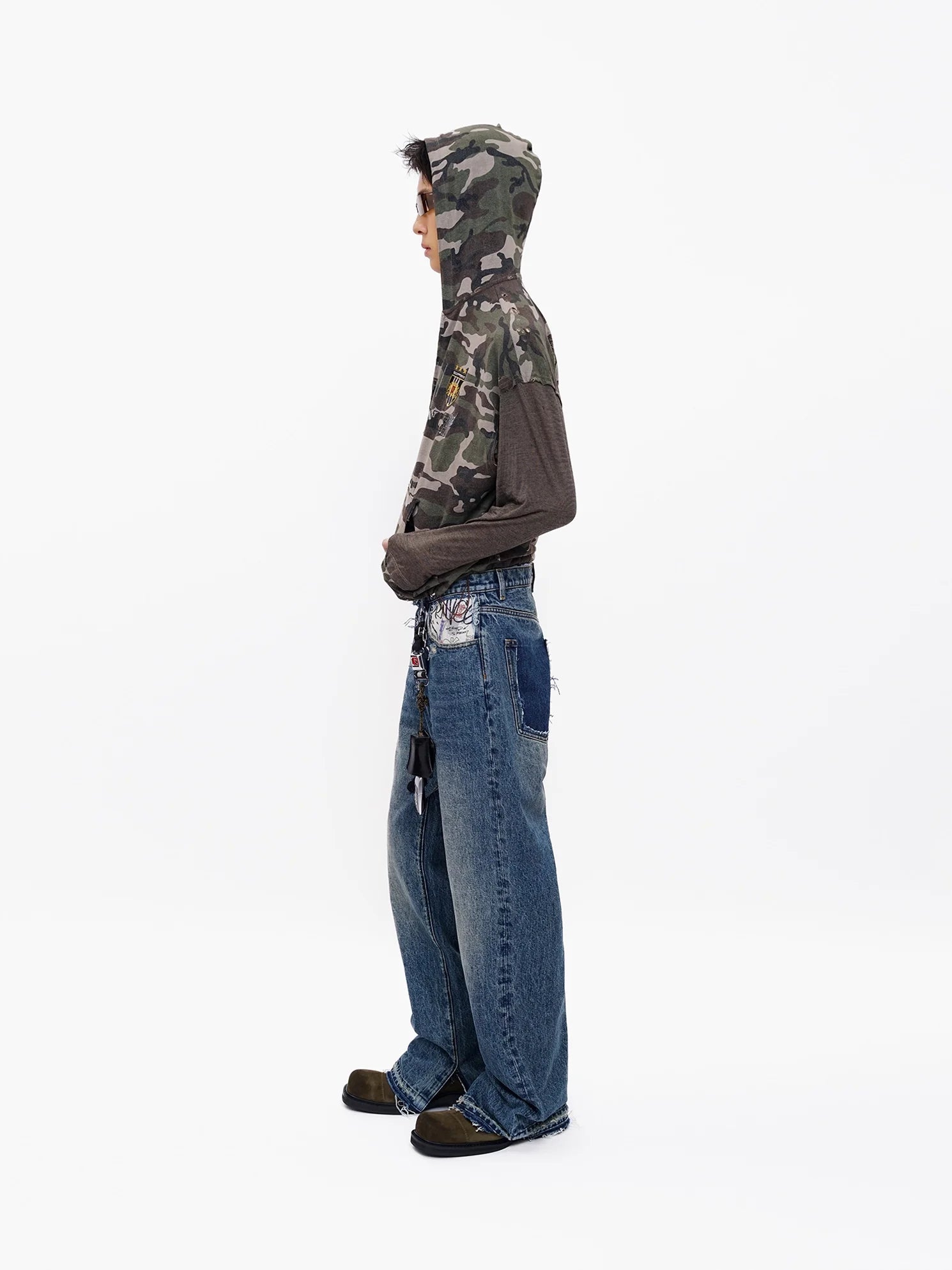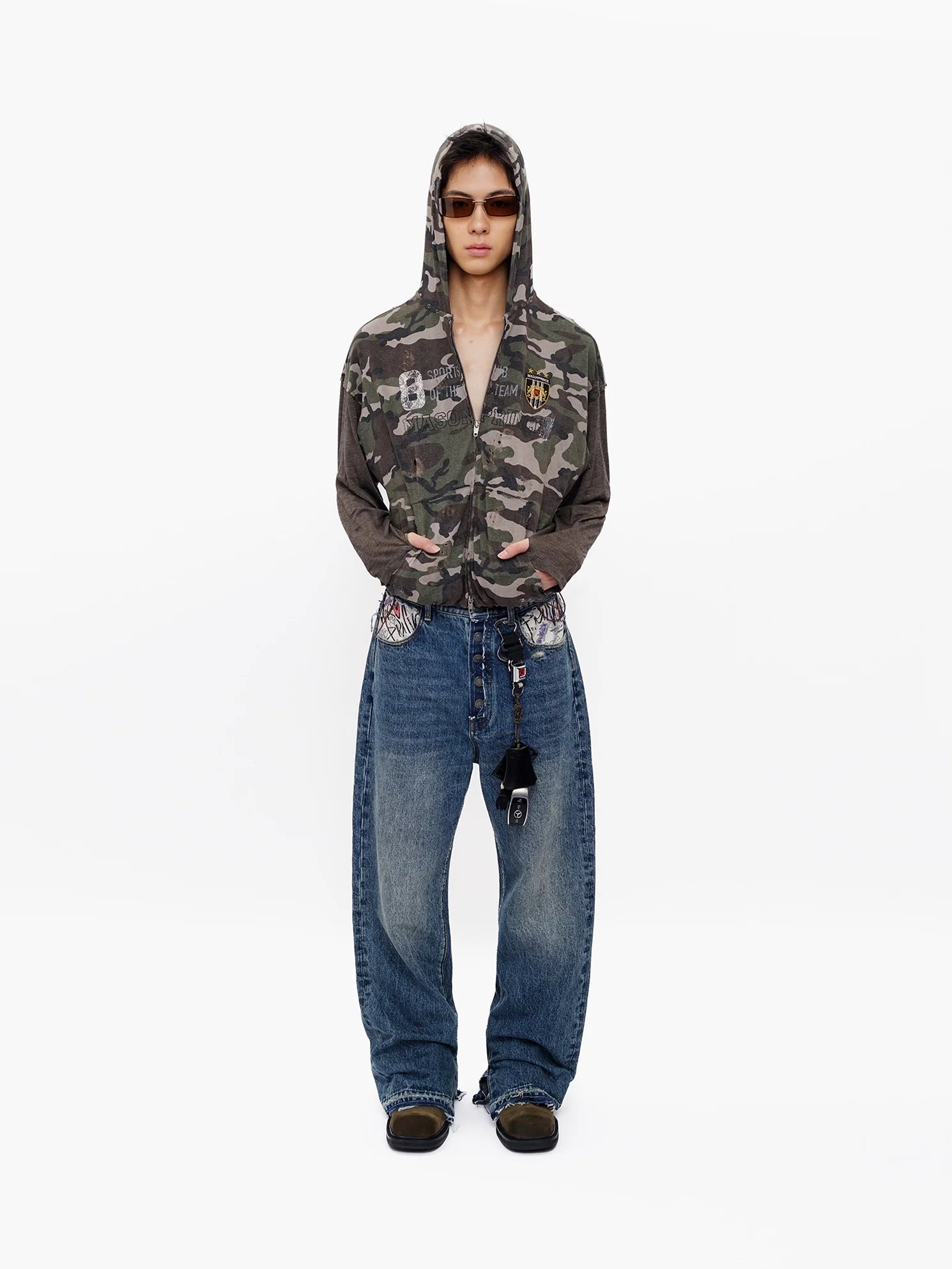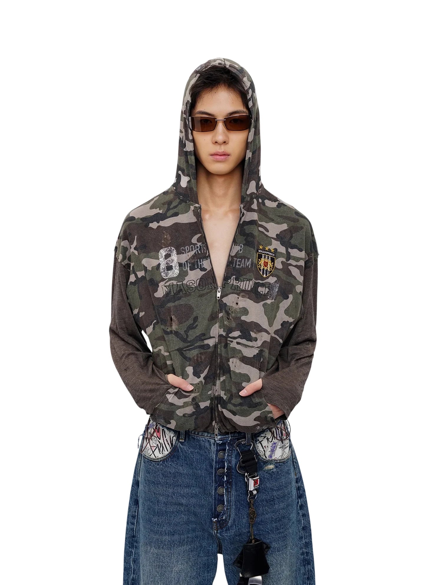 MASONPRINCE Camouflage Patchwork Hoodie with Contrast Sleeves