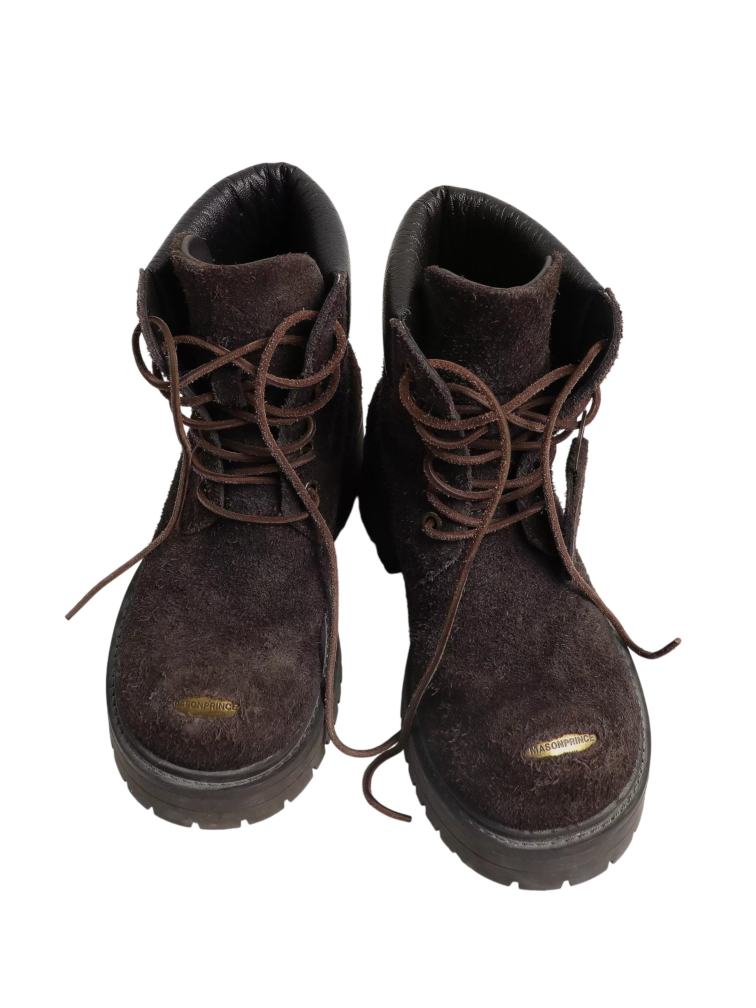 MASONPRINCE Chocolate Suede Work Boots with 7cm Lift