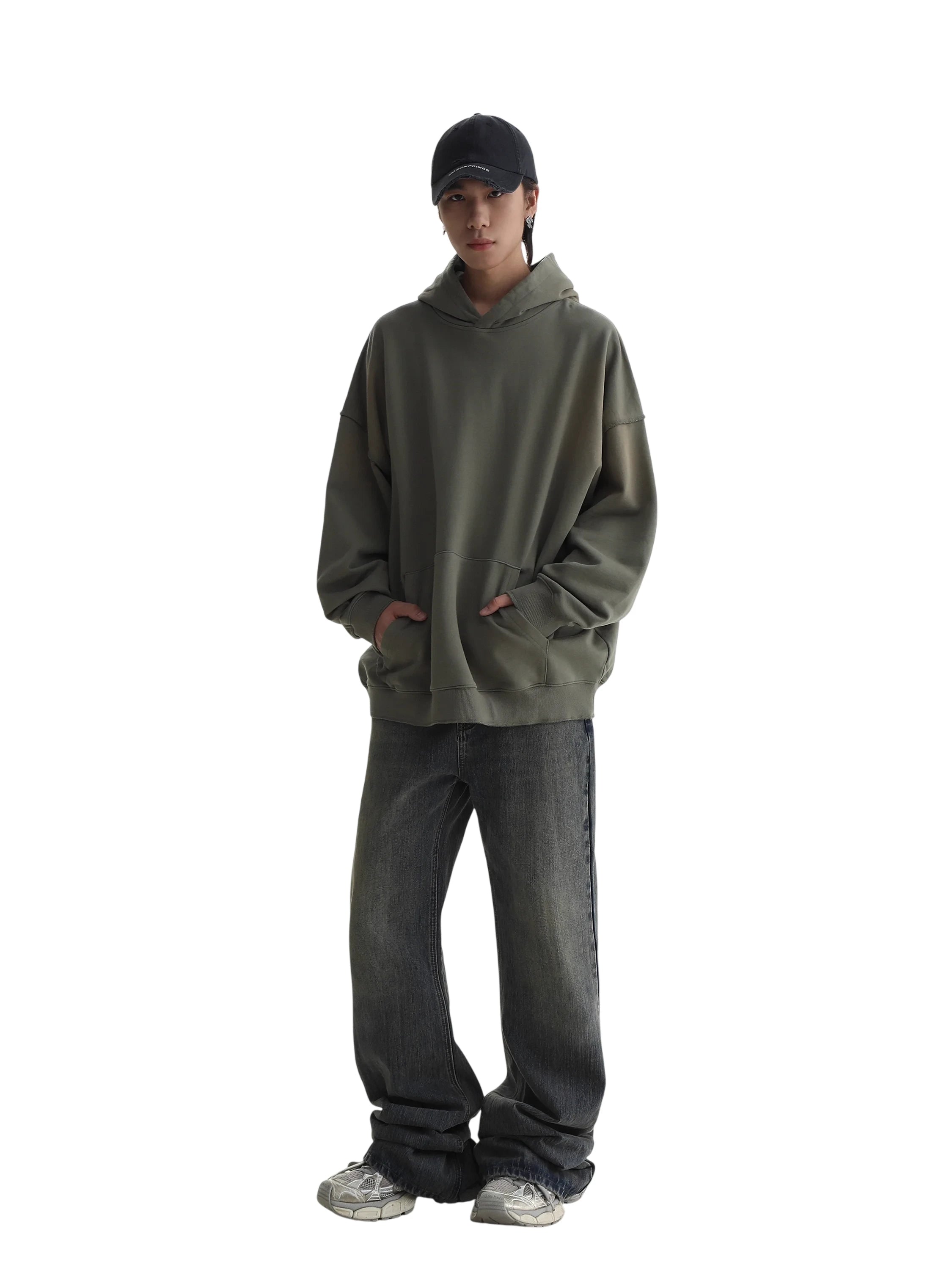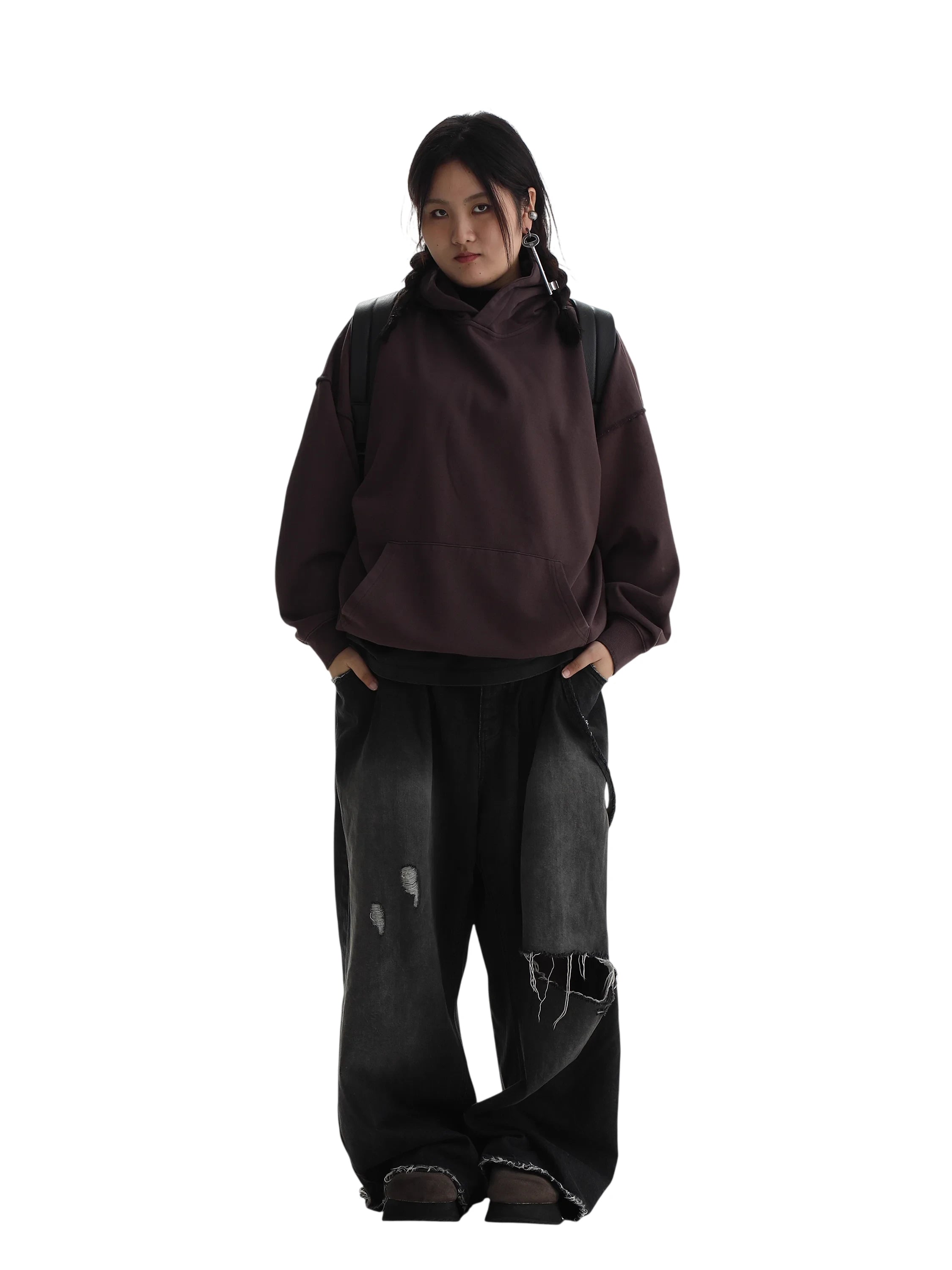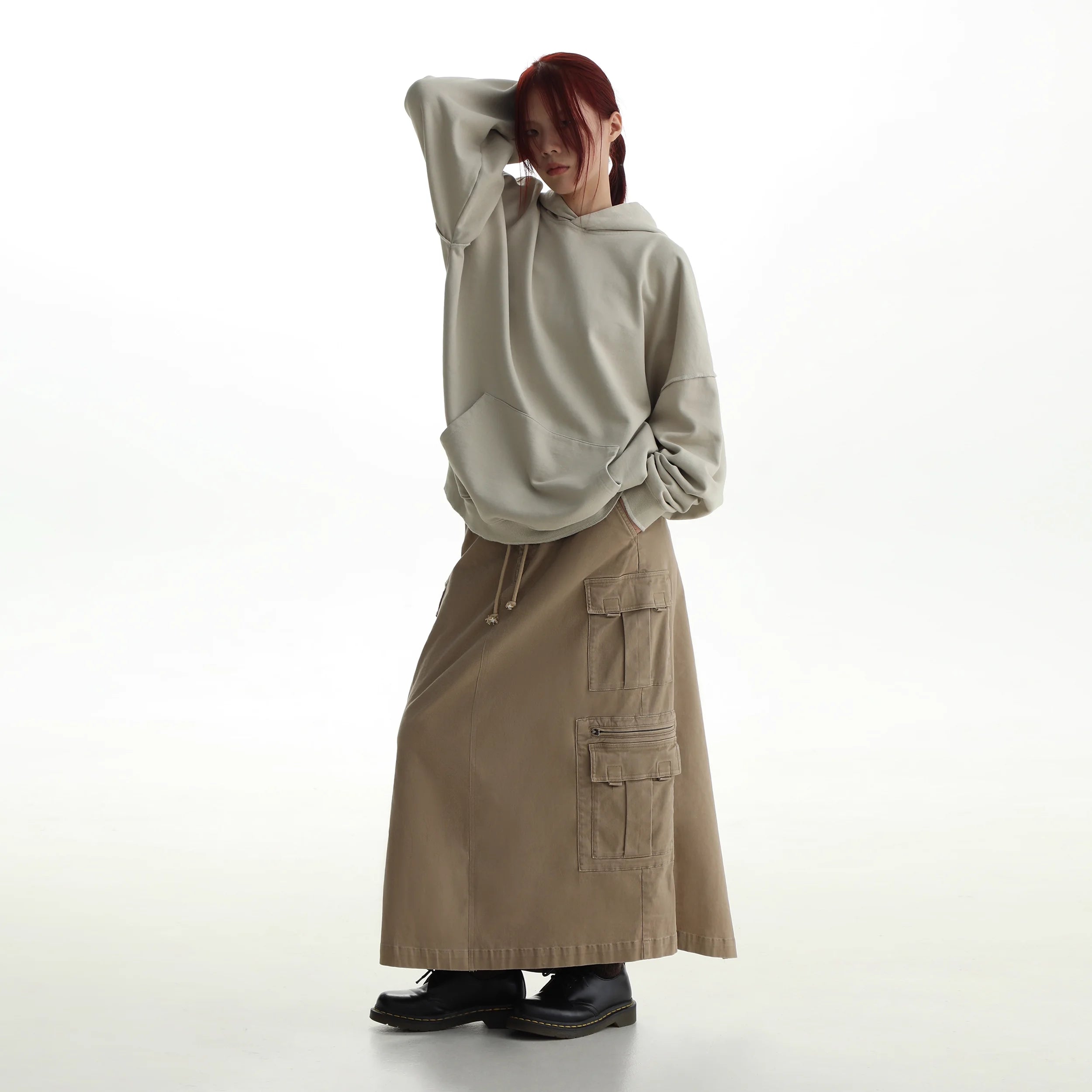 This women's cotton sweatshirt features a school uniform-inspired design with a subtle rubber patch detail. Designed for autumn wear, the light beige hoodie offers a relaxed fit, combining comfort and minimalistic streetwear elements. Its versatile style pairs effortlessly with high-waisted skirts or utility pants for a casual yet polished look.