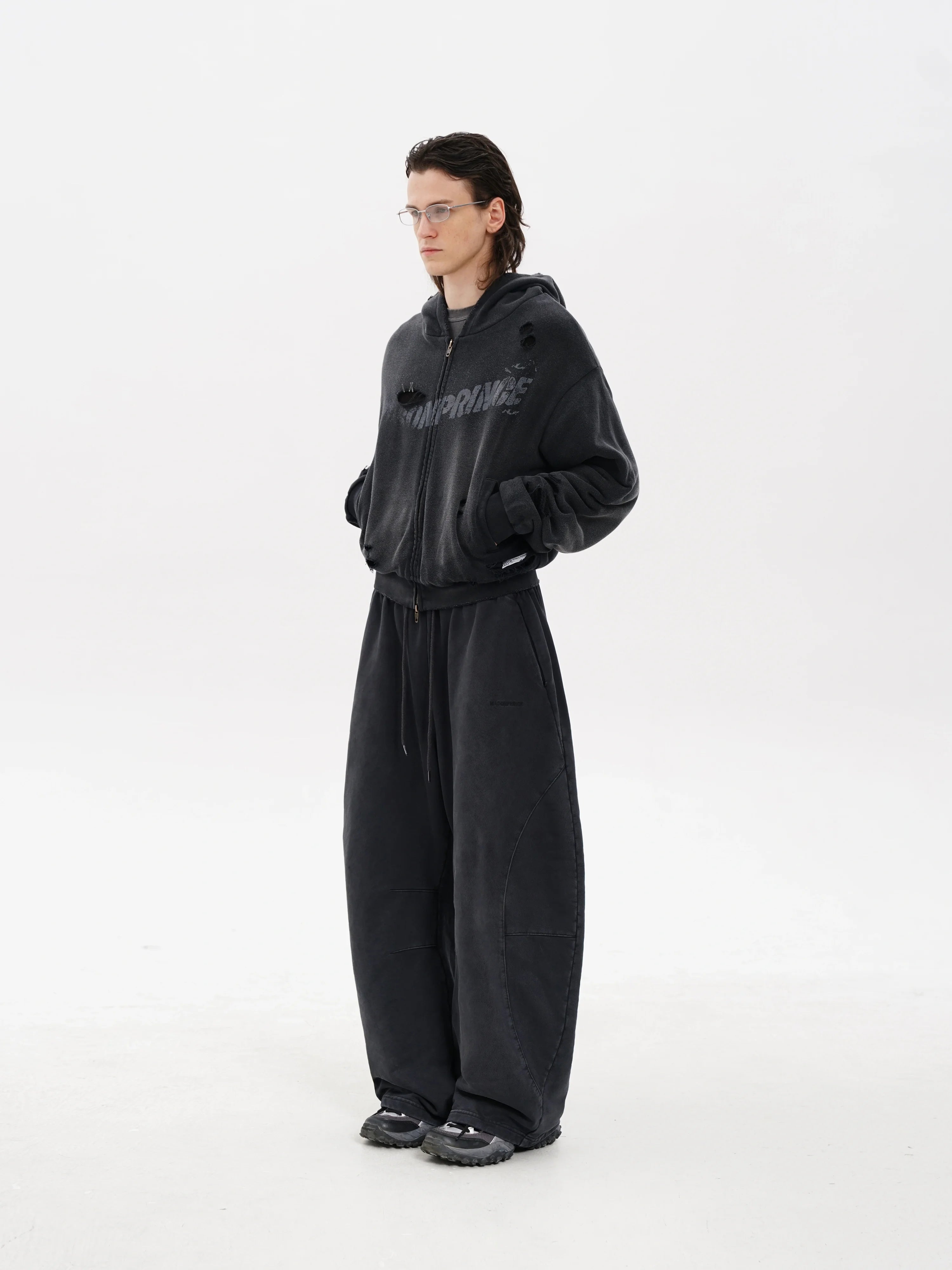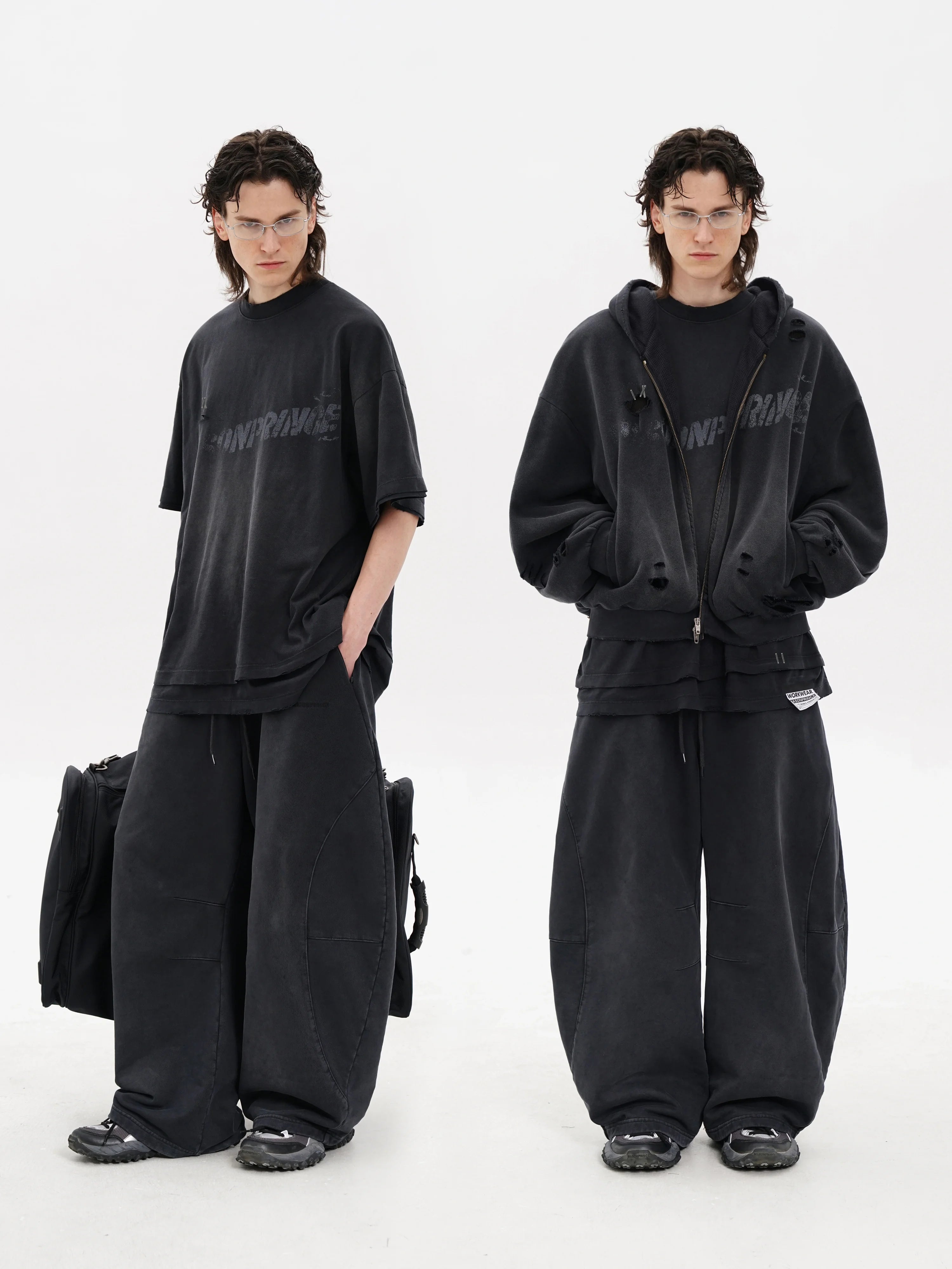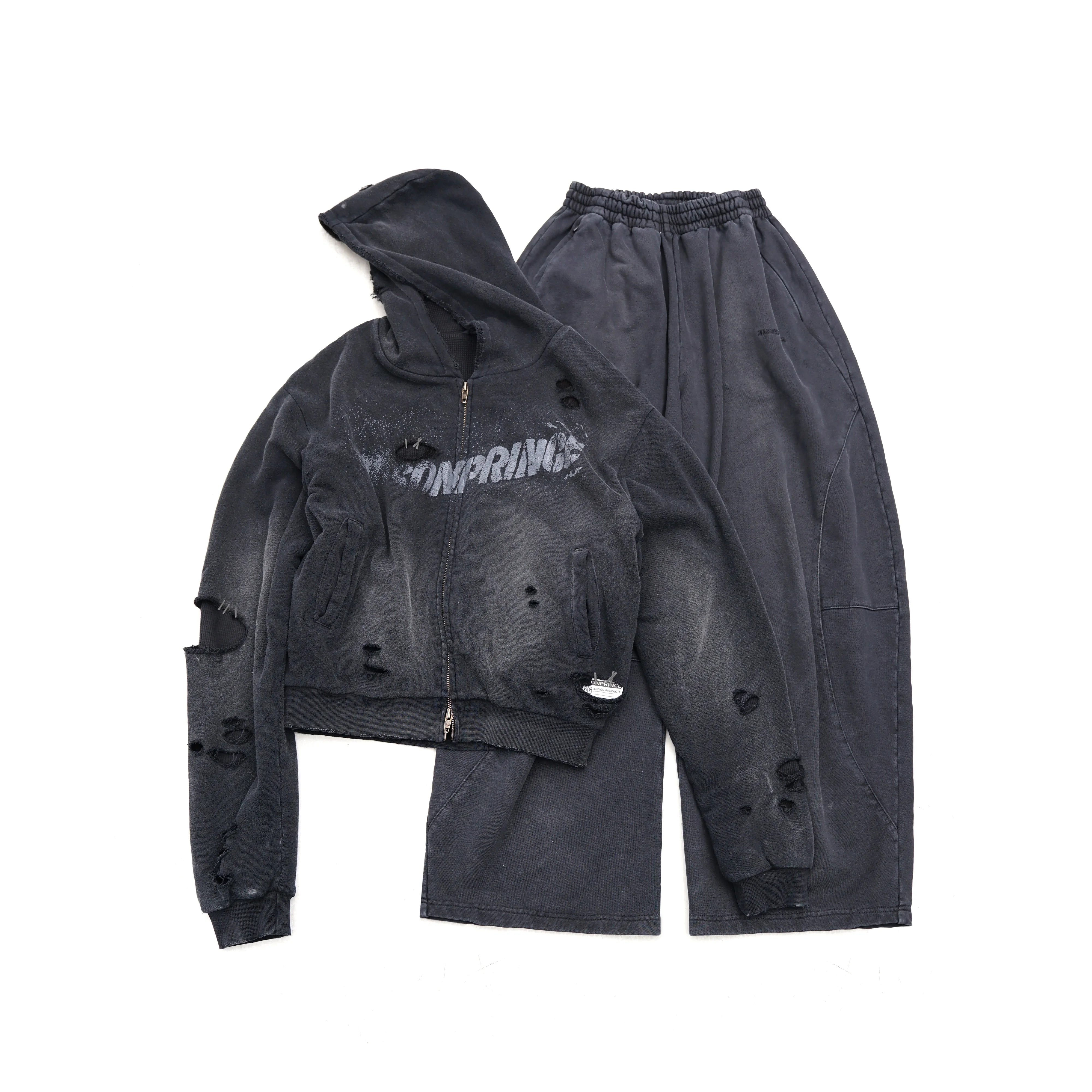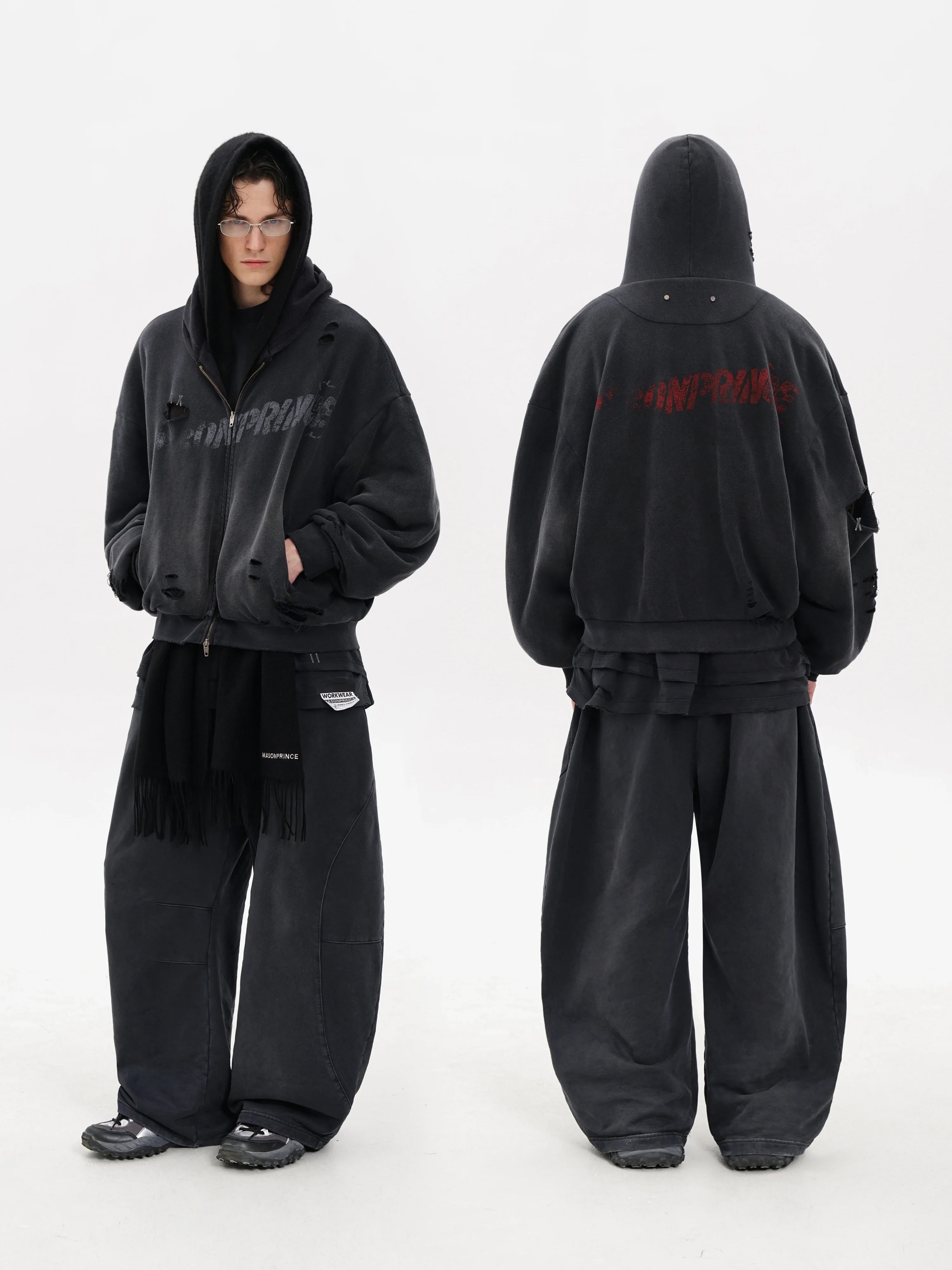 MASONPRINCE Double-Layer Distressed Zip Hoodie and Wide-Leg Pants Set