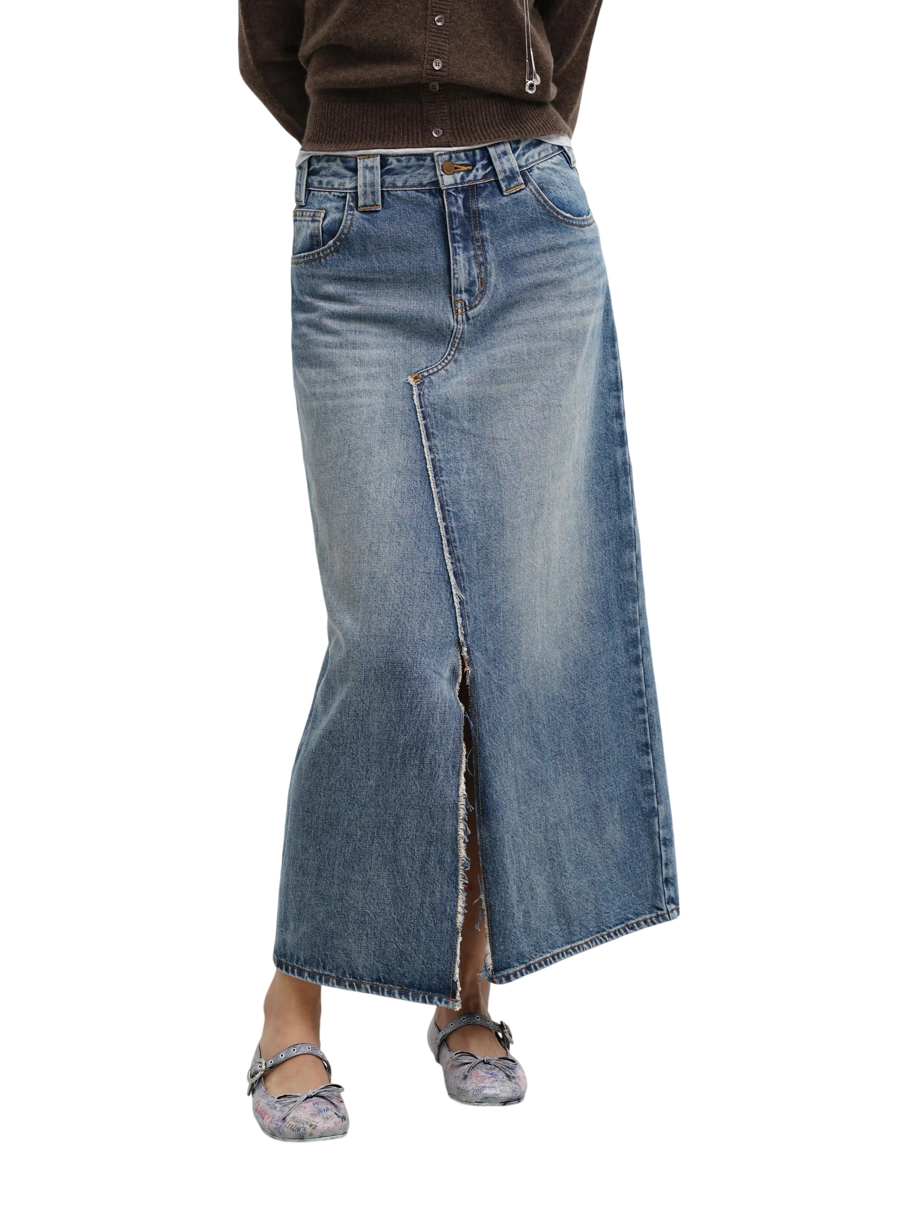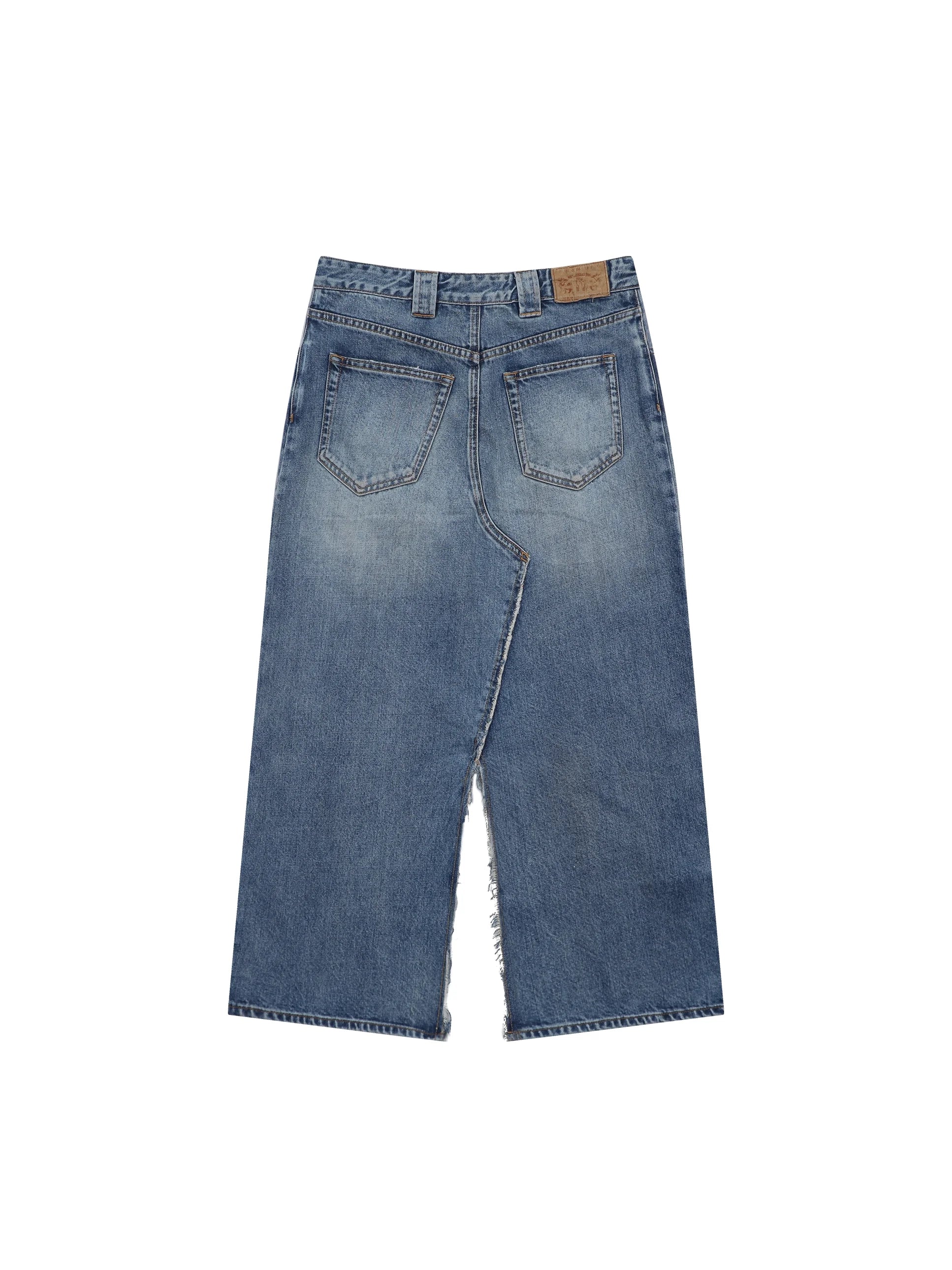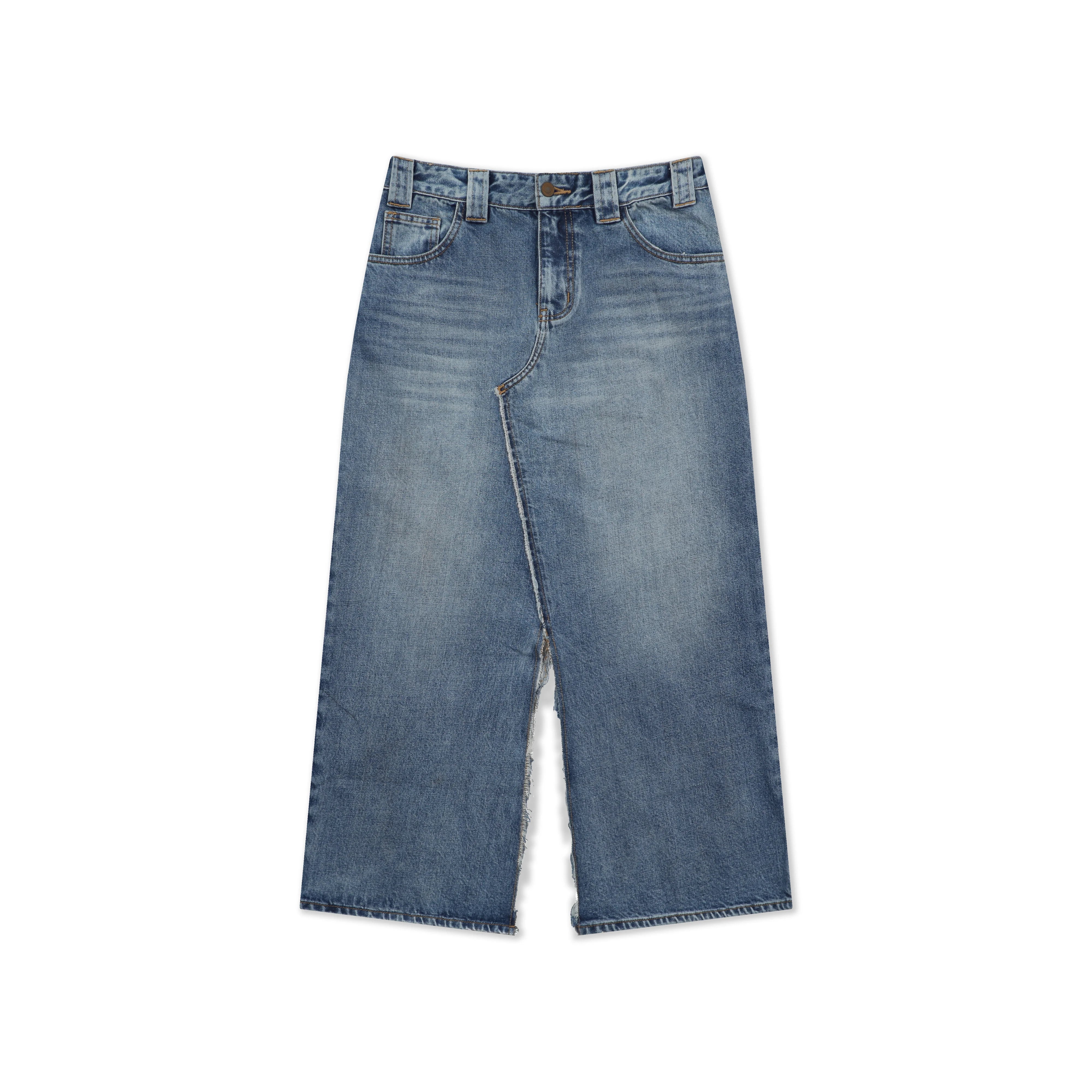 MASONPRINCE Faded Vintage Raw Hem Wide-Leg Denim Culottes