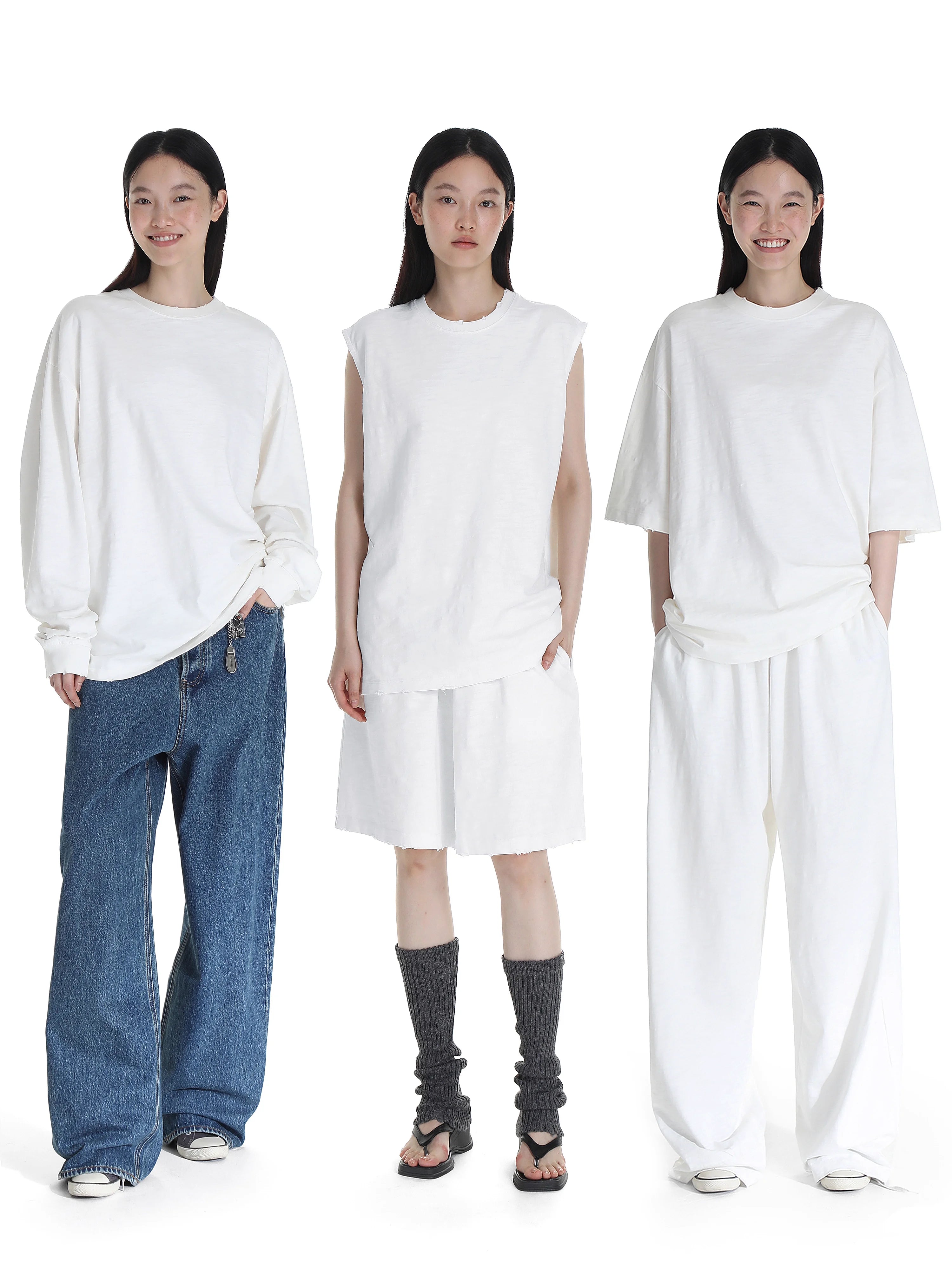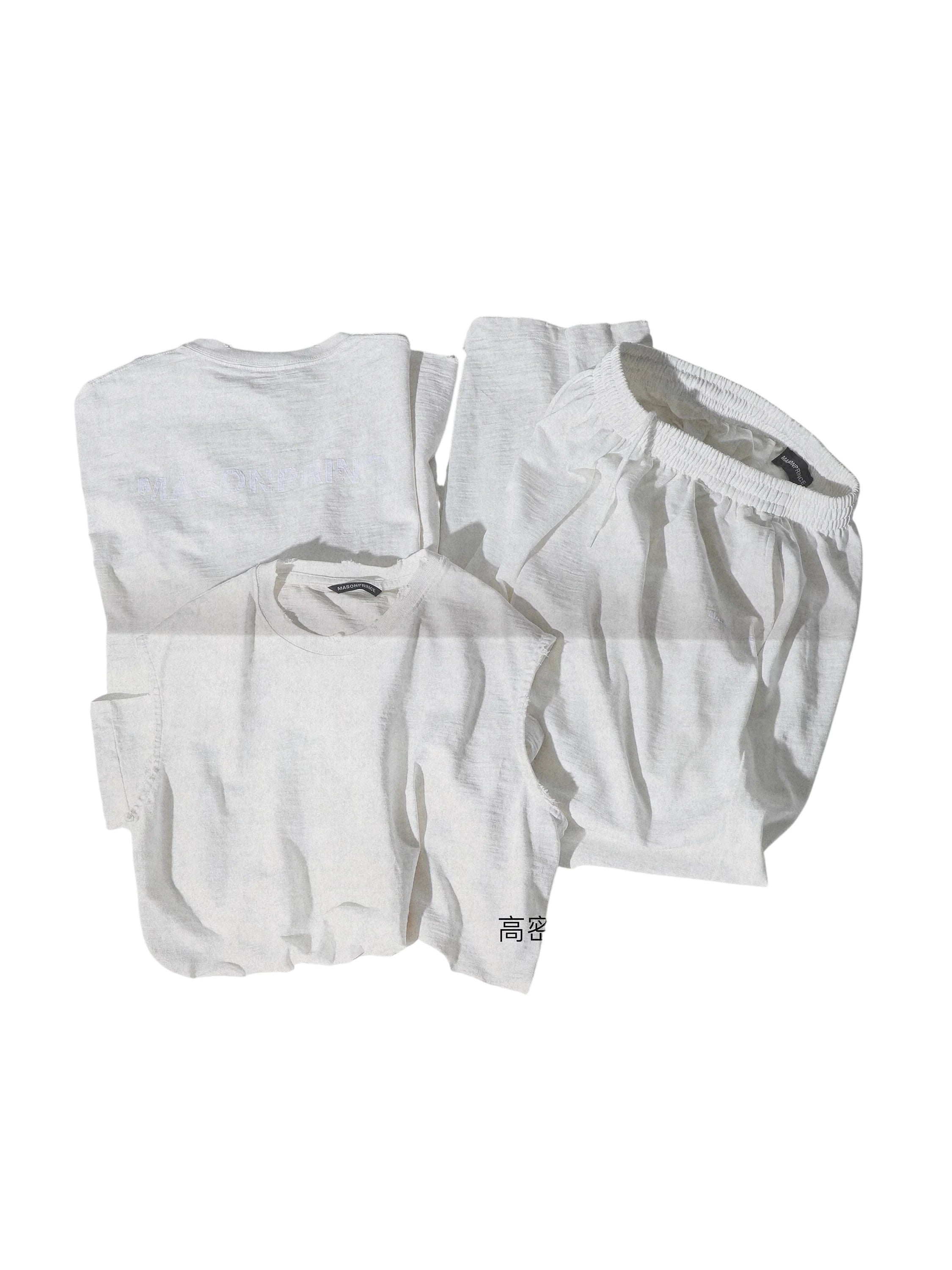 Experience ultimate comfort with this 5-piece family loungewear set crafted from high-density bamboo knit fabric. Featuring a minimalist design, the set includes short-sleeved tops and elastic waistband pants, suitable for all genders. Designed with skin-friendly slub cotton and a heavyweight feel, each piece offers breathable softness perfect for relaxing at home. Ideal for families seeking versatile, matching outfits.