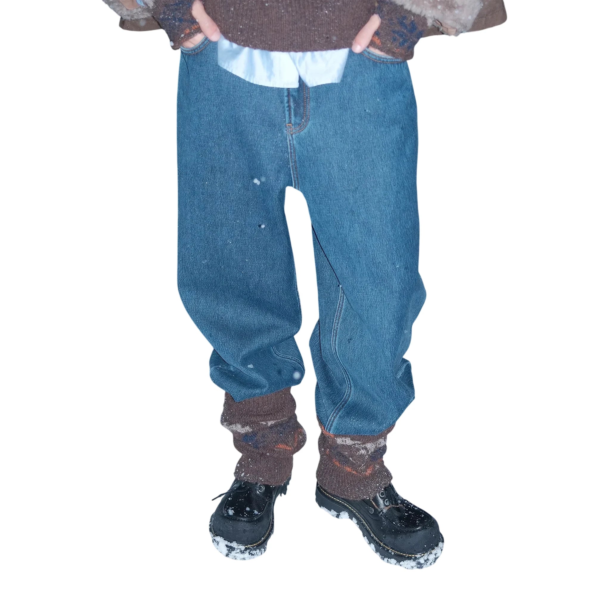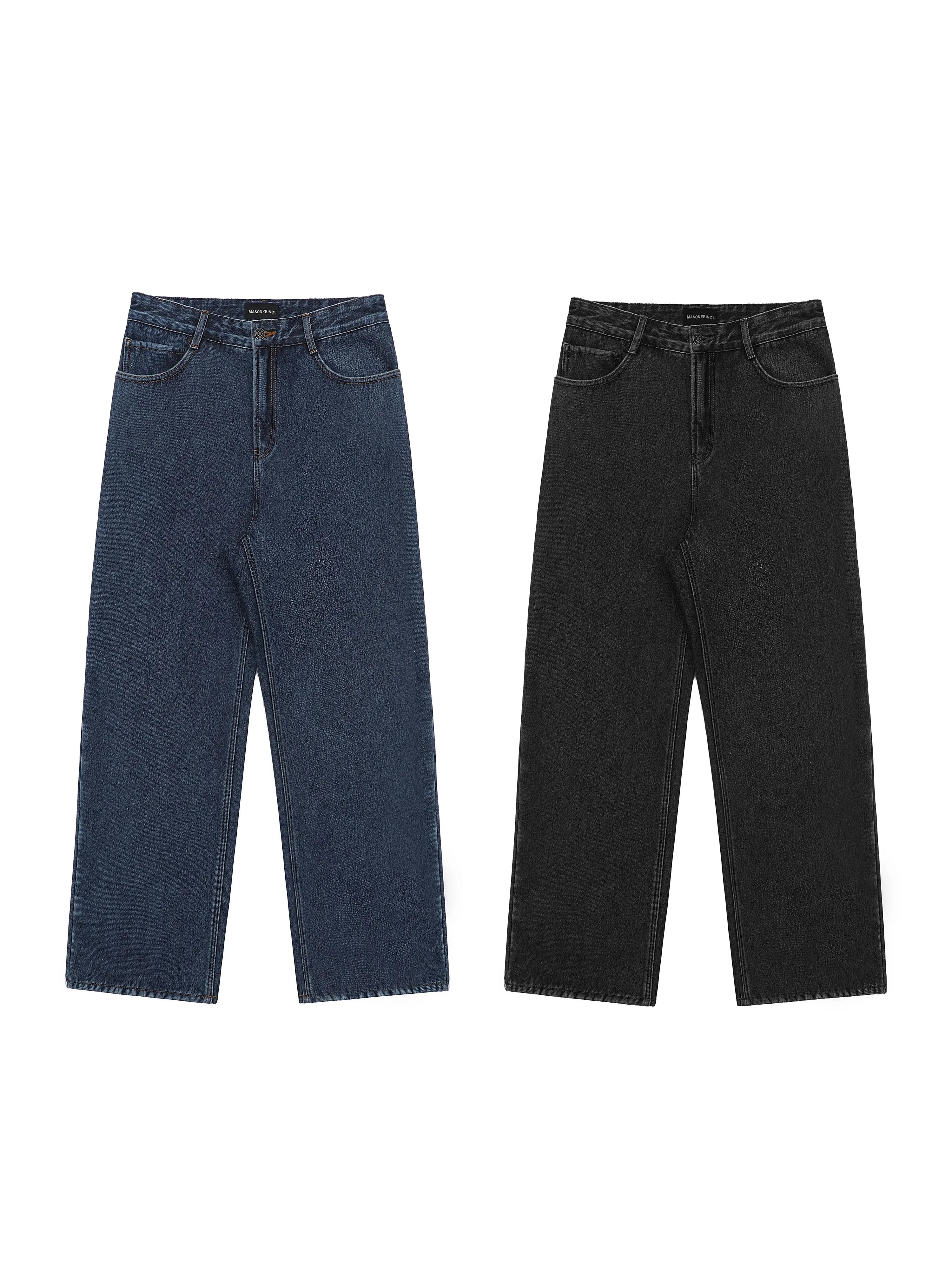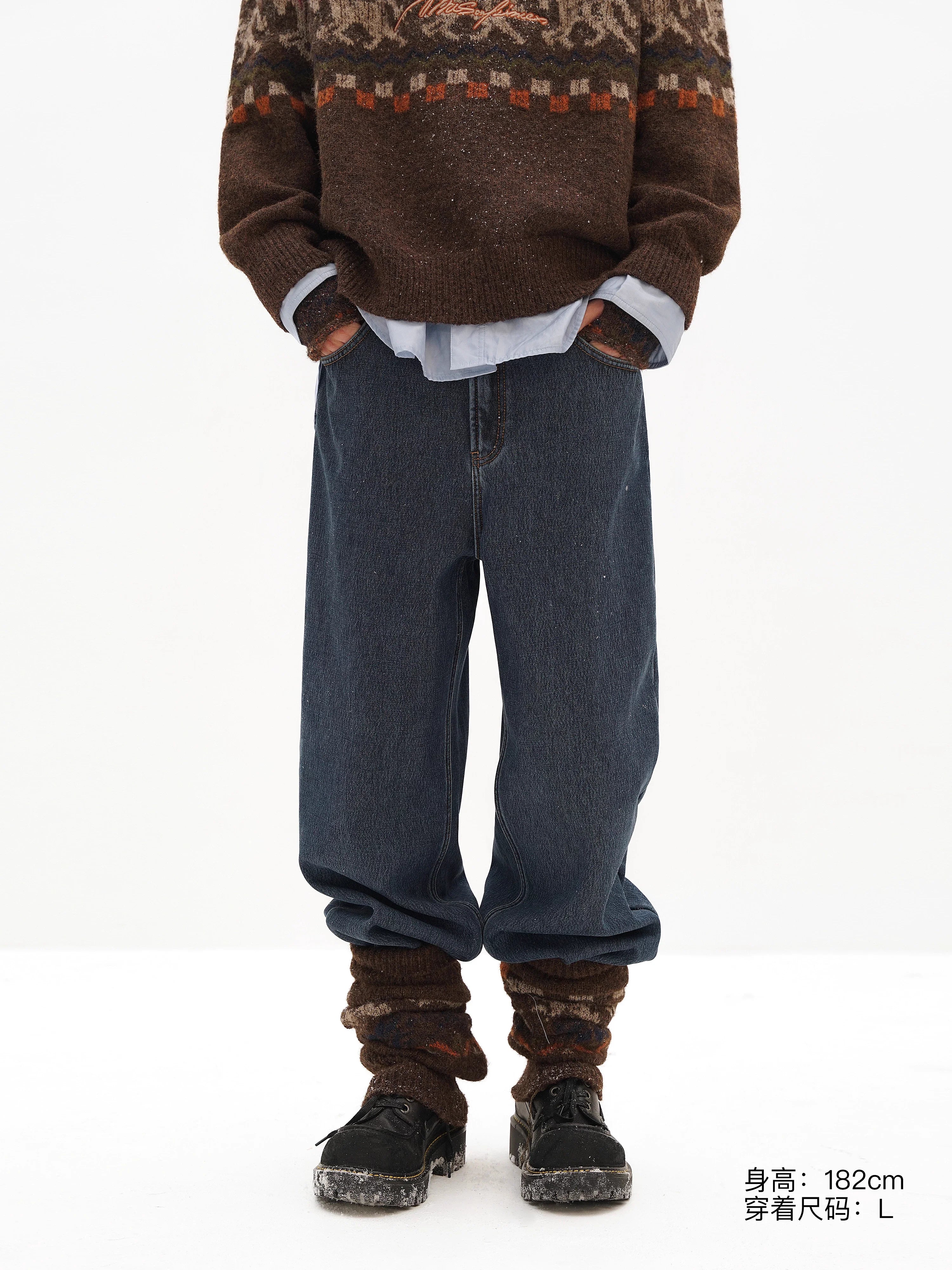 Stay warm in style with these high-waisted straight-leg jeans, crafted from a durable cotton blend and lined with soft fleece for added insulation. Designed for a casual, loose fit, these jeans feature classic five-pocket styling, belt loops, and visible seam details. Ideal for cold weather, they offer both comfort and an effortlessly relaxed look. Suitable for men.
