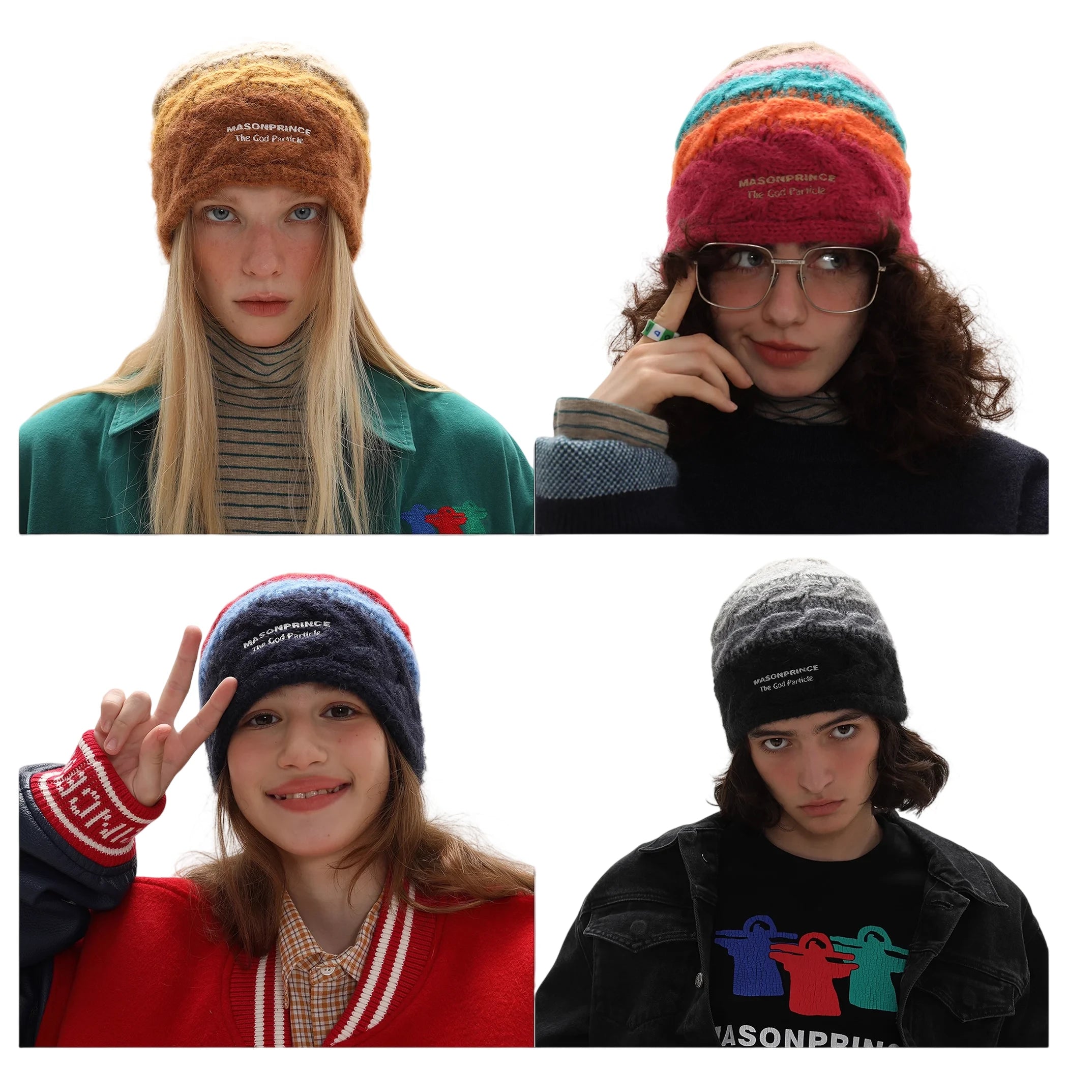 MASONPRINCE Gradient Striped Fuzzy Knit Beanie