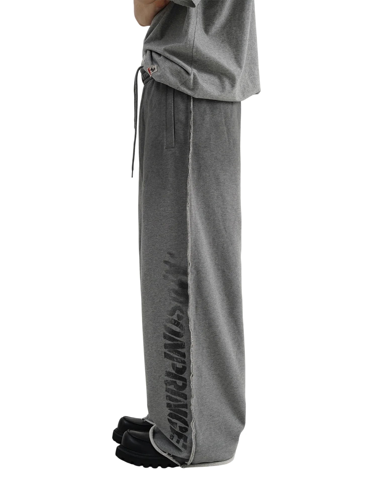 Finished with raw edges at the hems, the design emphasizes a relaxed, casual look that's ideal for both loungewear or urban street fashion. Suitable for women, these sweatpants combine comfort and edge for everyday wear.