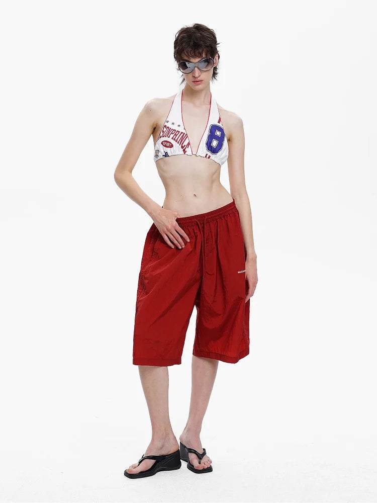 Stay comfortable and stylish with these lightweight, navy blue unisex shorts perfect for casual outdoor occasions and vacation wear. Designed with a relaxed, knee-length fit, these shorts feature an elastic waistband with a drawstring tie for a customizable fit. The upper thigh includes a bold printed detail, adding a modern touch to the minimalist design. Ideal for warm weather and easy to pair with your favorite tops and sandals.