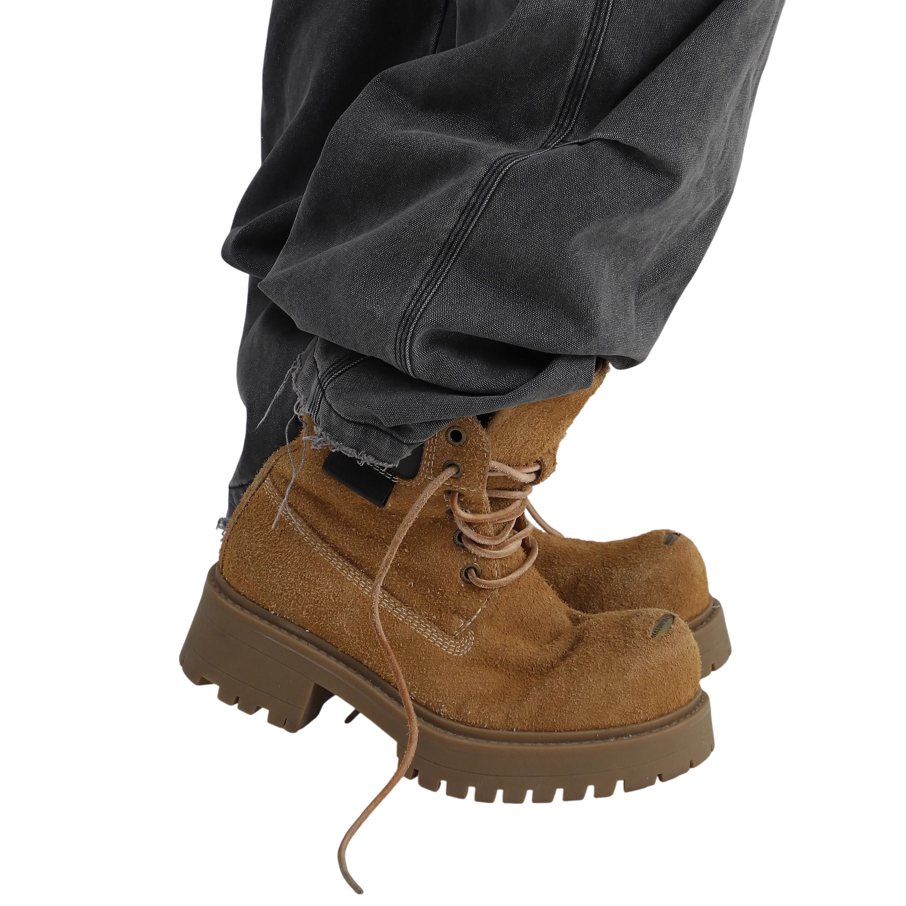 Step up your style and stature with these men's yellow suede boots, designed to discreetly increase your height by 7cm. Made from premium washed suede, they feature a rugged lace-up design with reinforced toes and metal eyelets for a durable and stylish finish. The thick, textured rubber soles offer reliable traction, making them ideal for outdoor activities and workwear. Contemporary and masculine, these boots pair effortlessly with casual denim or utility-inspired outfits.