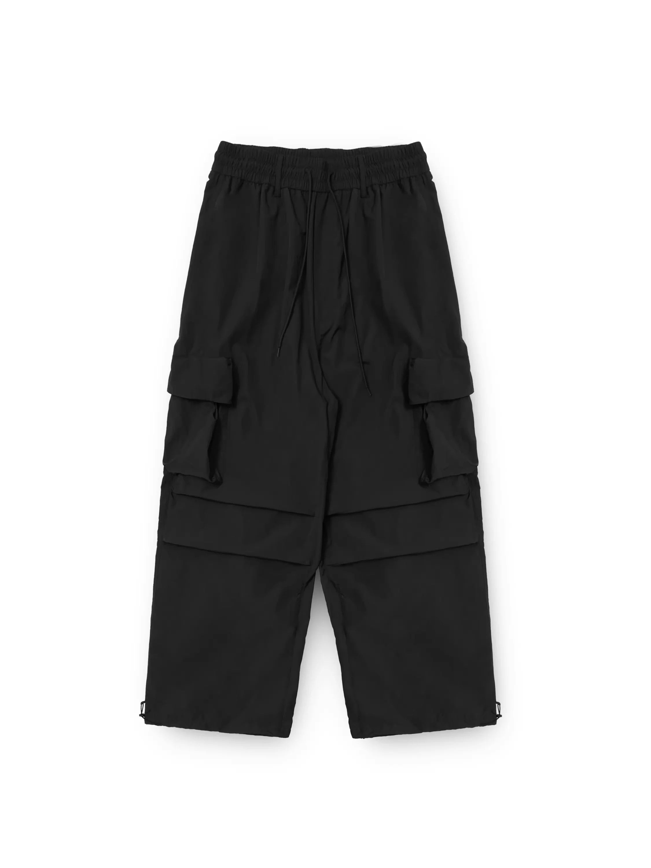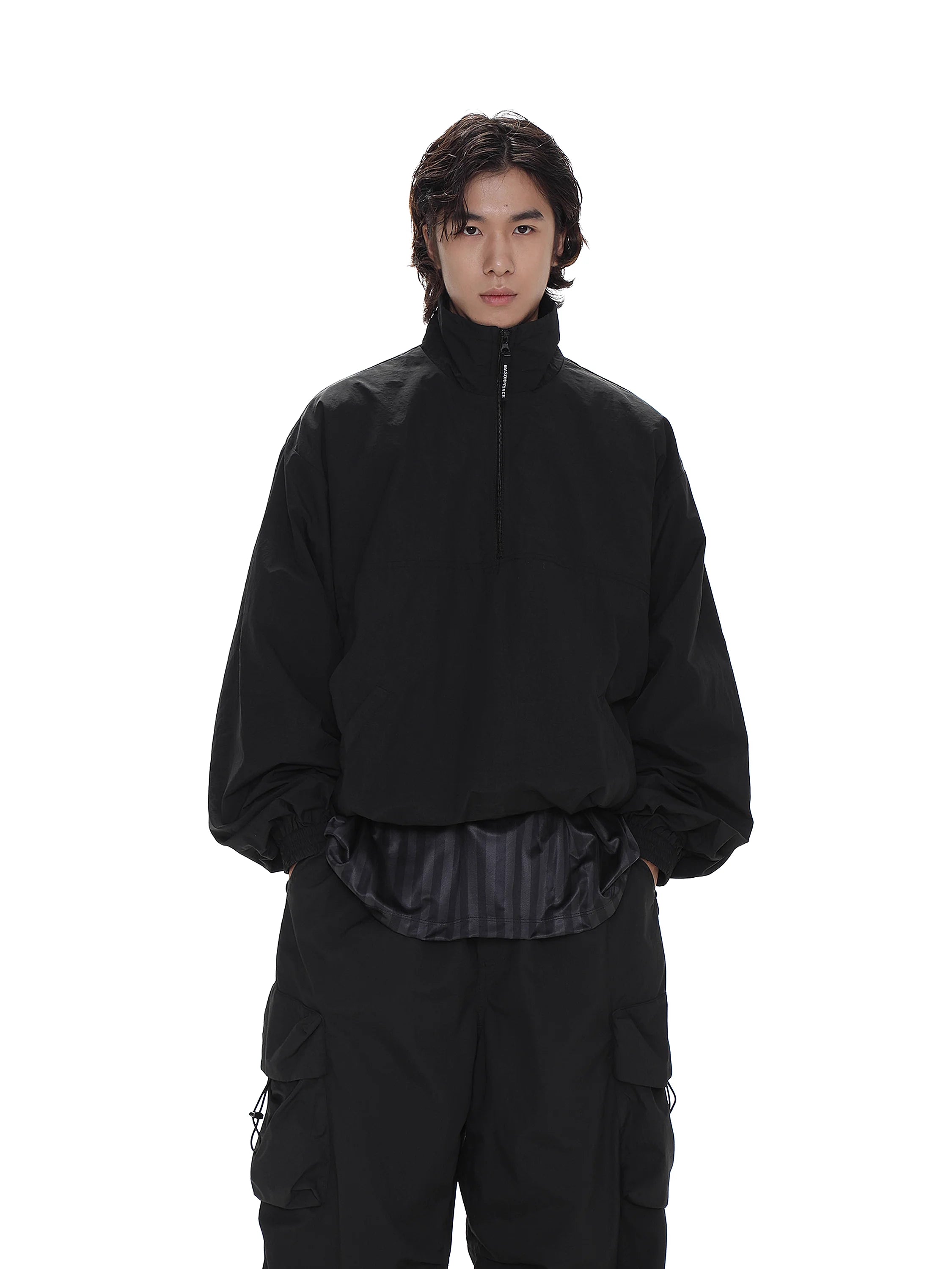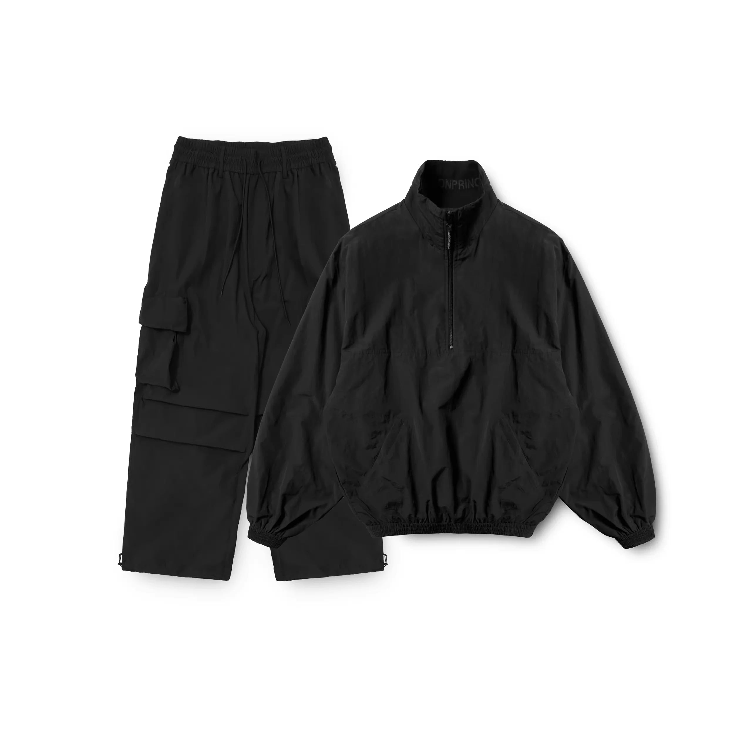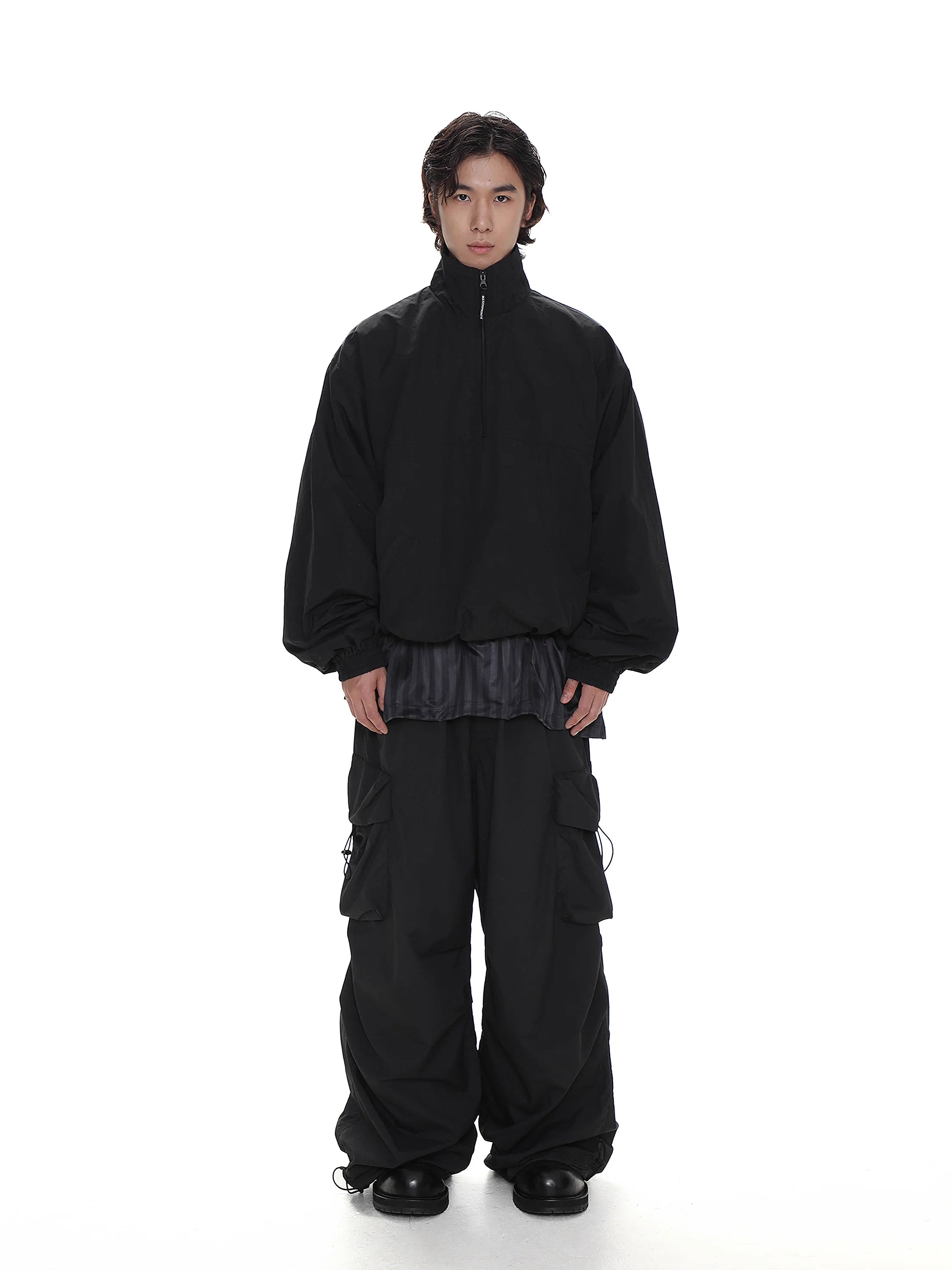 MASONPRINCE Men's Black Nylon Stand Collar Pullover Jacket and Cargo Pants Set