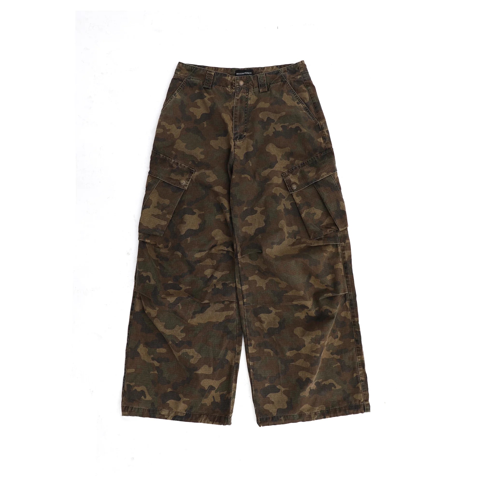 MASONPRINCE Men's Camouflage Distressed Cargo Parachute Pants