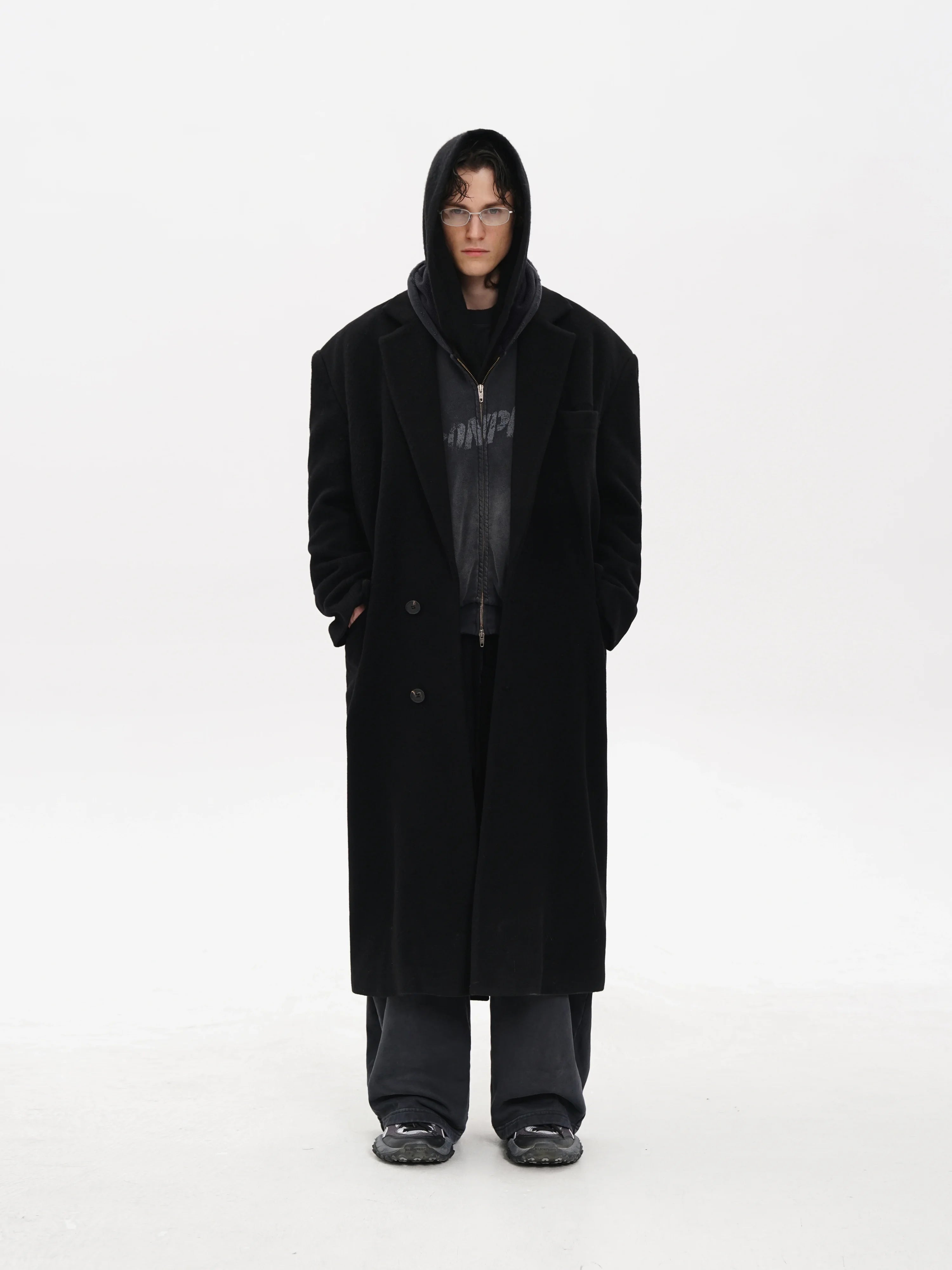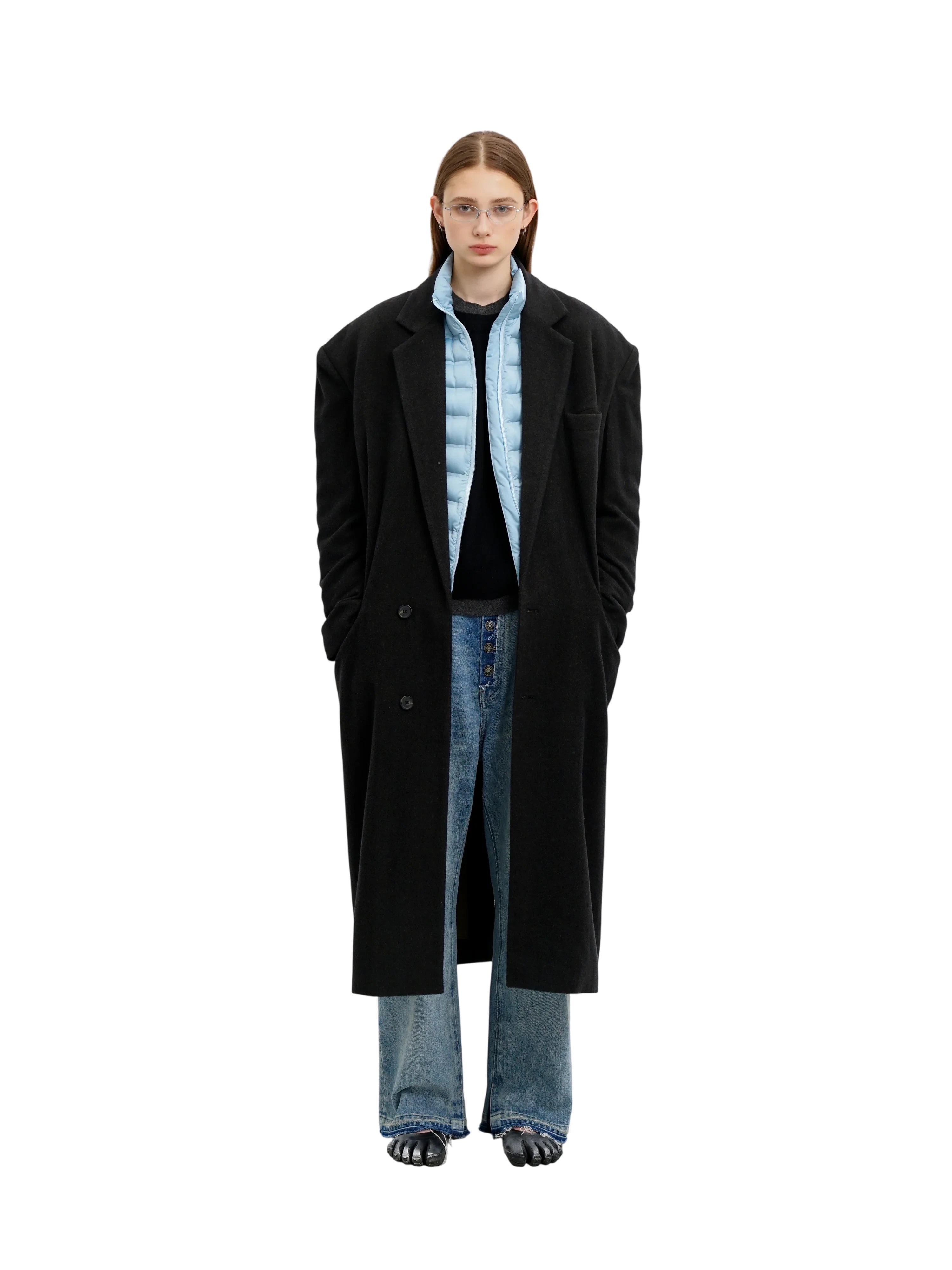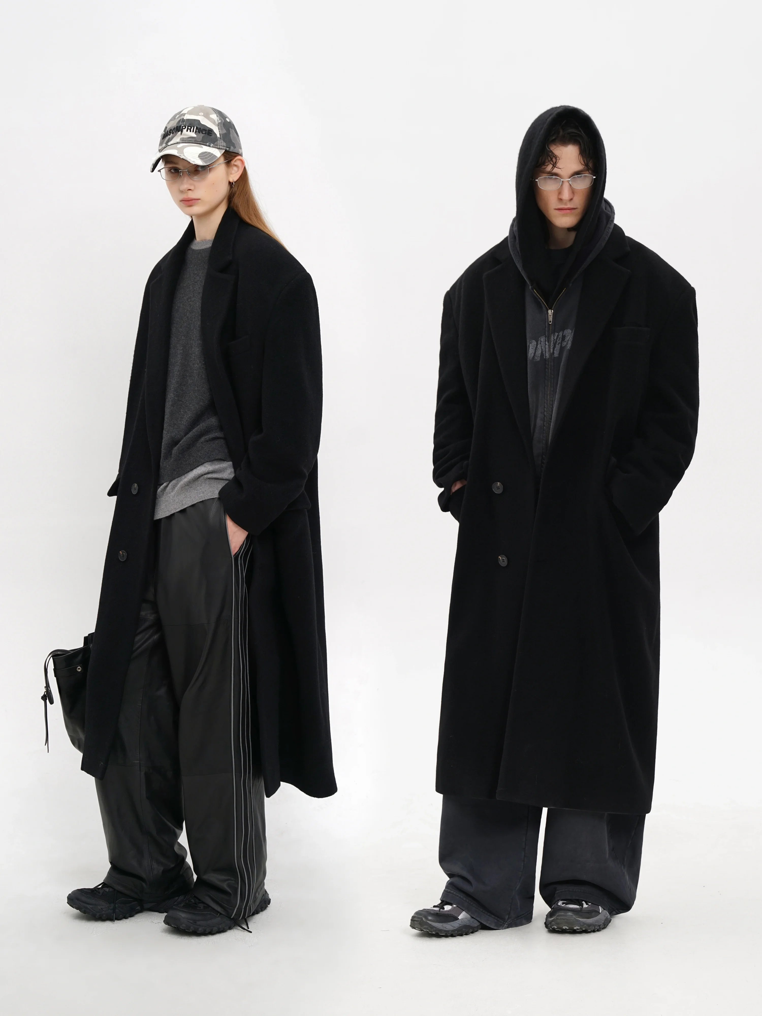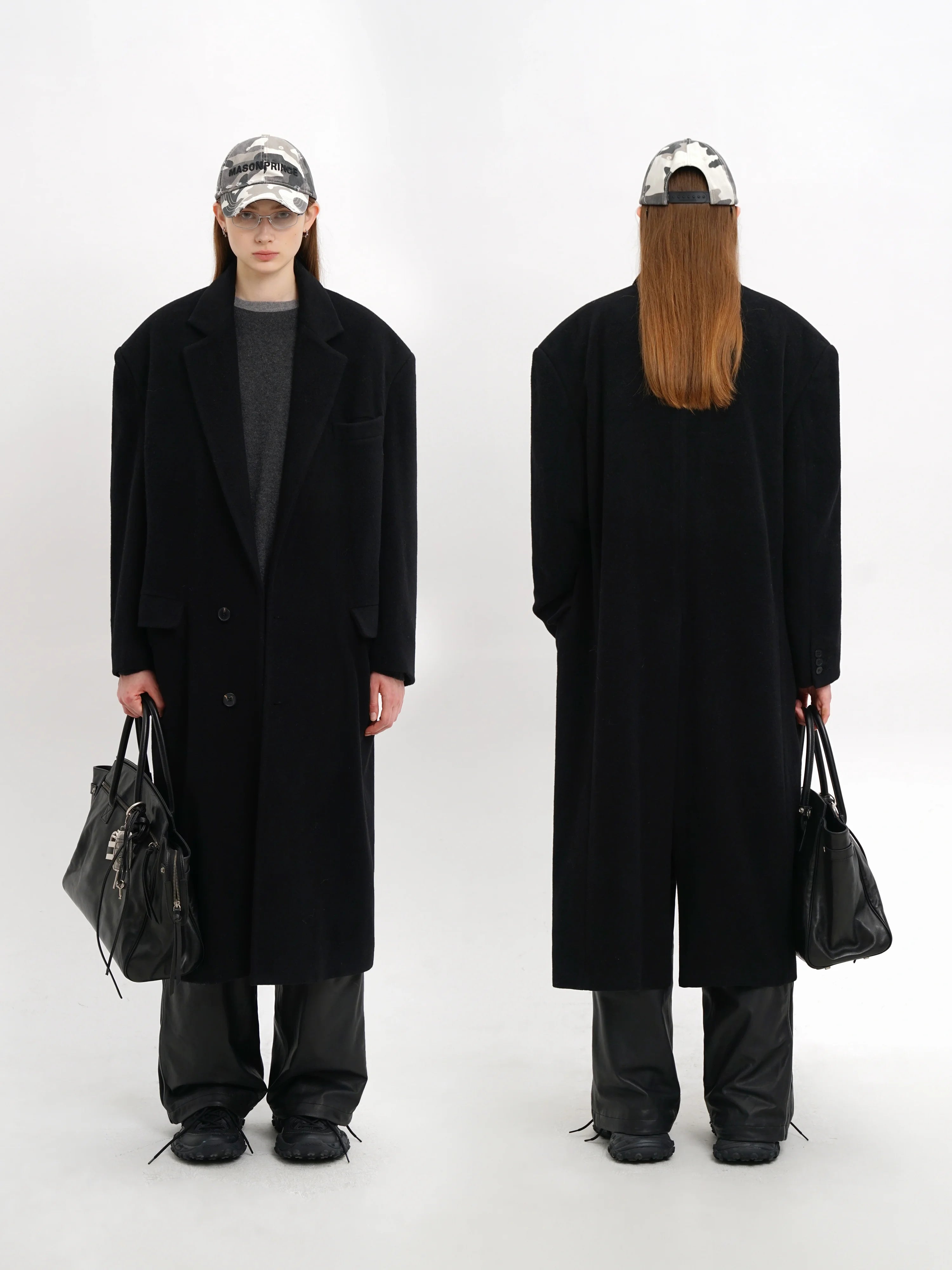 MASONPRINCE Men's Classic Black Wool-Blend Overcoat