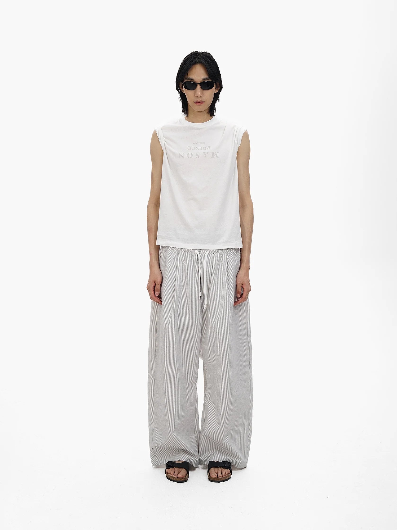 Experience all-day comfort and relaxed style with this new arrival in men's homewear. Crafted from lightweight, breathable fabric with subtle pinstripe detailing, this bottom wear set includes two variations: knee-length shorts and full-length wide-leg pants. Both styles feature an elastic waistband with a contrasting branded band and an adjustable drawstring for a secure and personalized fit. Ideal for lounging or casual outings, these pieces combine functionality with effortless style.