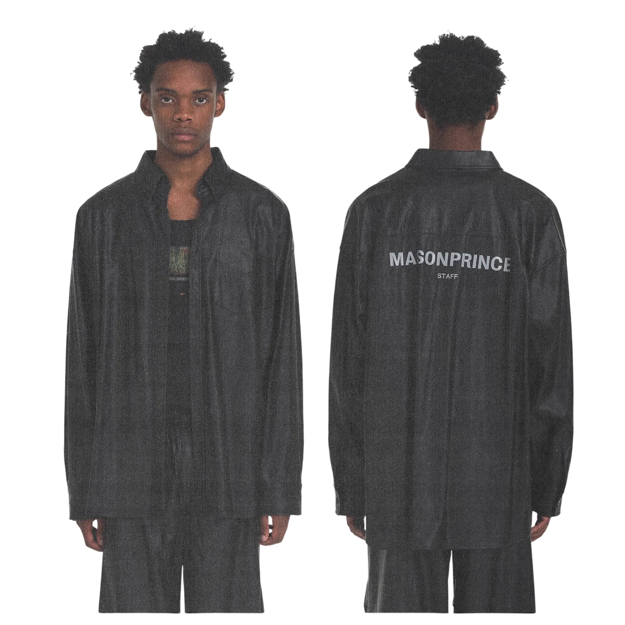 MASONPRINCE Men's Faux Leather Oversized Shirt Jacket with Pocket