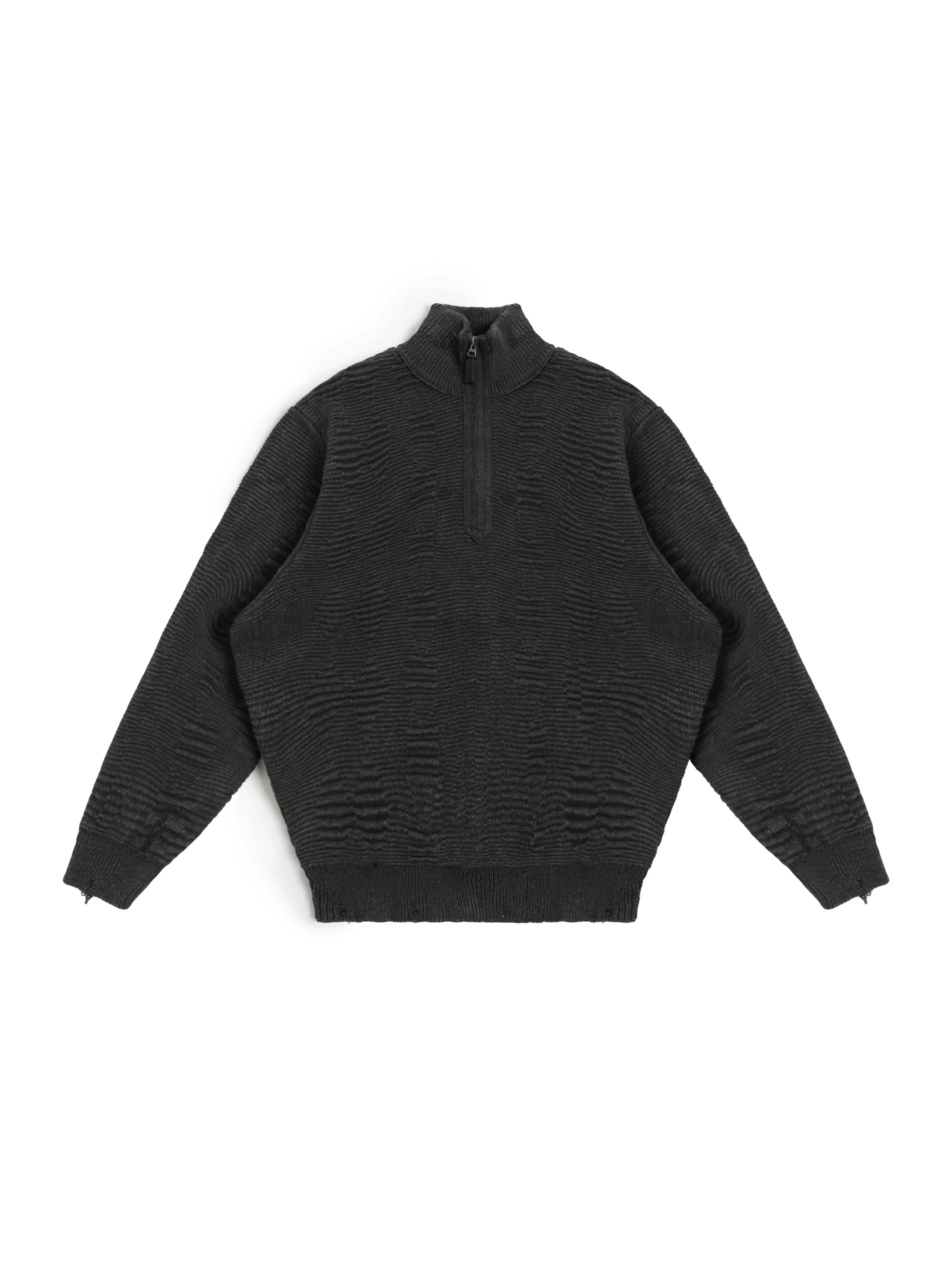 Stay warm and stylish with this men's geometric embossed half-zip sweater. Featuring a chunky knit texture with a distressed, modern pattern, this sweater is ideal for cold weather layering. The half-zip neckline adds versatility, allowing for easy wear over shirts or tees. Perfect for adding a cozy yet refined touch to your winter wardrobe.