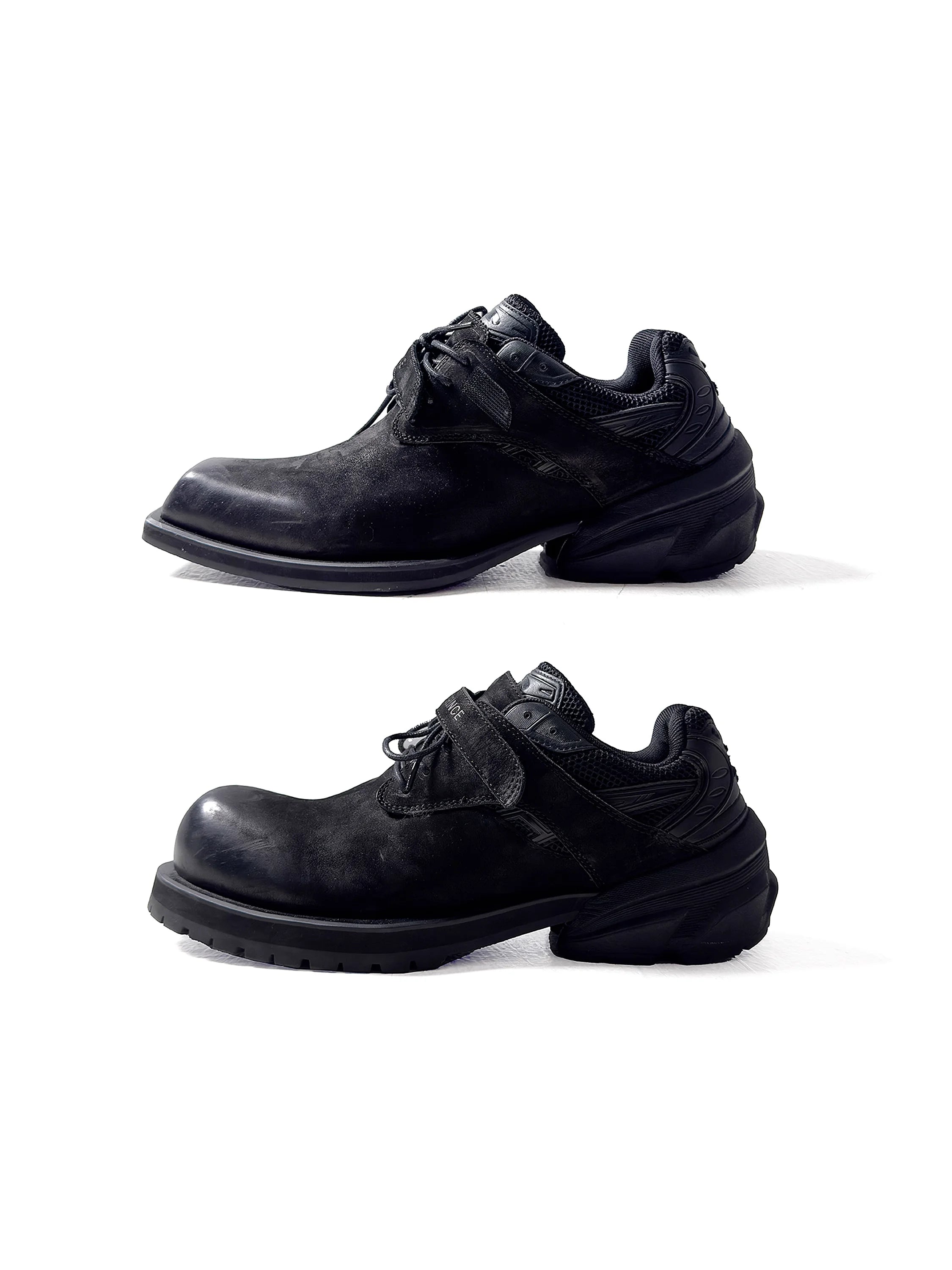 Engineered for comfort and durability, these men's lace-up sport utility shoes feature a low-top design with a combination of suede and mesh-like materials. Reinforced rounded toes enhance protection, while thick rugged soles provide reliable grip and lasting wear. The shoes include traditional lacing along with a hook-and-loop strap for additional support and fit stability. A padded heel collar and textured ankle support ensure all-day comfort, making them ideal for work or light outdoor use.