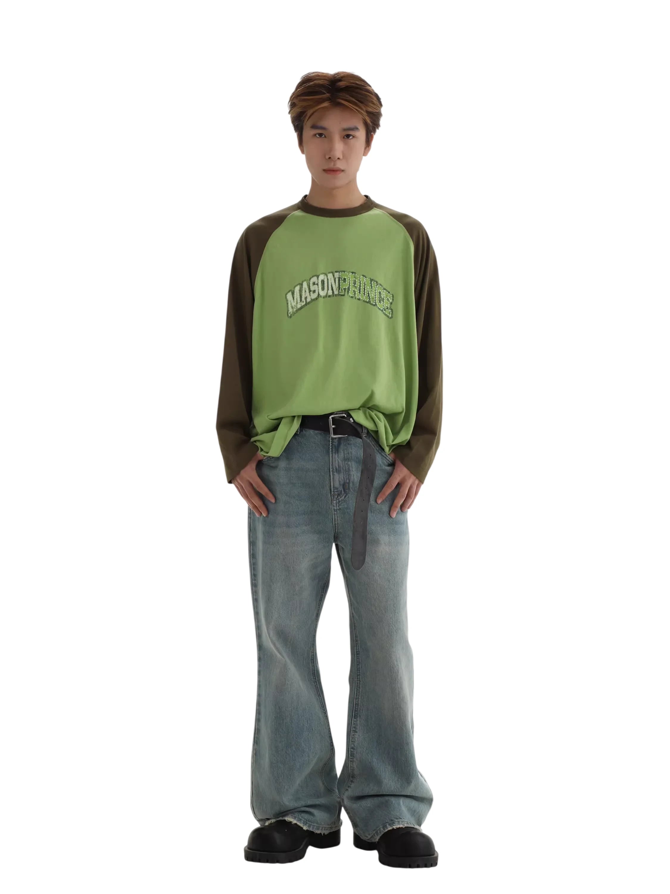 MASONPRINCE Men's Lightweight Long Sleeve Raglan T-Shirt - Loose Fit, Vintage Style