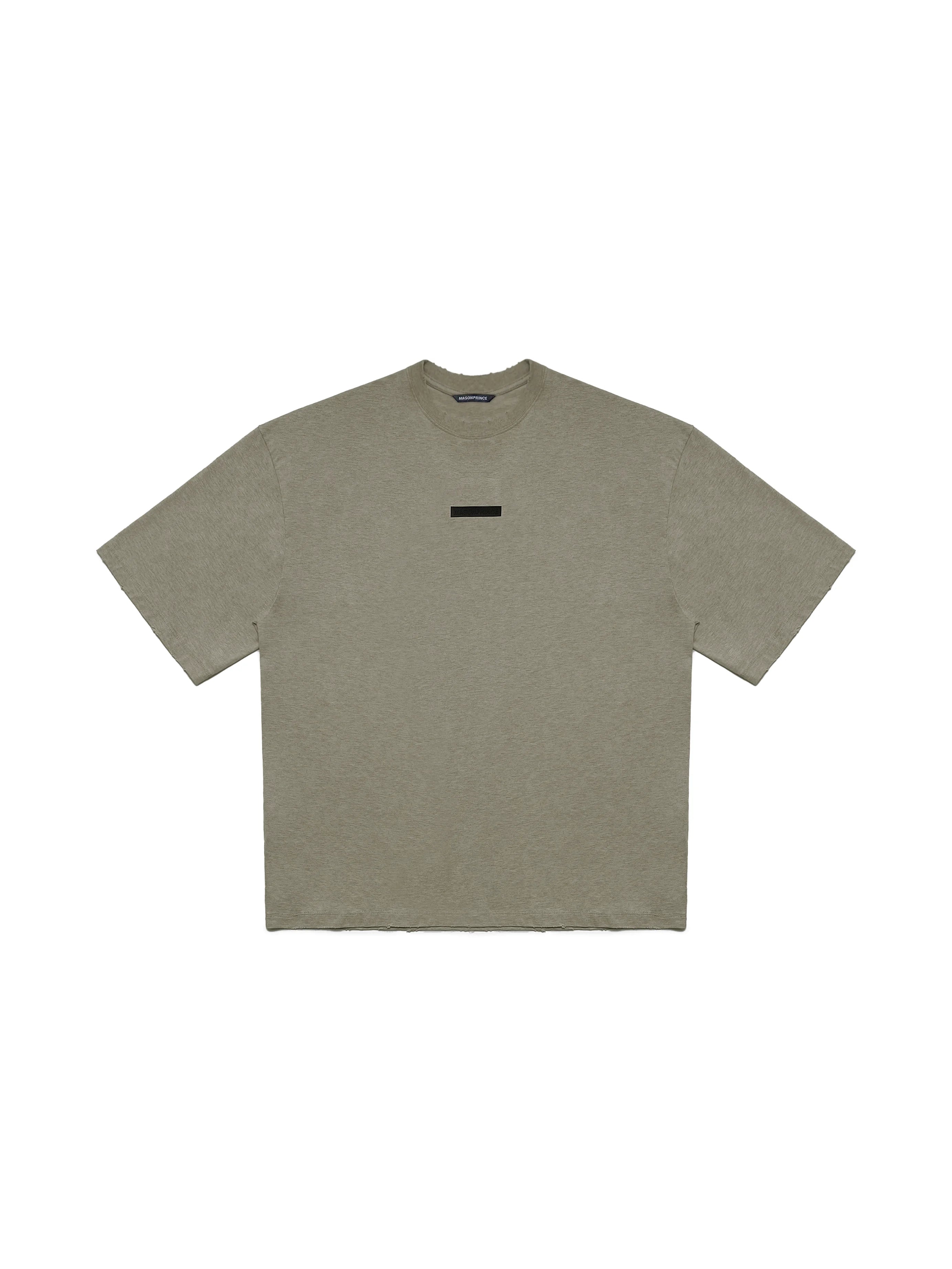 Stay cool and stylish with this men's oversized short sleeve T-shirt, perfect for summer. Made from breathable fabric, it features a relaxed fit with dropped shoulders and a soft olive-green hue. A subtle silicone nameplate adds a modern touch to the chest area, offering minimalist detail for casual looks.