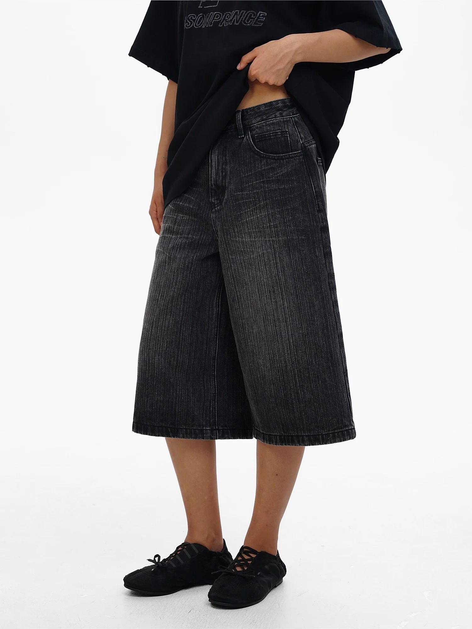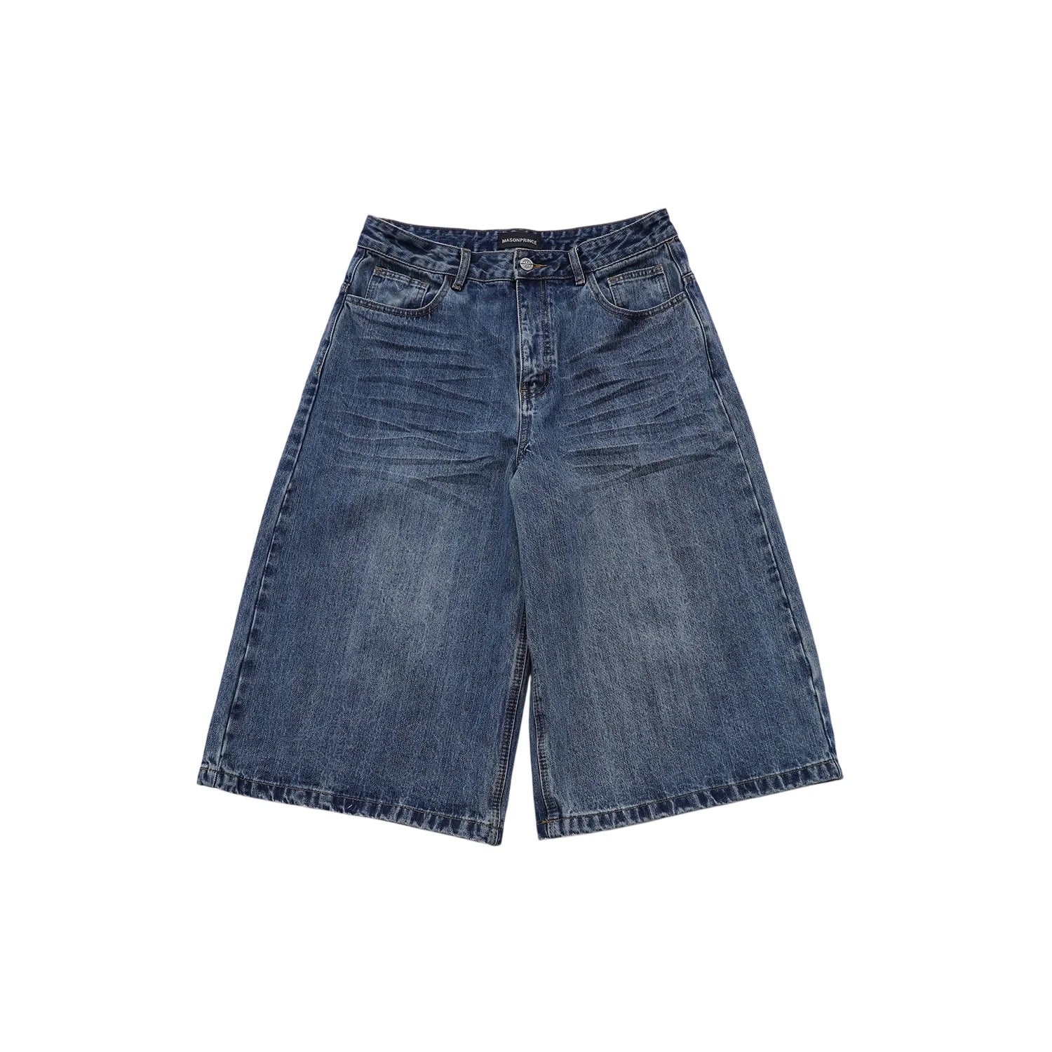 MASONPRINCE Men's Retro Faded Wide-Leg Denim Shorts