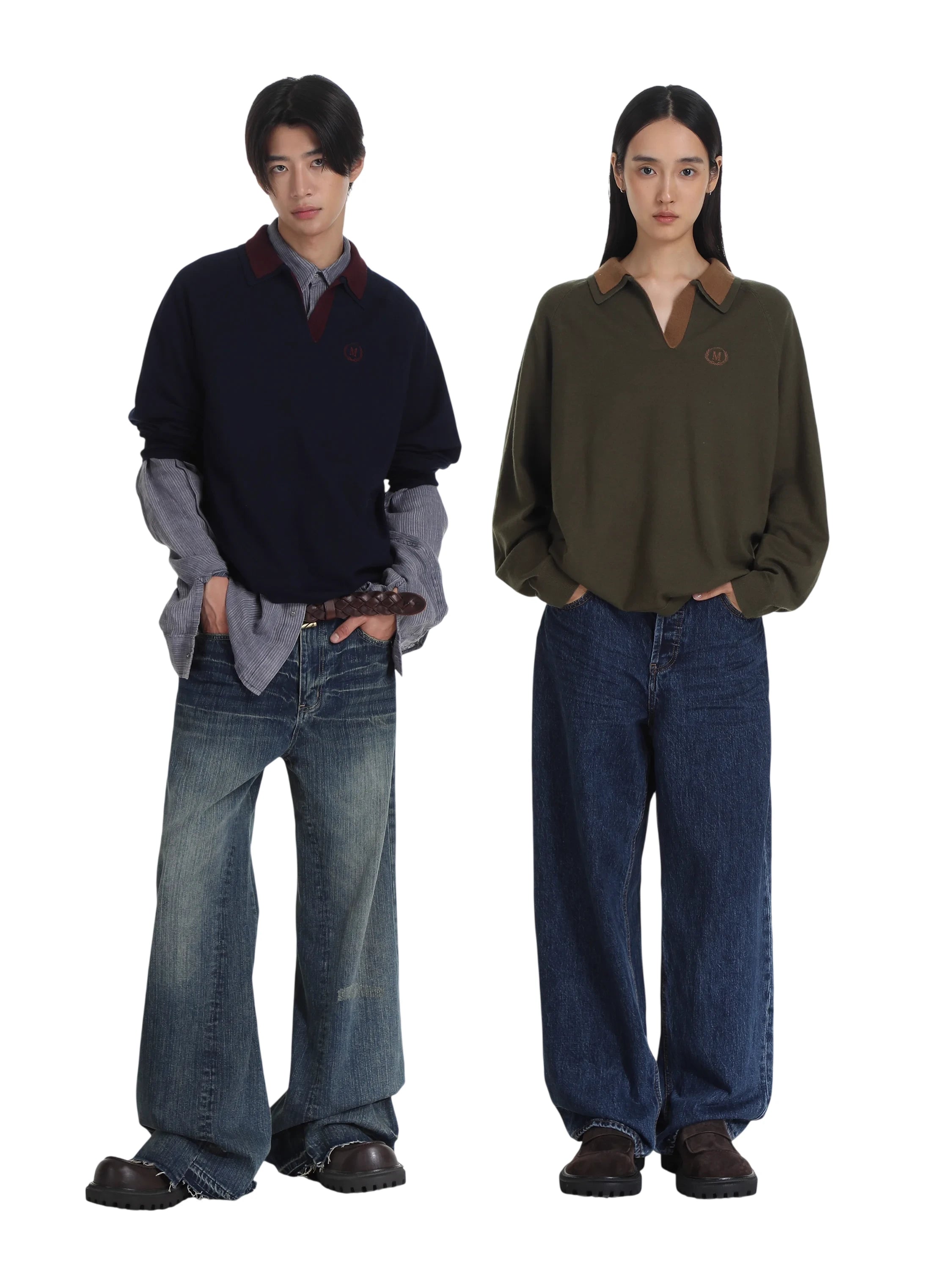 Elevate your wardrobe with this ultra-soft men's retro knit polo sweater, featuring a timeless long-sleeve design. Each sweater showcases a rich color pairing, with contrasting classic collars for a vintage-inspired look. Available in multiple color combinations, these sweaters include ribbed cuffs and a subtle embroidered 'M' logo on the chest for added detail. Stylish and versatile, it's a refined essential for cooler seasons.