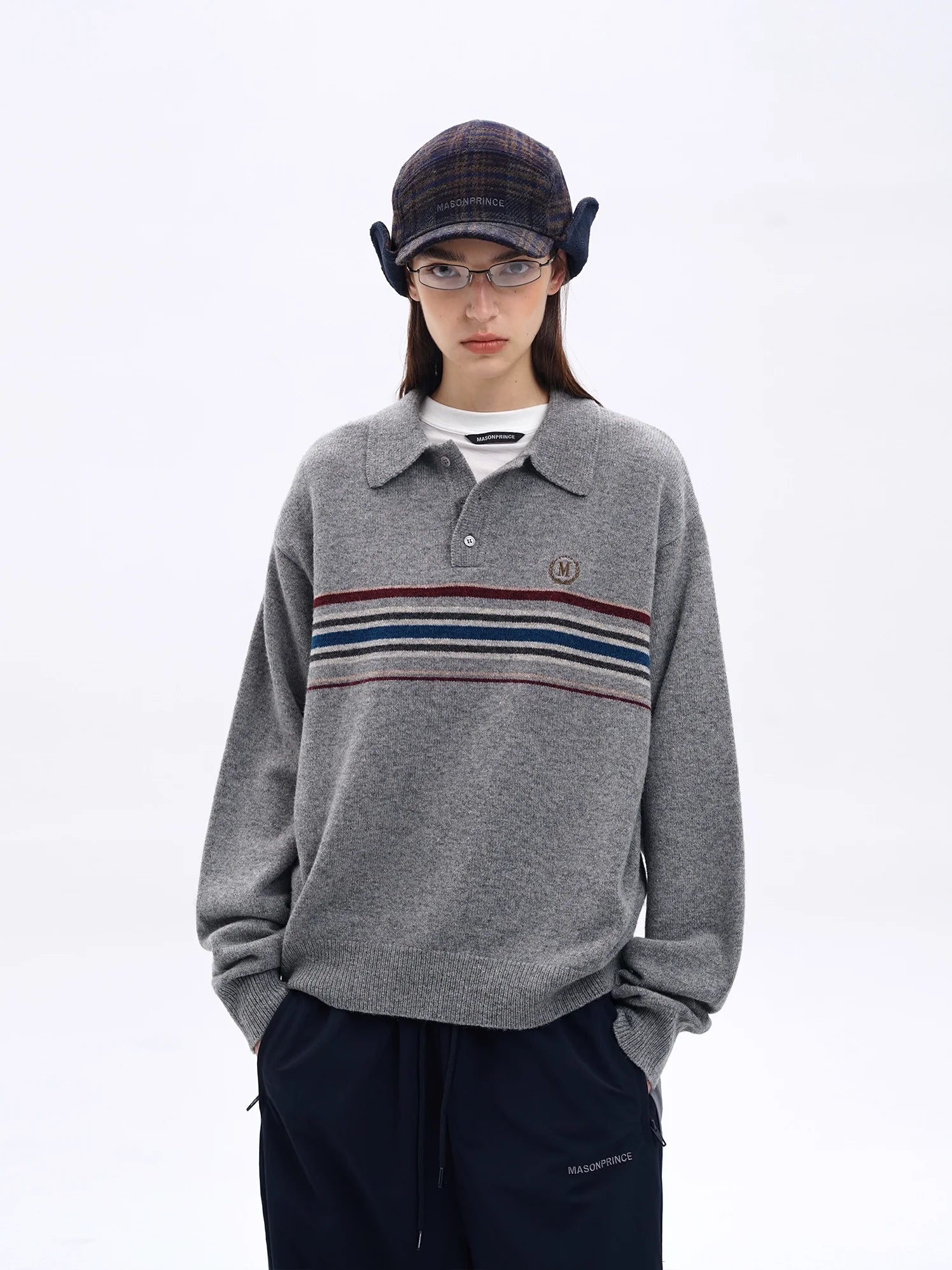 MASONPRINCE Men's Retro Striped Henley Wool Sweater