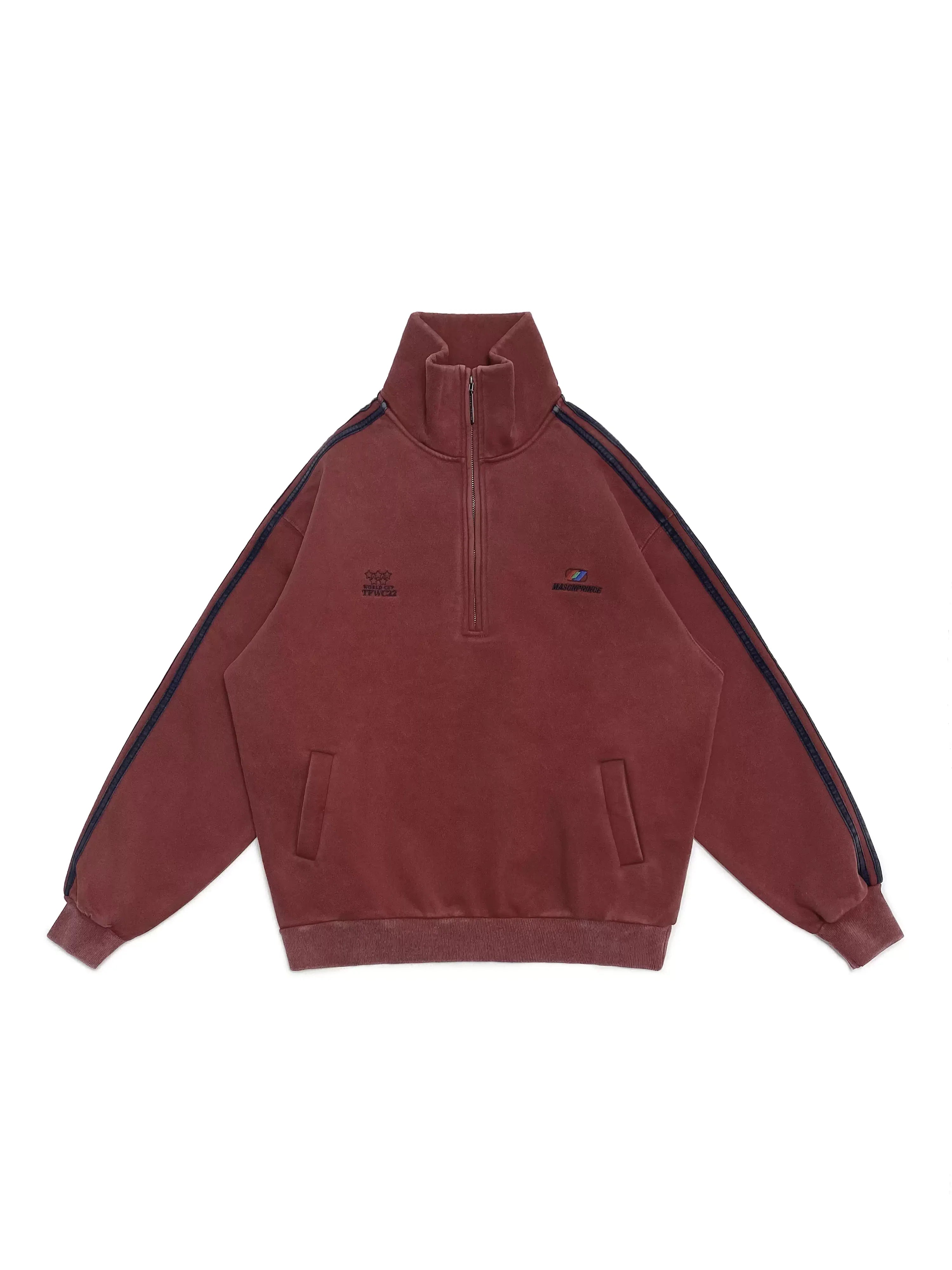 MASONPRINCE Men's Stand Collar Pullover Sweatshirt with Stripe Sleeve Design