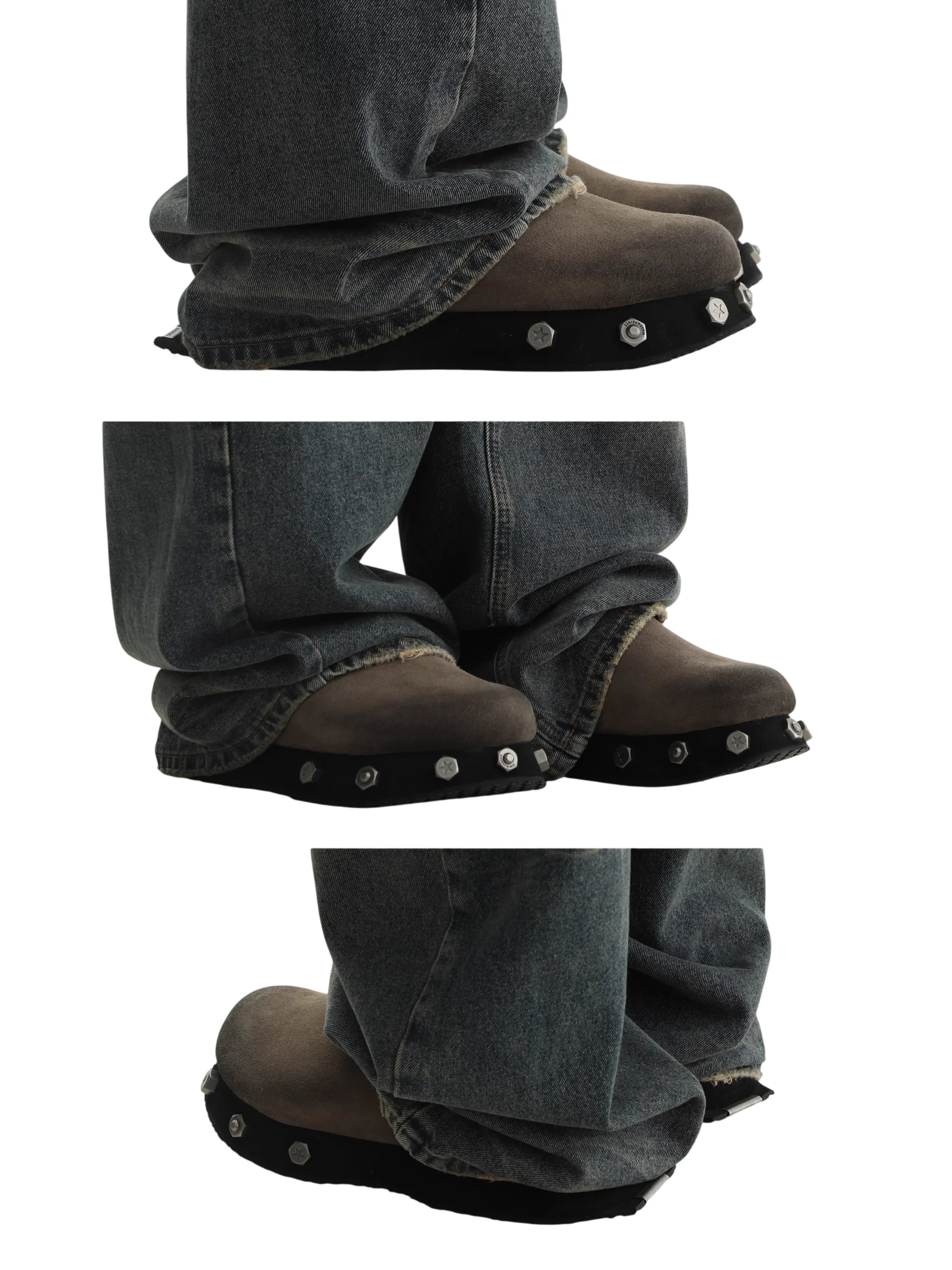 Step into comfort and style with these men's suede chunky platform clog slippers. Designed for year-round wear, these versatile clogs feature a rugged, thick sole that provides exceptional support and a touch of modern edge. The suede upper brings a refined look, while the slip-on design with an adjustable strap ensures a secure and personalized fit. Accented with metallic rivets along the sole's edge, these clogs are ideal for casual outdoor settings and offer both durability and everyday appeal. Perfect for any season, elevate your footwear collection with these stylish and practical clog slippers.