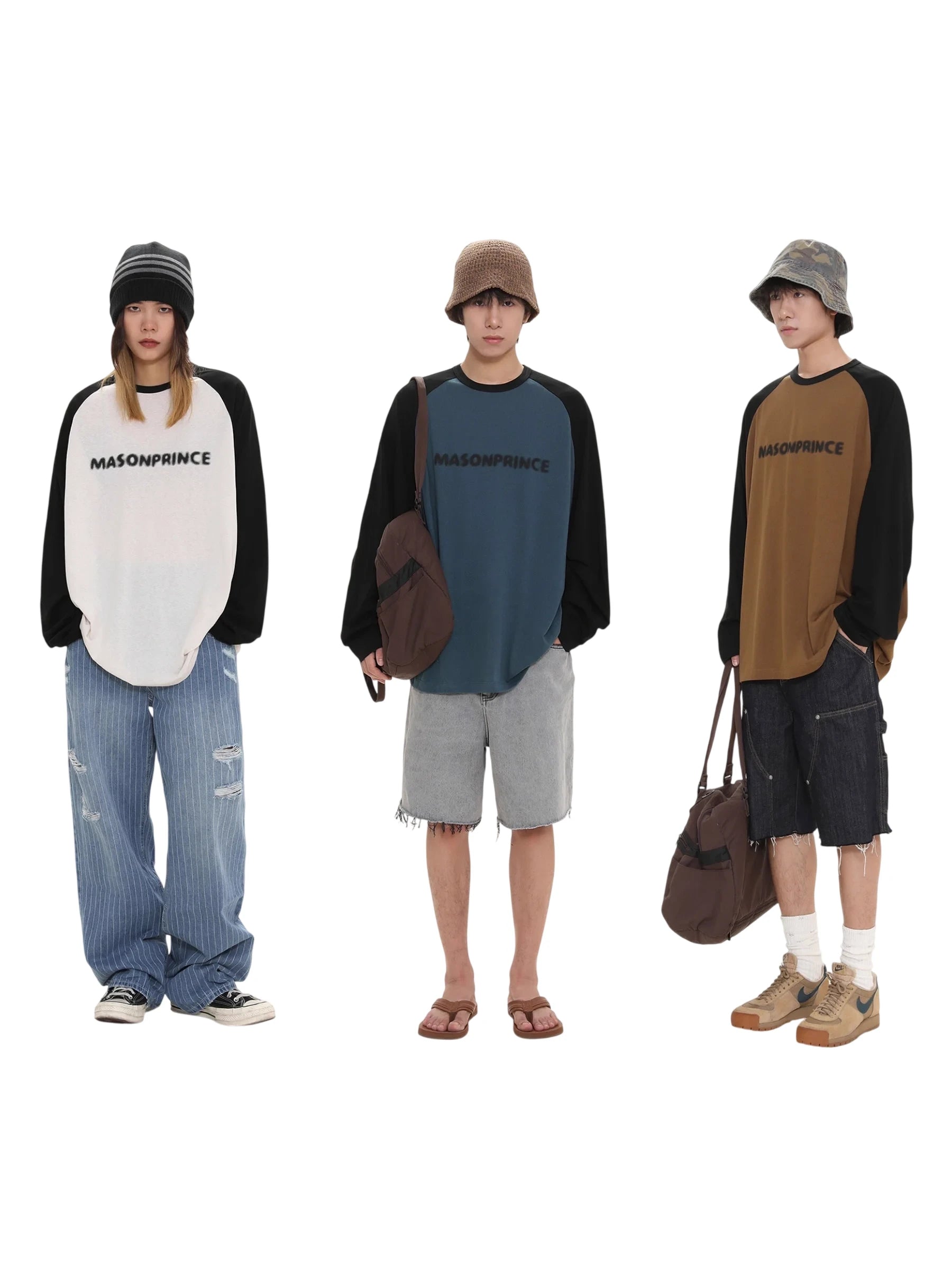 MASONPRINCE Men's Two-Tone Long Sleeve Raglan T-Shirt - Casual Oversized Fit